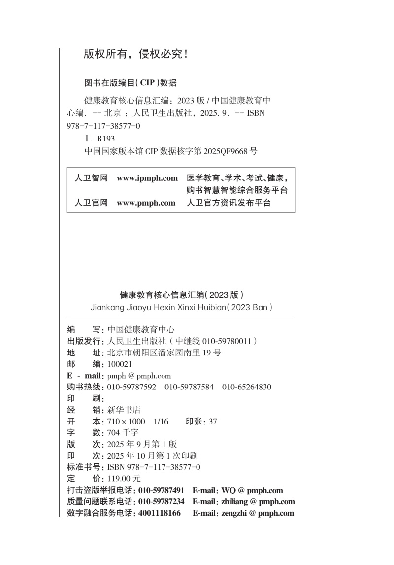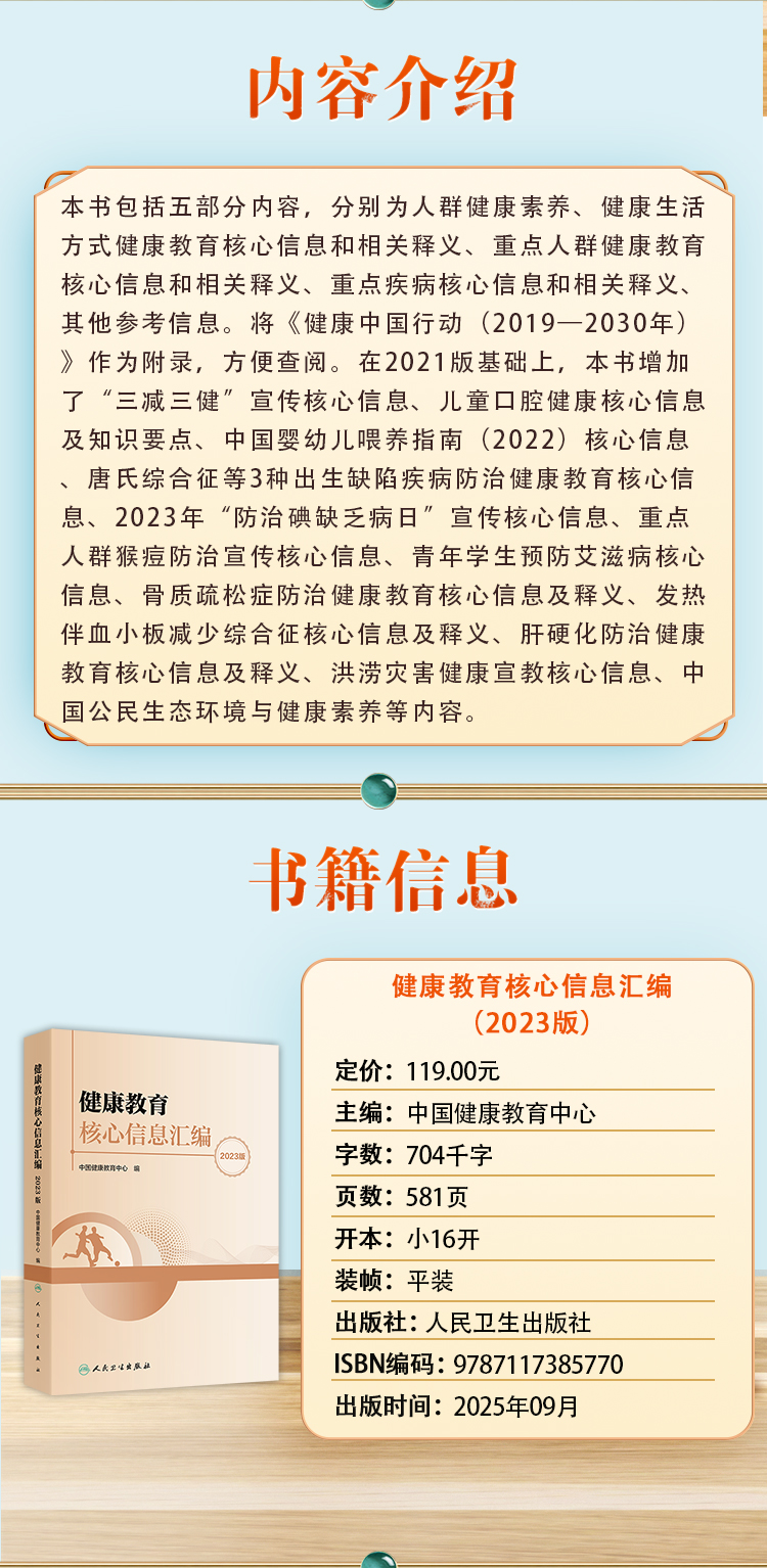 健康教育核心信息汇编(2023版)中国健康教育中心 编写 本书增加了“三减三健”宣传核心信息等 9787117385770 人民卫生出版社