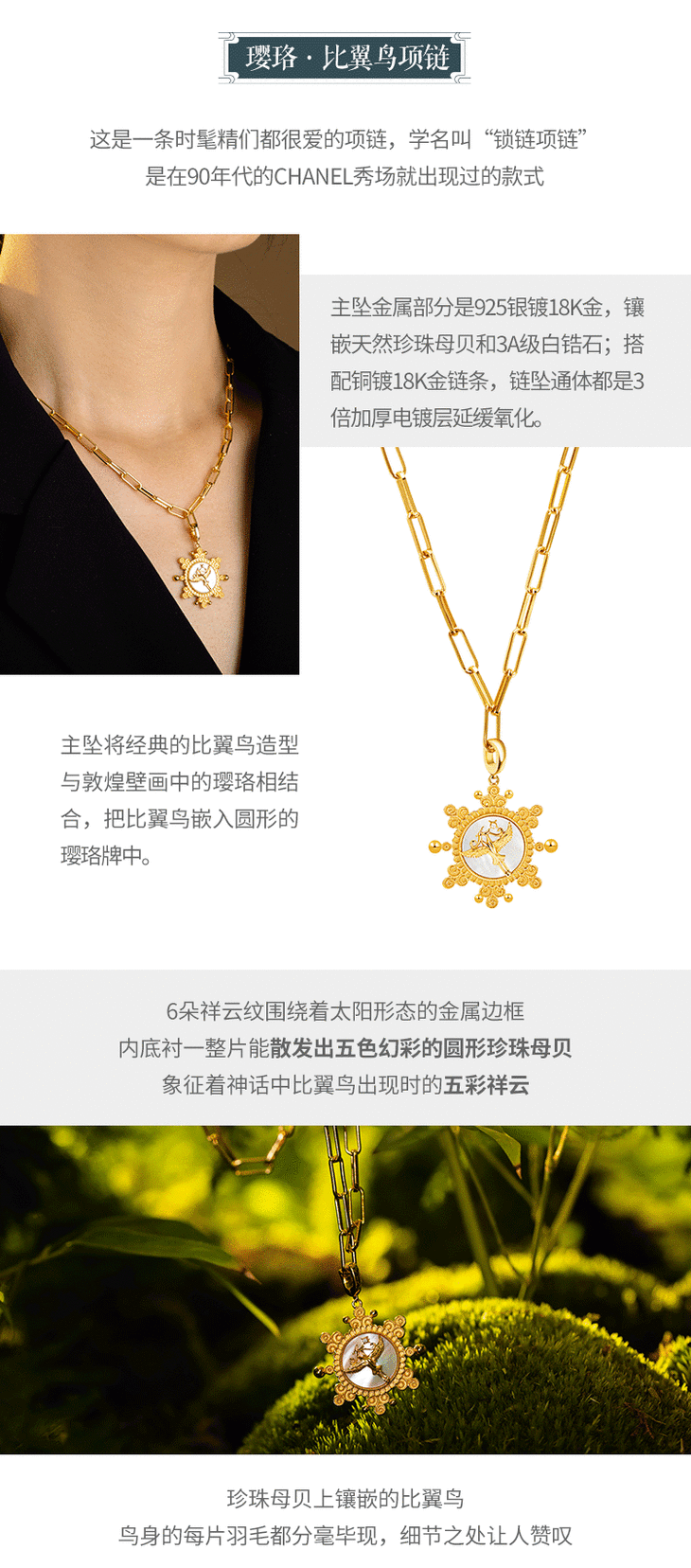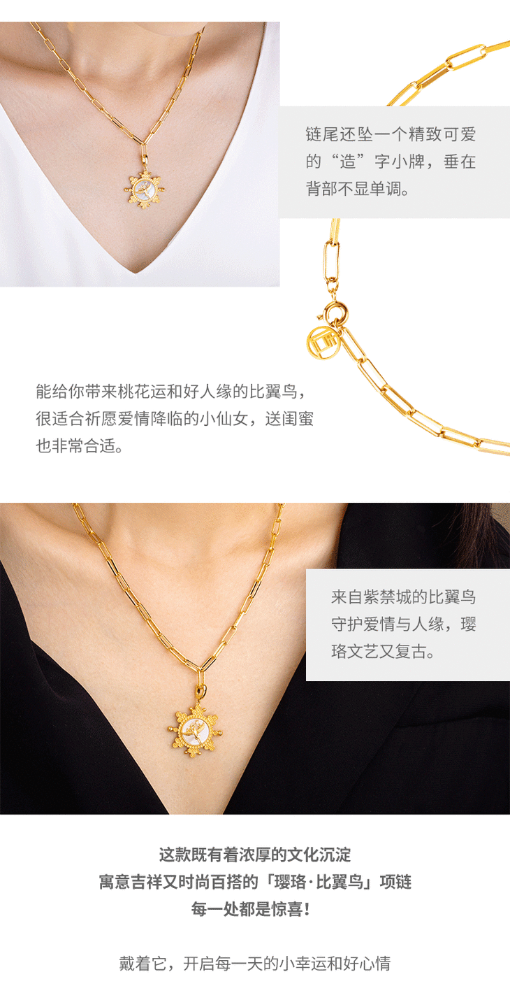品名:璎珞·比翼鸟 项链(925银/铜镀18K金镶珍珠母贝)