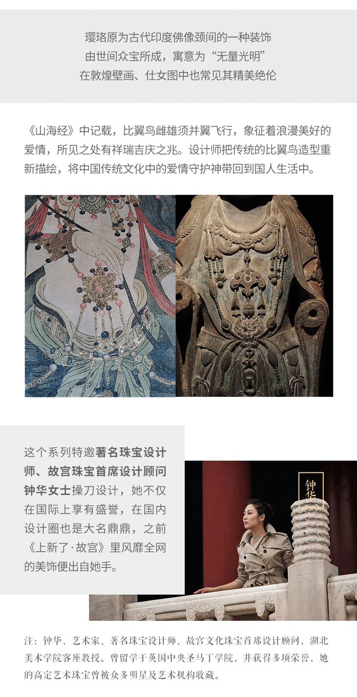 - 我们蕴传统文化为肌底,以匠人的虔诚心态,怀着对历史的敬畏,用时尚设计让古老器物摩登起来。回归东方美学,创造文化美饰,成为最具时尚格调的文化传播者。