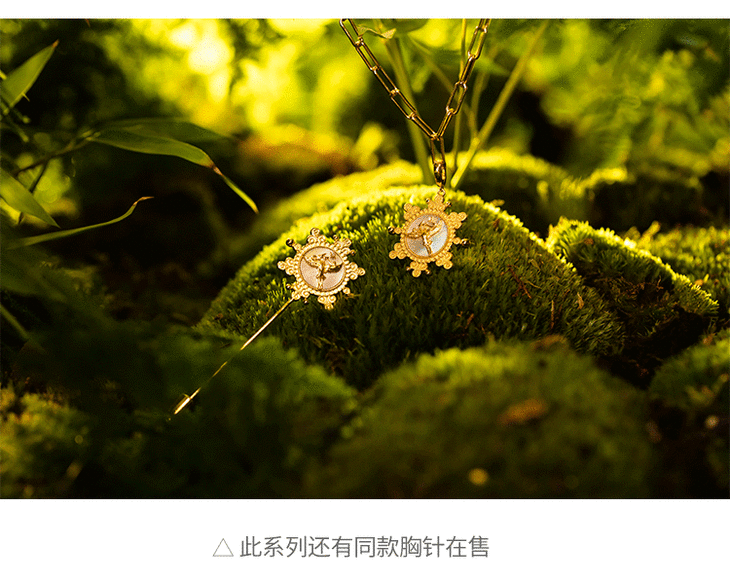 吊坠:925银镀18K金镶嵌天然珍珠母贝