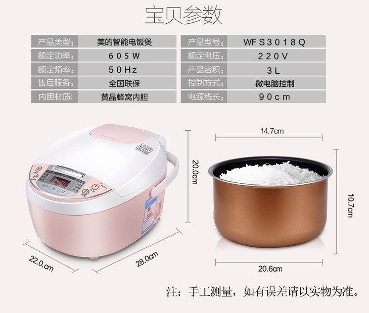 【家用电器】电饭煲*Midea/美的 MB-WFS3018Q迷你智能电饭煲家用特价3人-4人