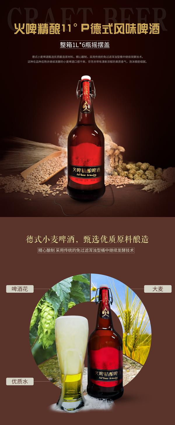 火啤精酿11°P德式风味啤酒 一箱6瓶,每瓶1升