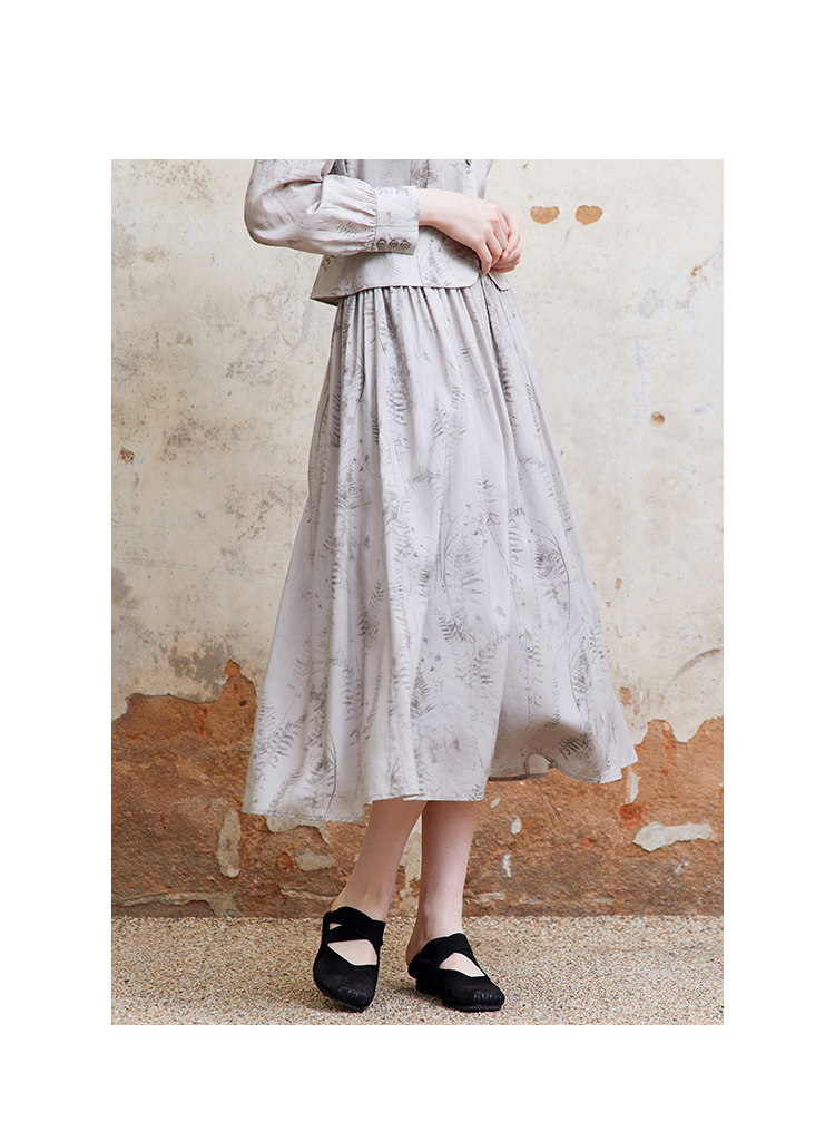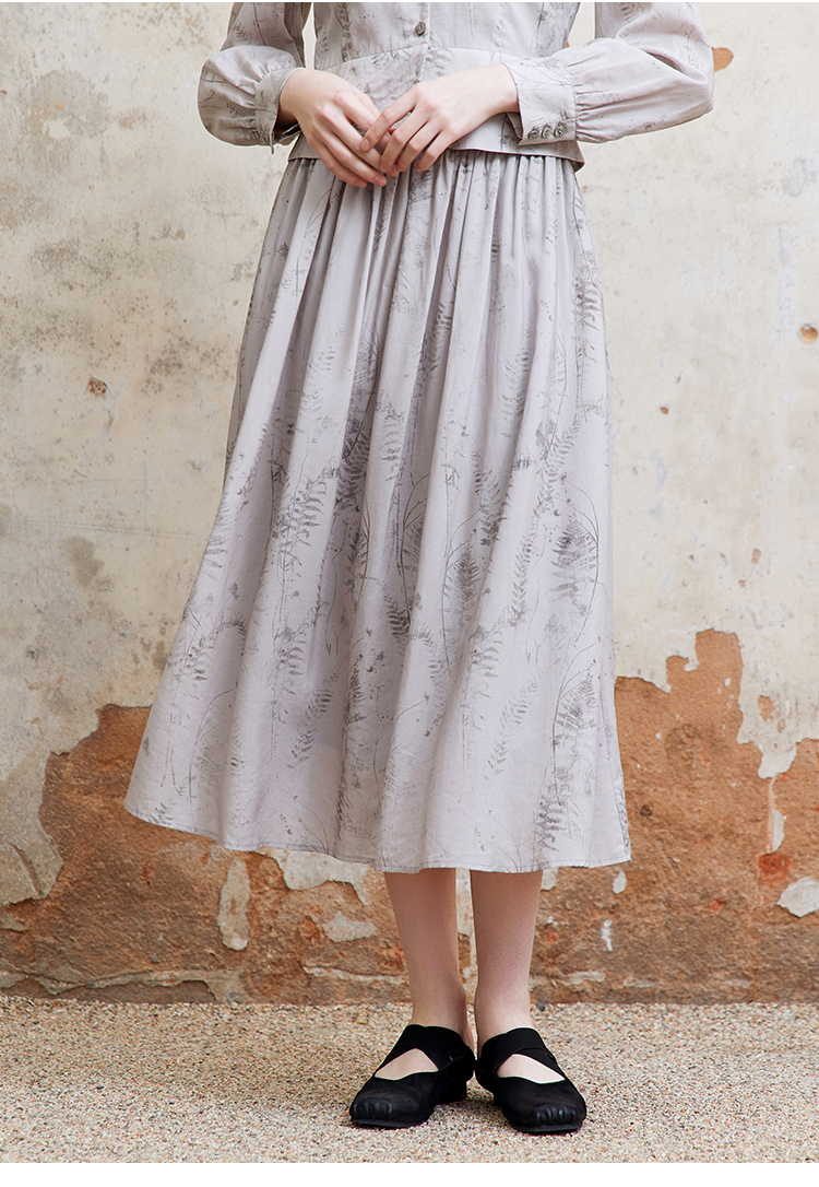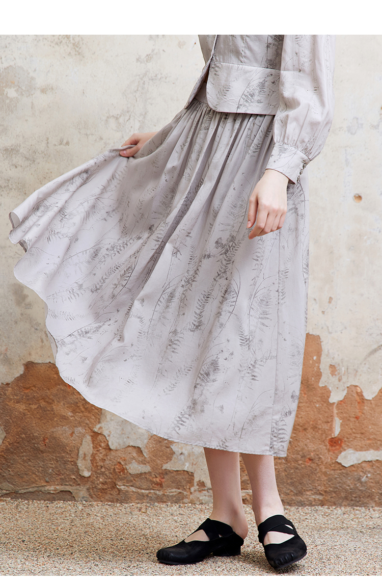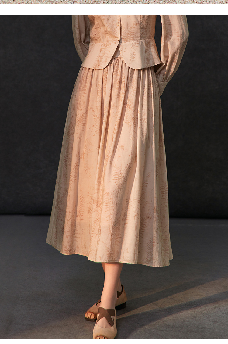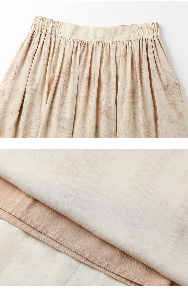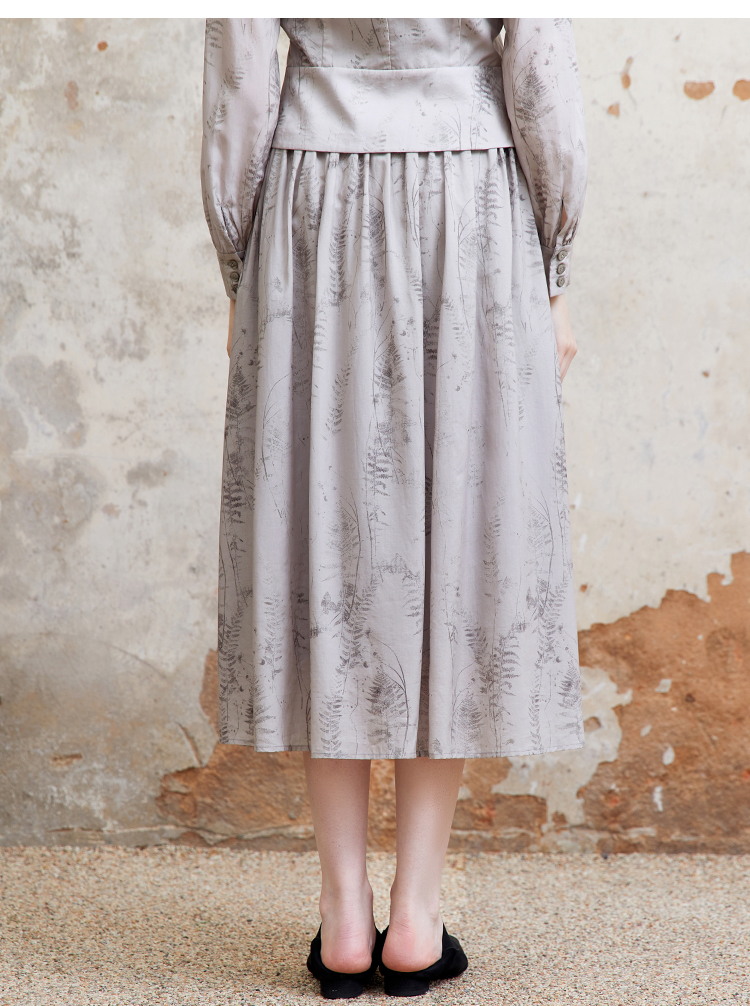 famecoco范可儿植物印花天丝半身裙女士垂感优雅半裙FAC1HA030