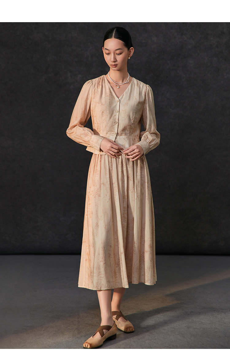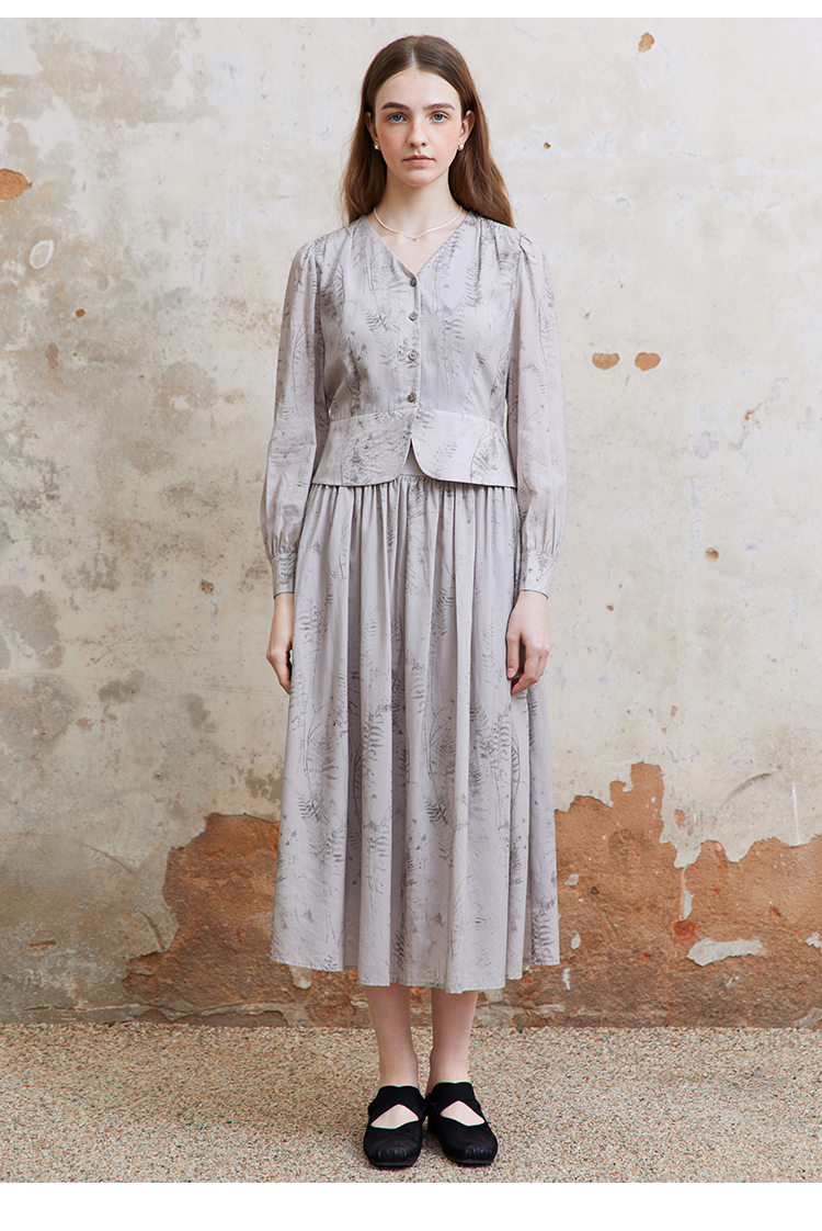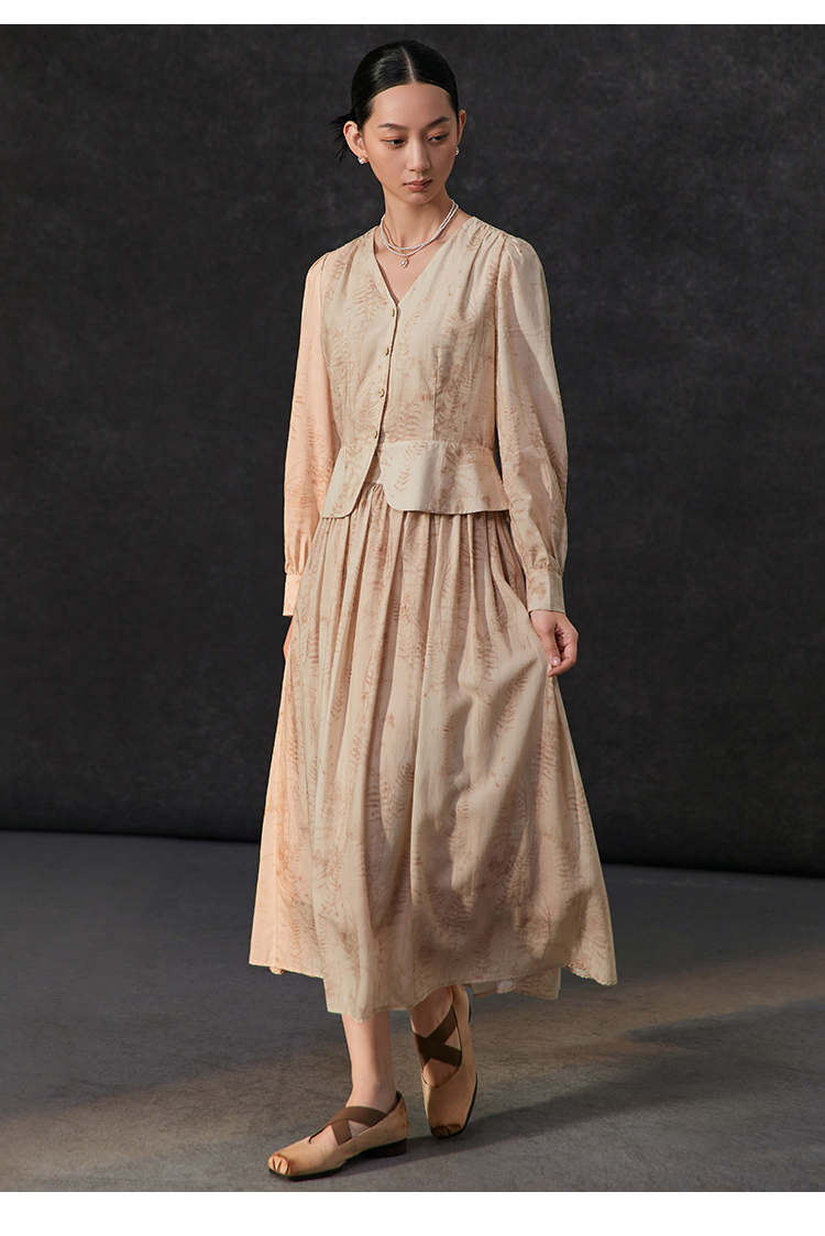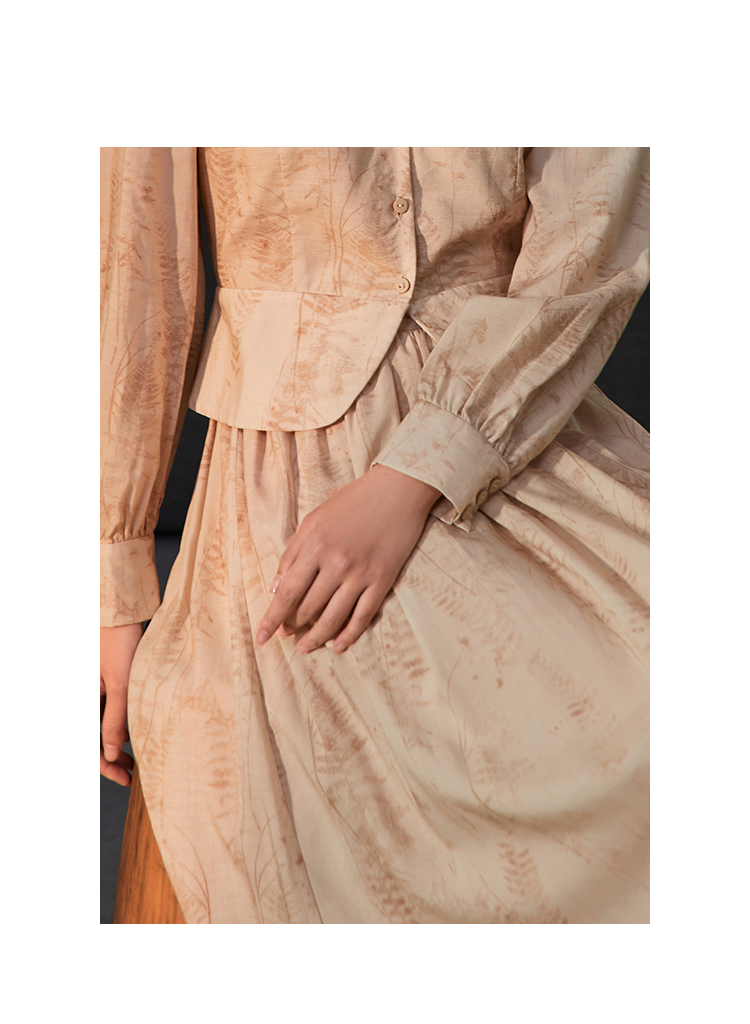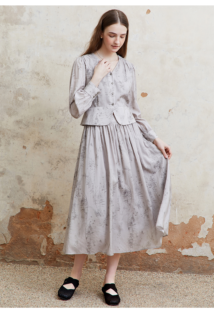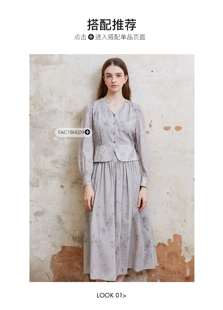famecoco范可儿植物印花天丝半身裙女士垂感优雅半裙FAC1HA030