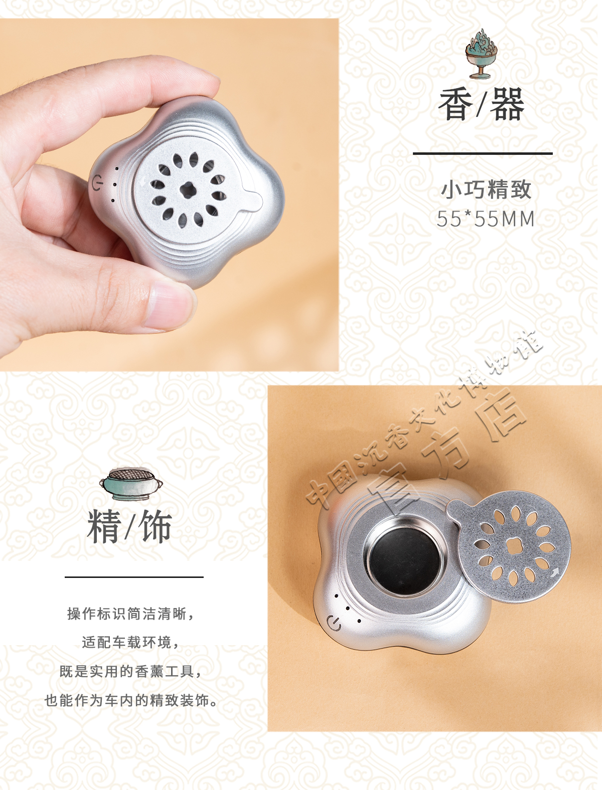 中国沉香文化博物馆 车载香薰器 可熏碎料香片等