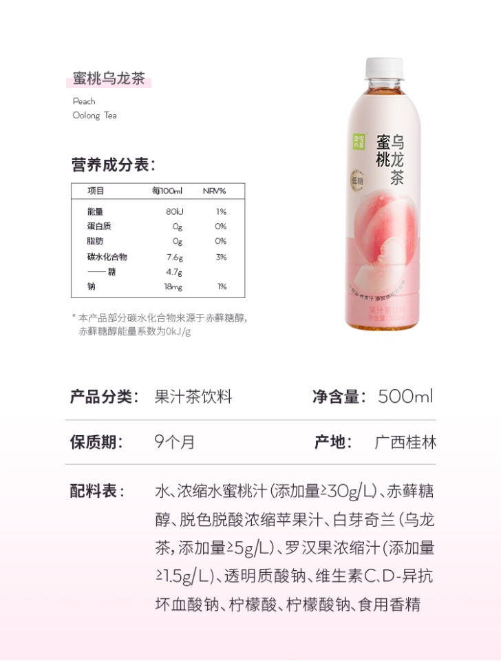 奈雪 蜜桃乌龙茶450ml/瓶