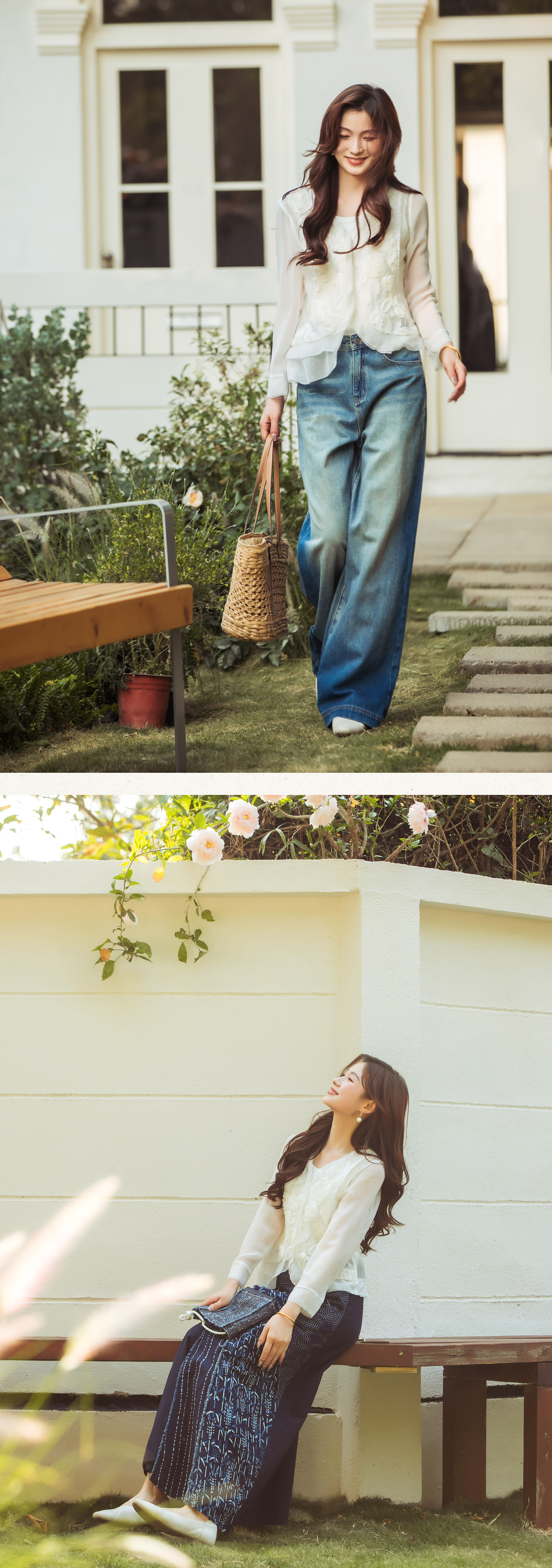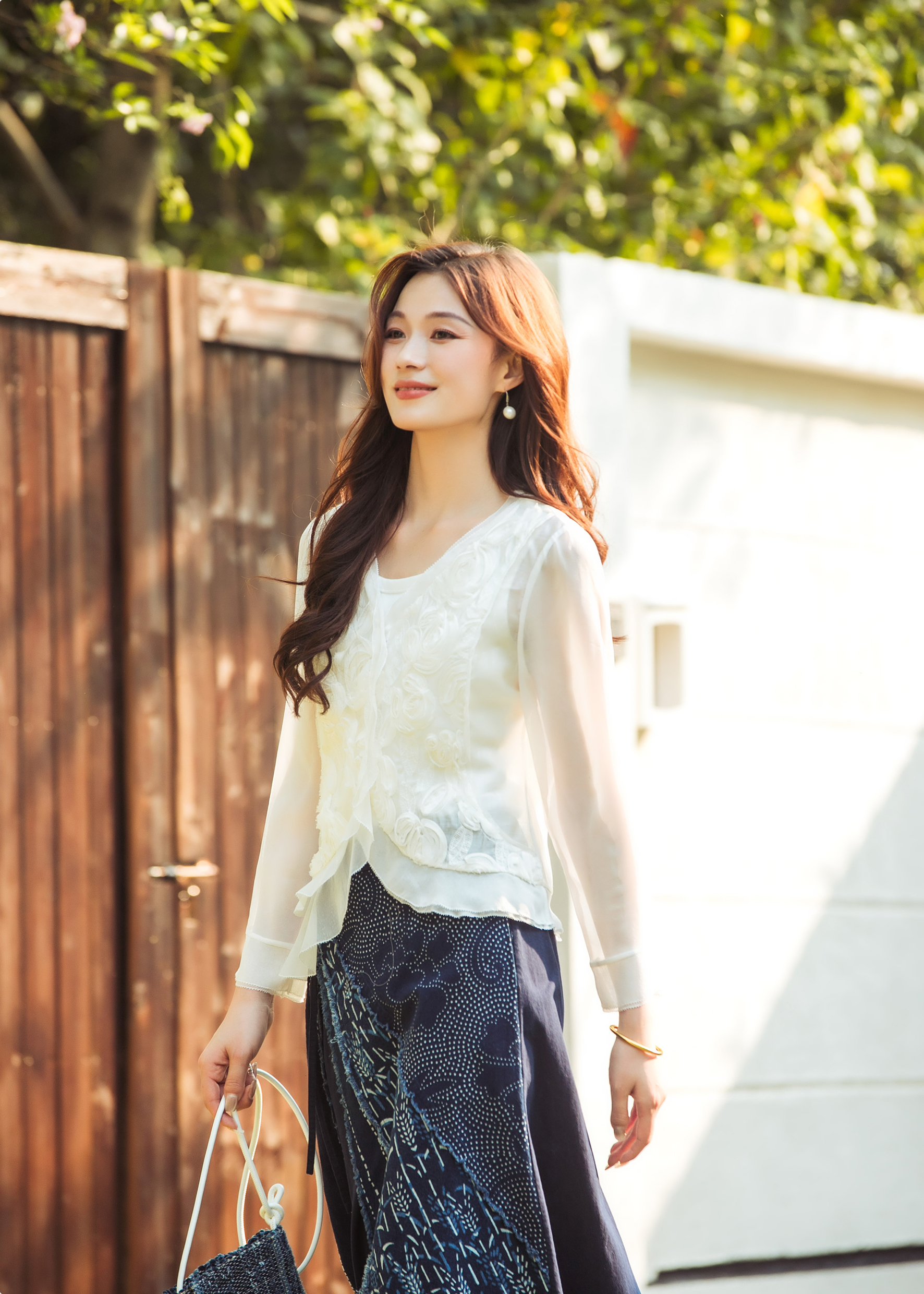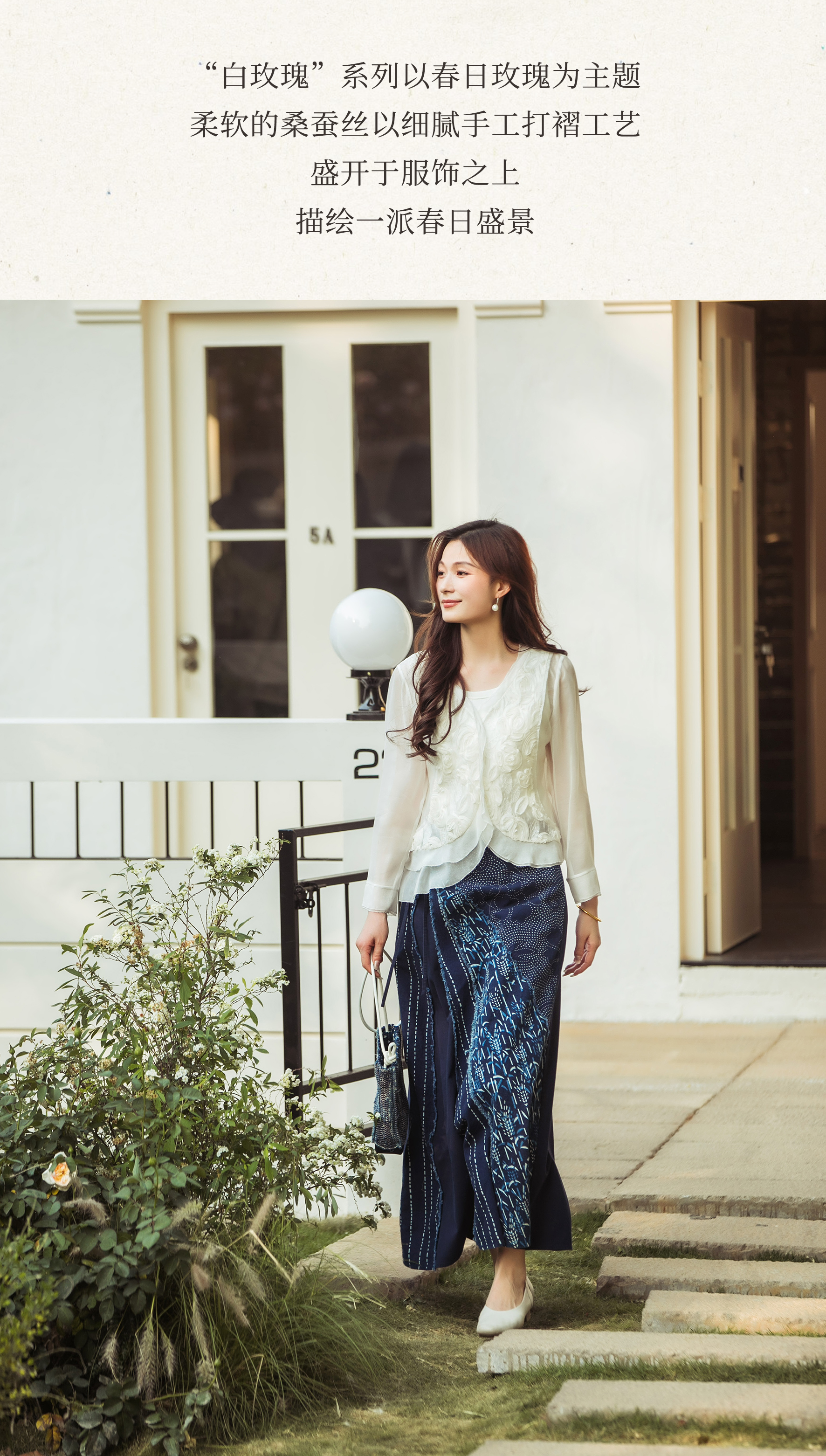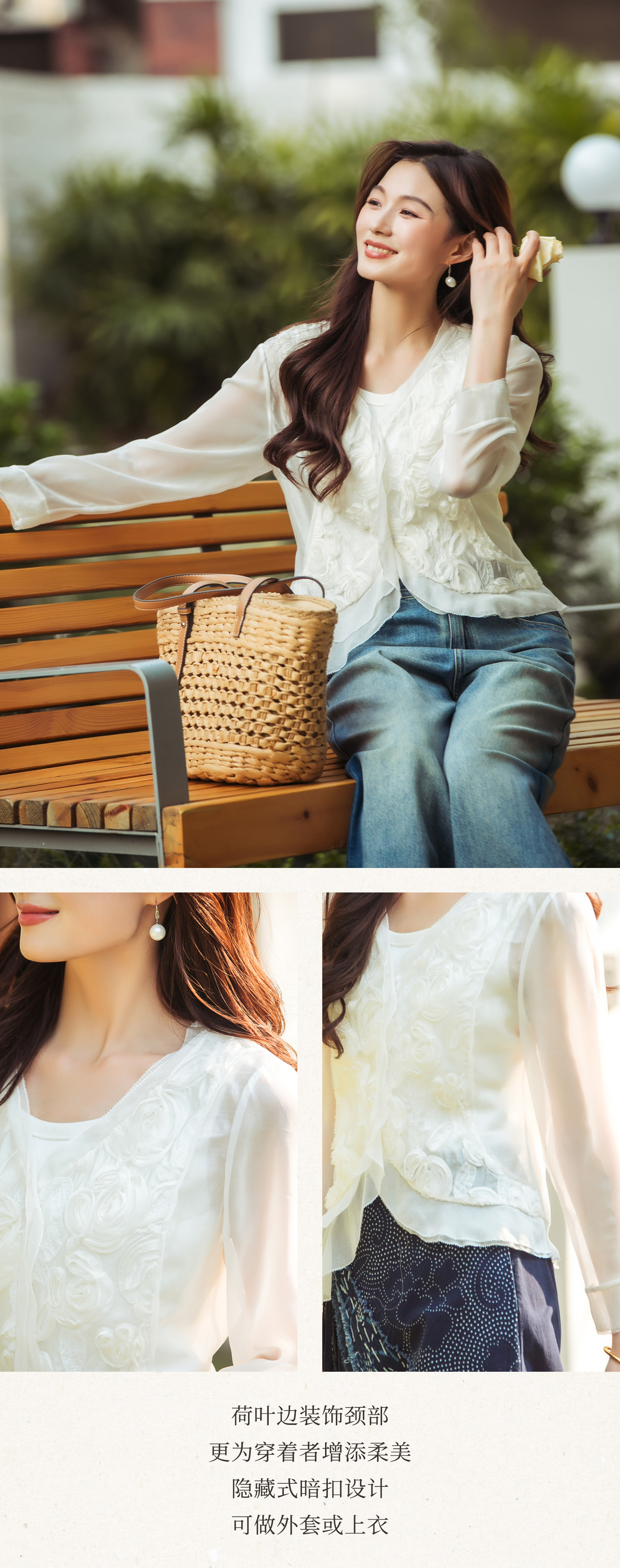 【林栖设计小店】(少量现货)【林栖推荐】2025年春夏新品白玫瑰真丝外套上衣女N1952302