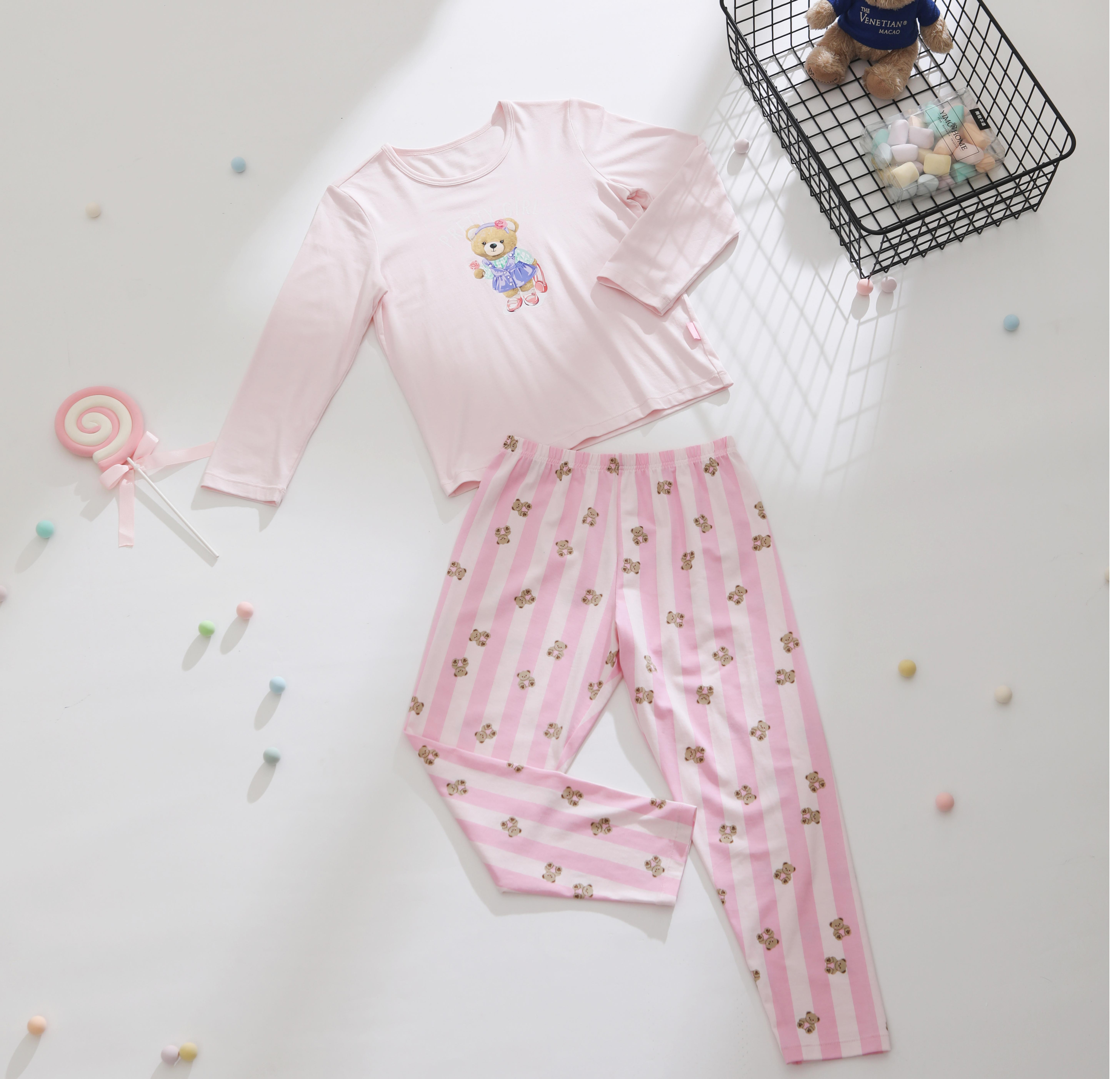 【迷你小熊棉莫套装】舒雅童装女童长袖长裤家居套装47.5%棉47.5%莫代尔5% 氨纶 180gsm 3F/25257H