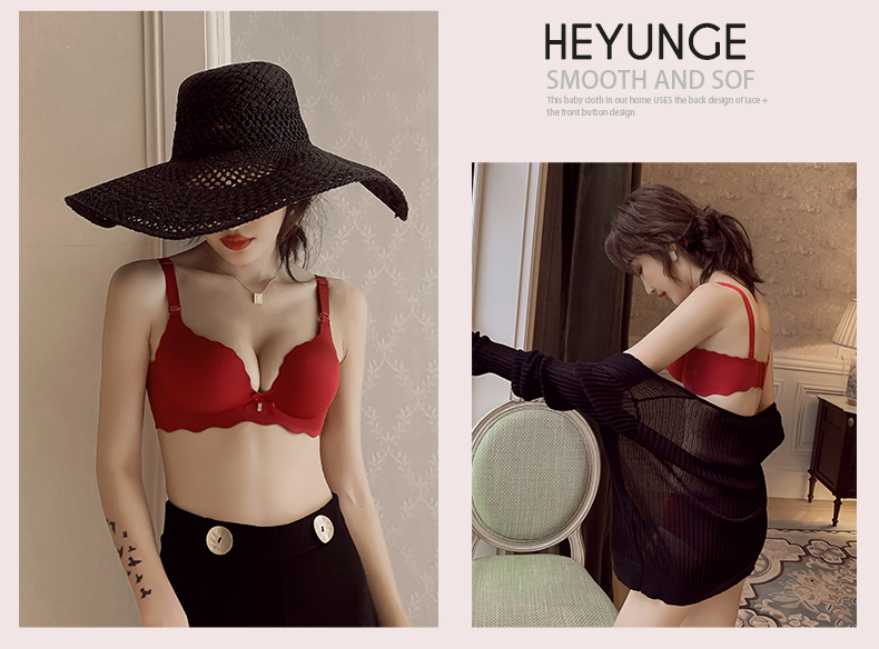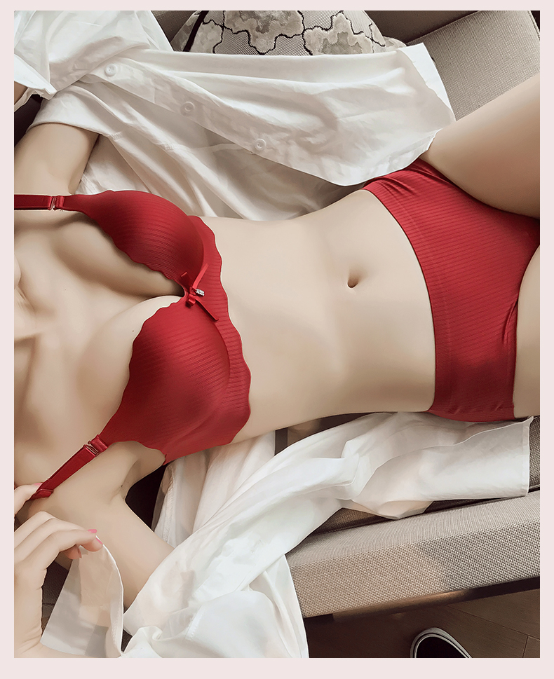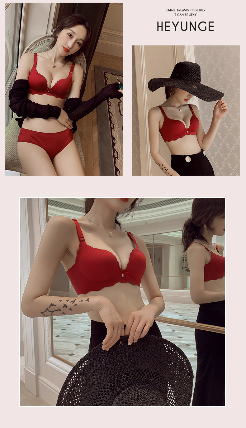 黛唯梵柔滑不空杯聚拢无痕文胸套装小胸少女加厚美背光面红色本命年内衣