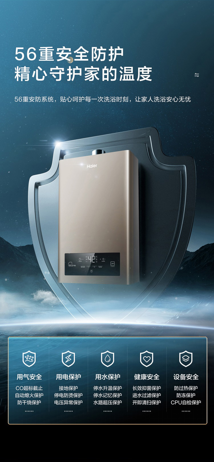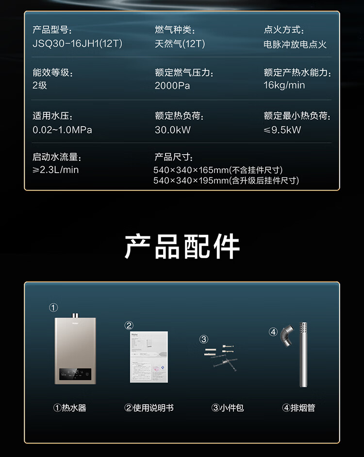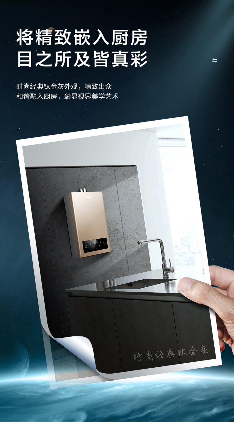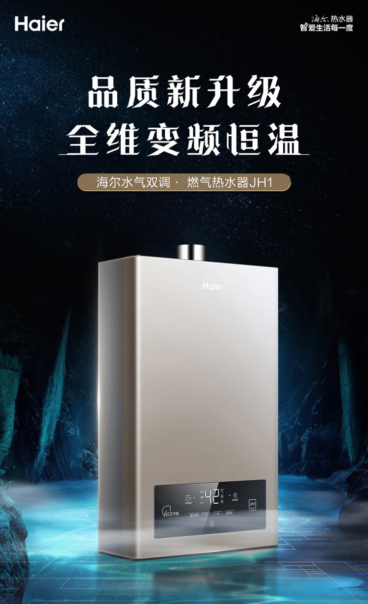 海尔(Haier)16升 水气双调 精控恒温 燃气热水器 智能厨宝洗 三重防冻 JSQ30-16JH1(12T)天然气