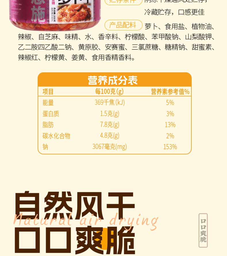 晓姚妈妈菜丨香辣萝卜干308g*2罐