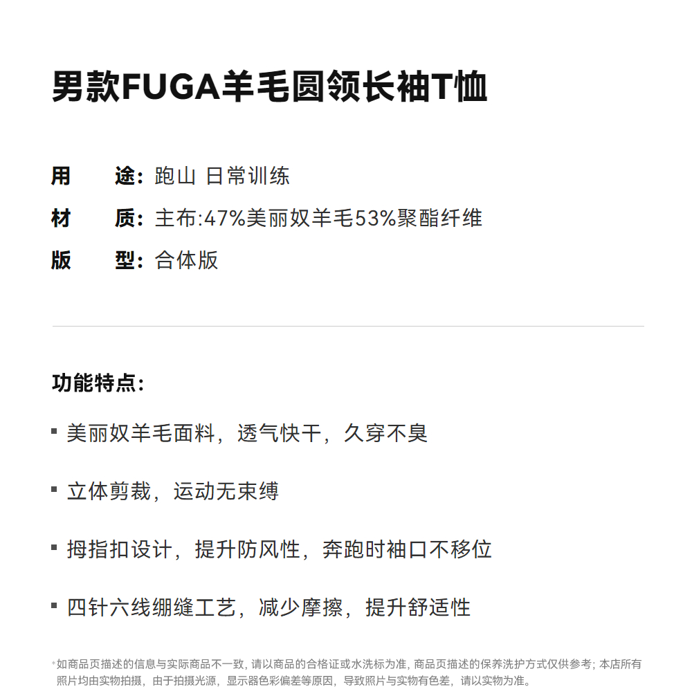 KAILAS凯乐石 户外运动 男款FUGA羊毛圆领长袖T恤 KG2437129【Z】