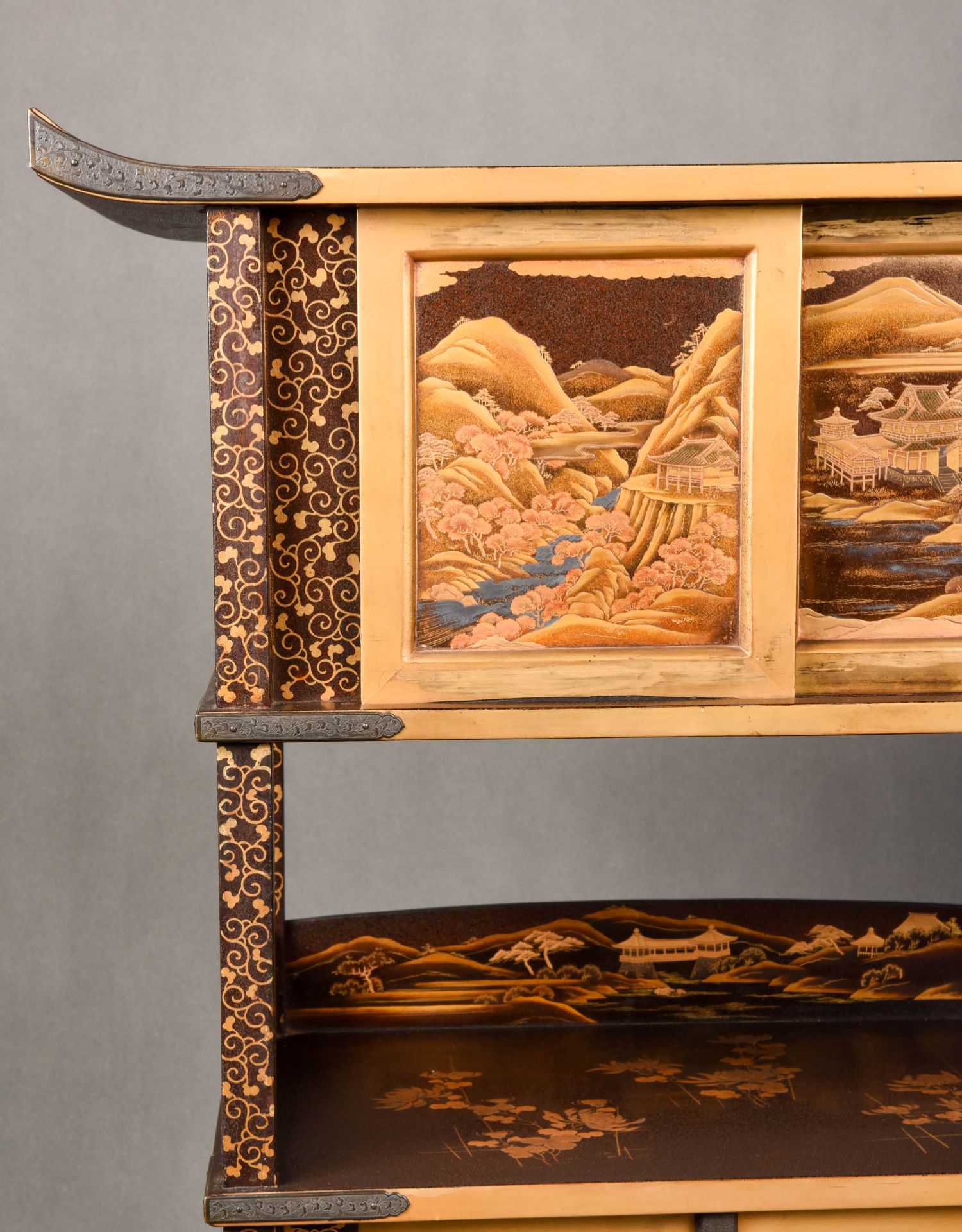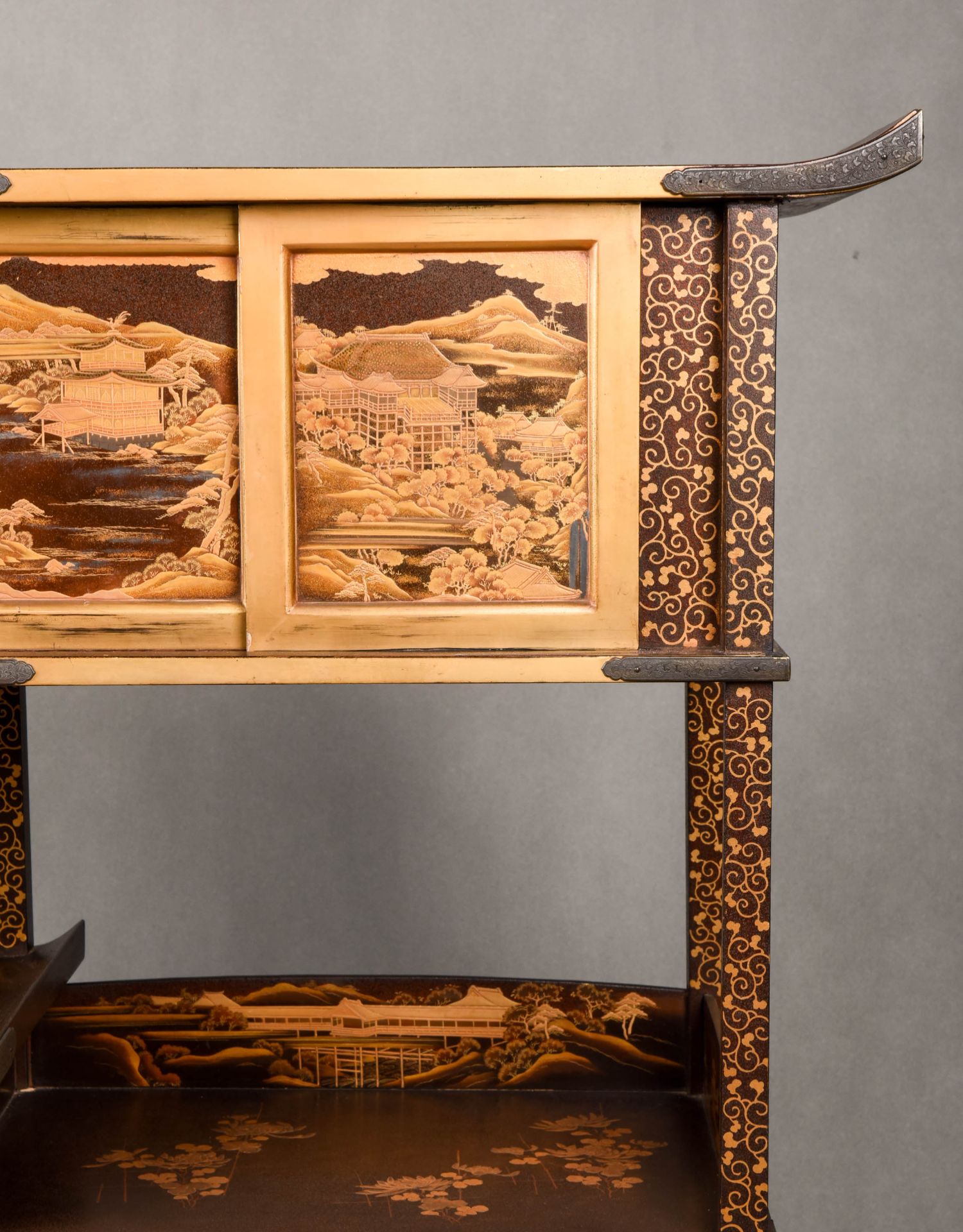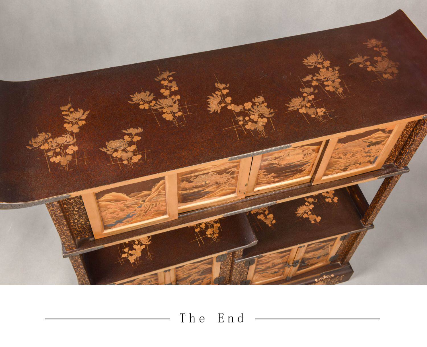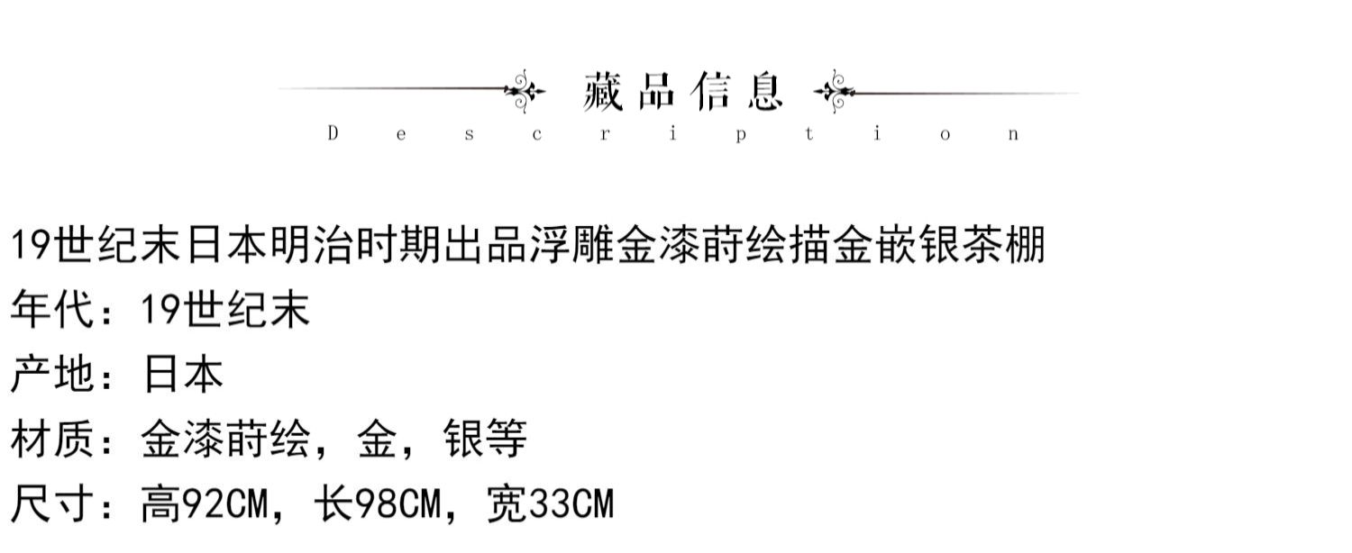 国内现货独角鹿西洋古董家具明治時期浮雕金漆莳绘描金嵌銀茶棚