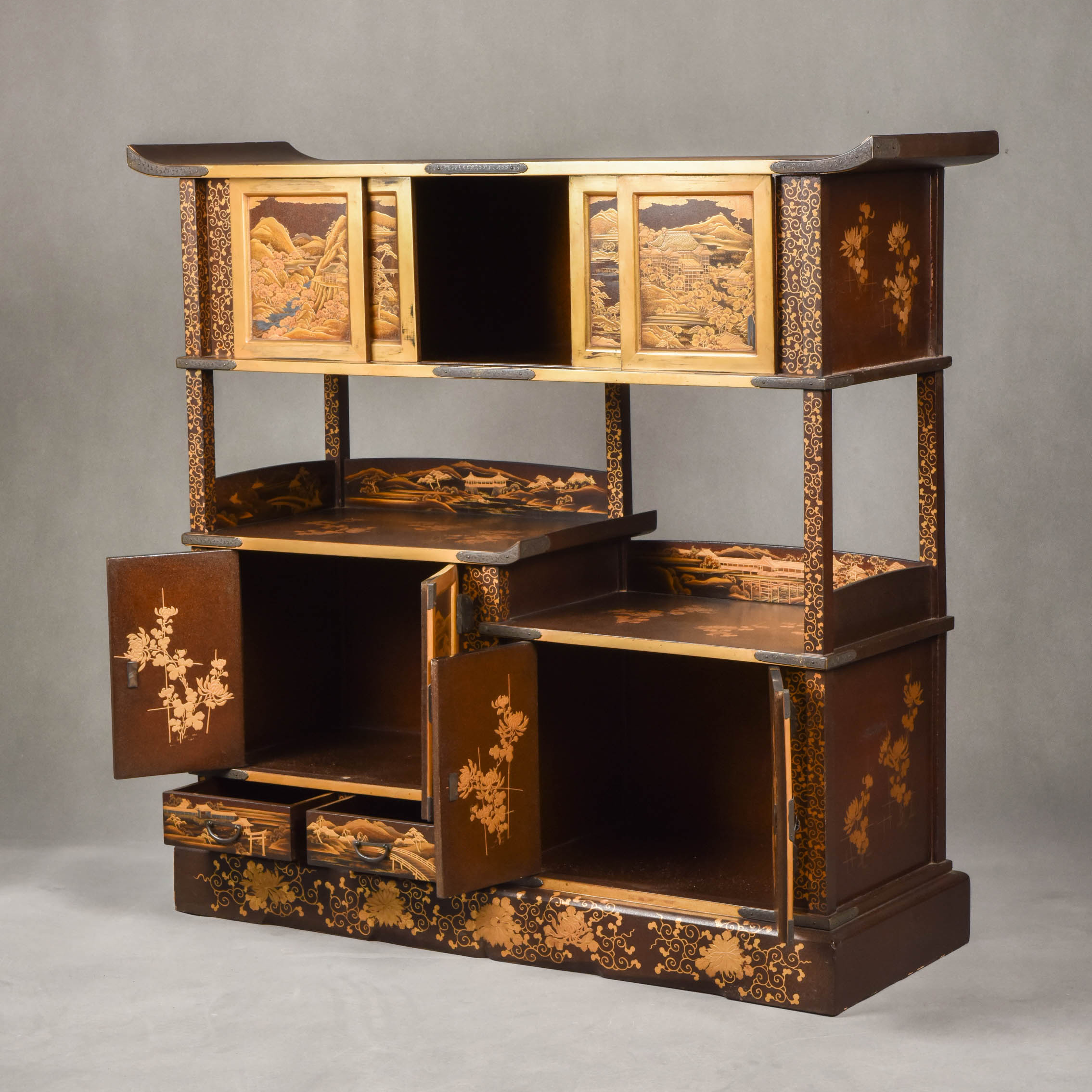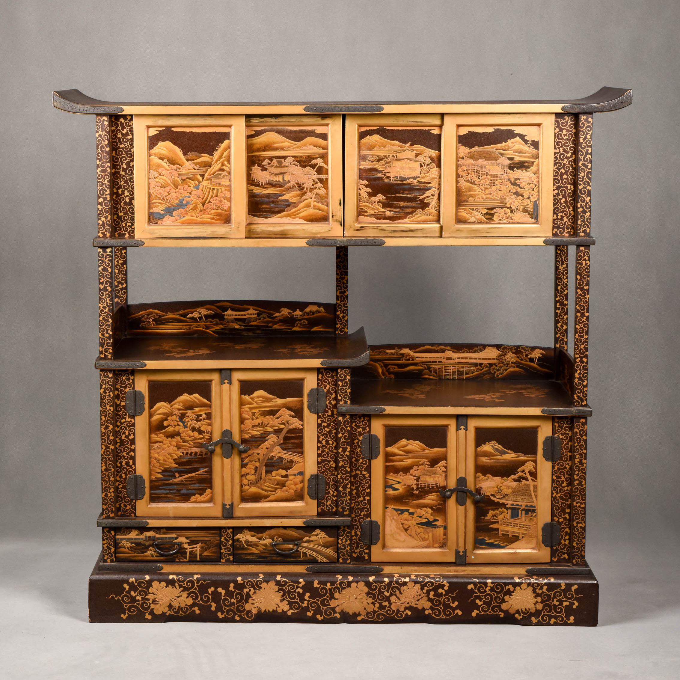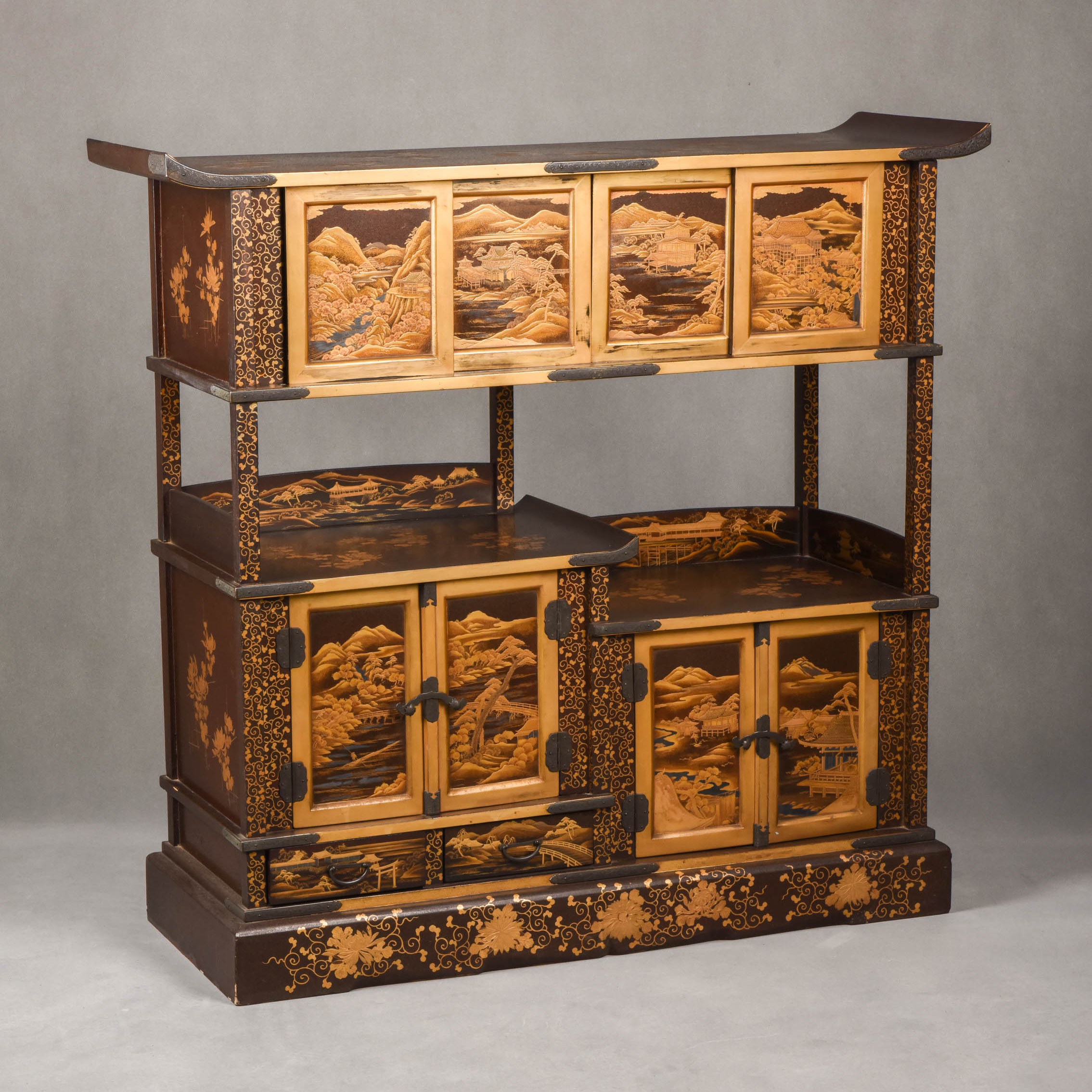 国内现货独角鹿西洋古董家具明治時期浮雕金漆莳绘描金嵌銀茶棚