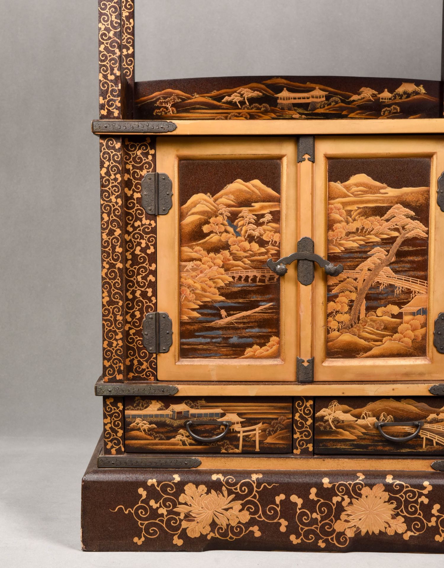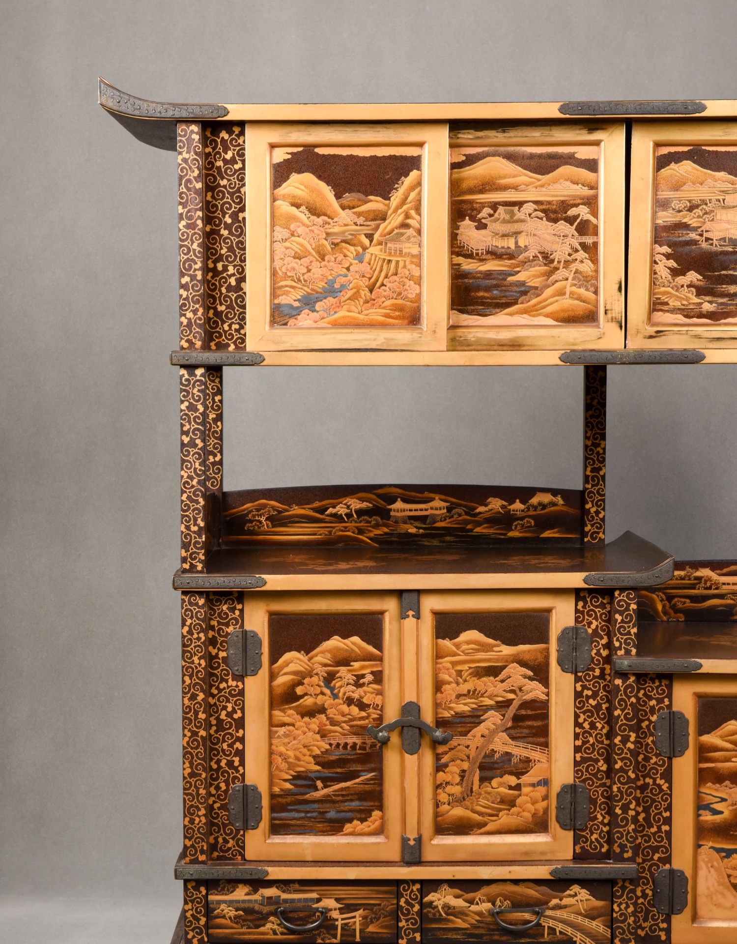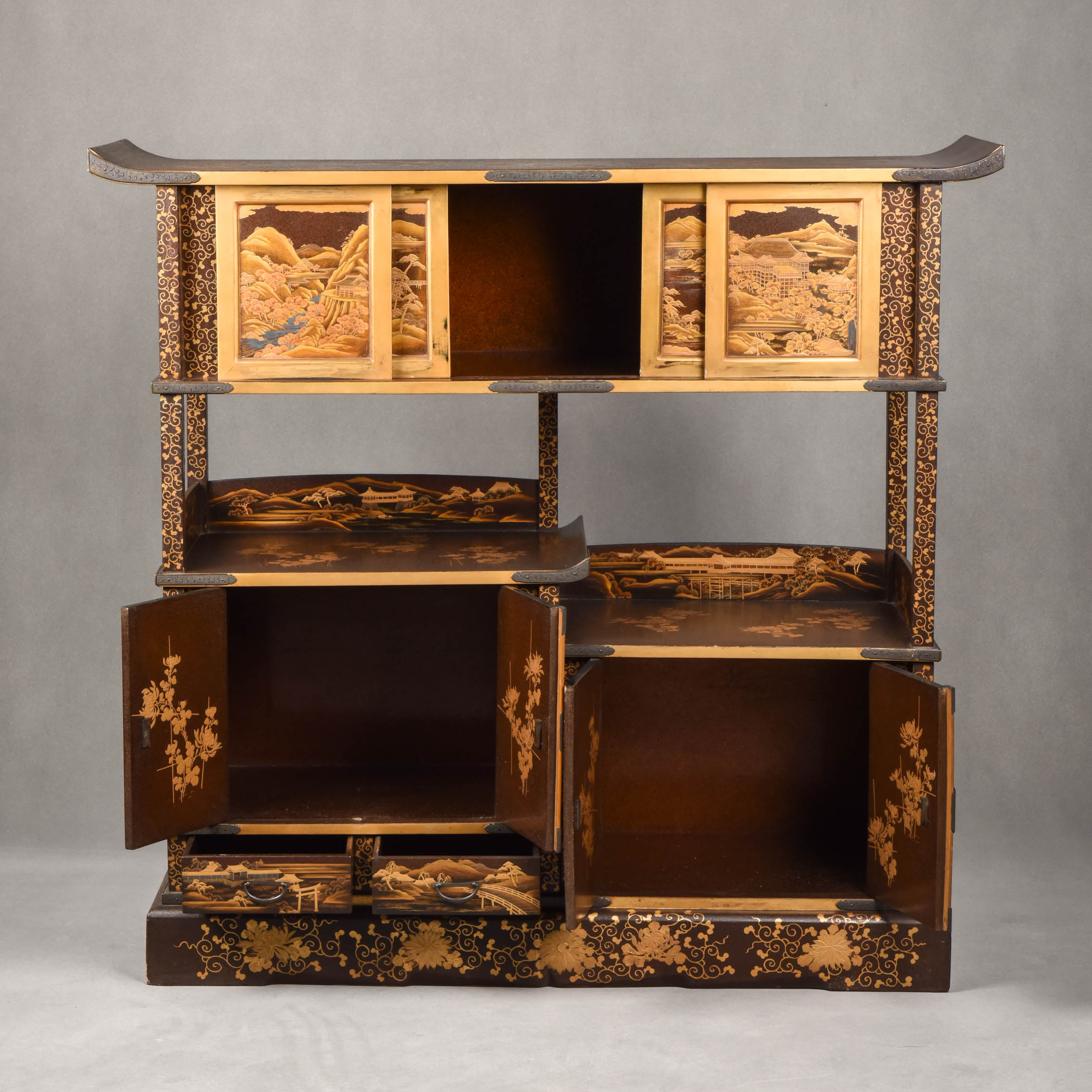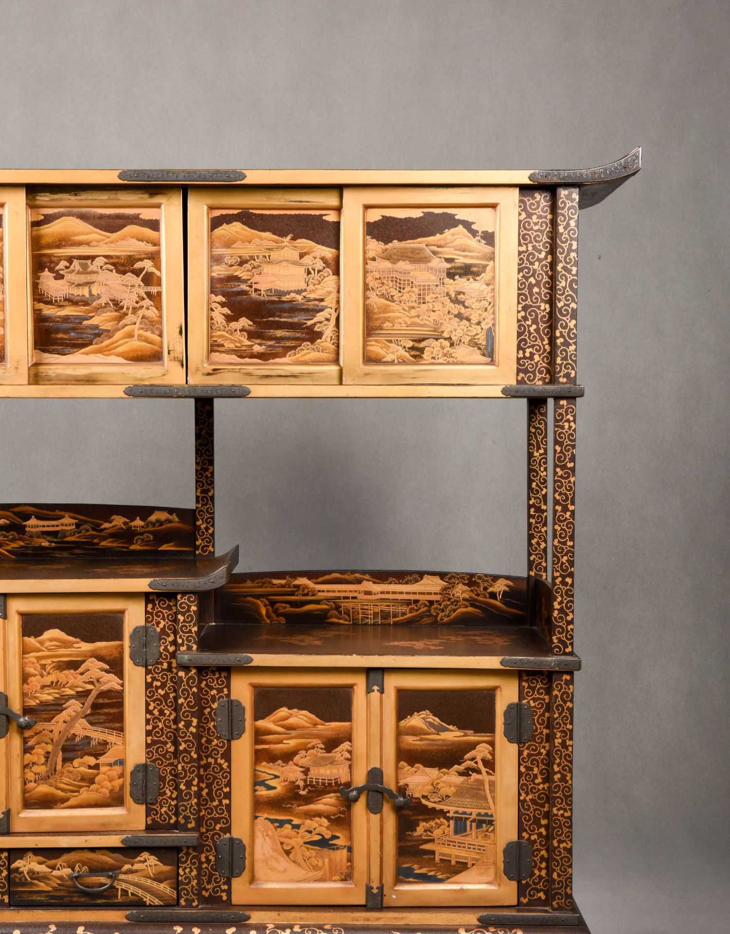 国内现货独角鹿西洋古董家具明治時期浮雕金漆莳绘描金嵌銀茶棚