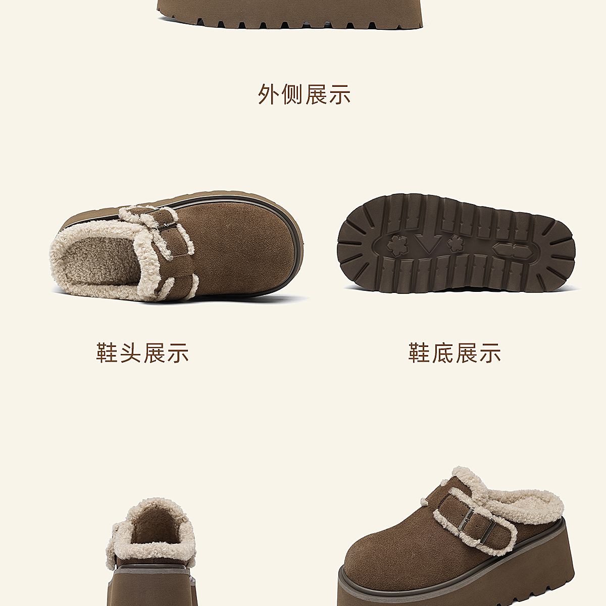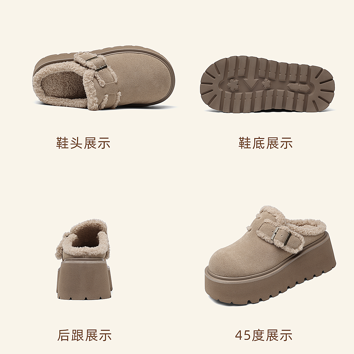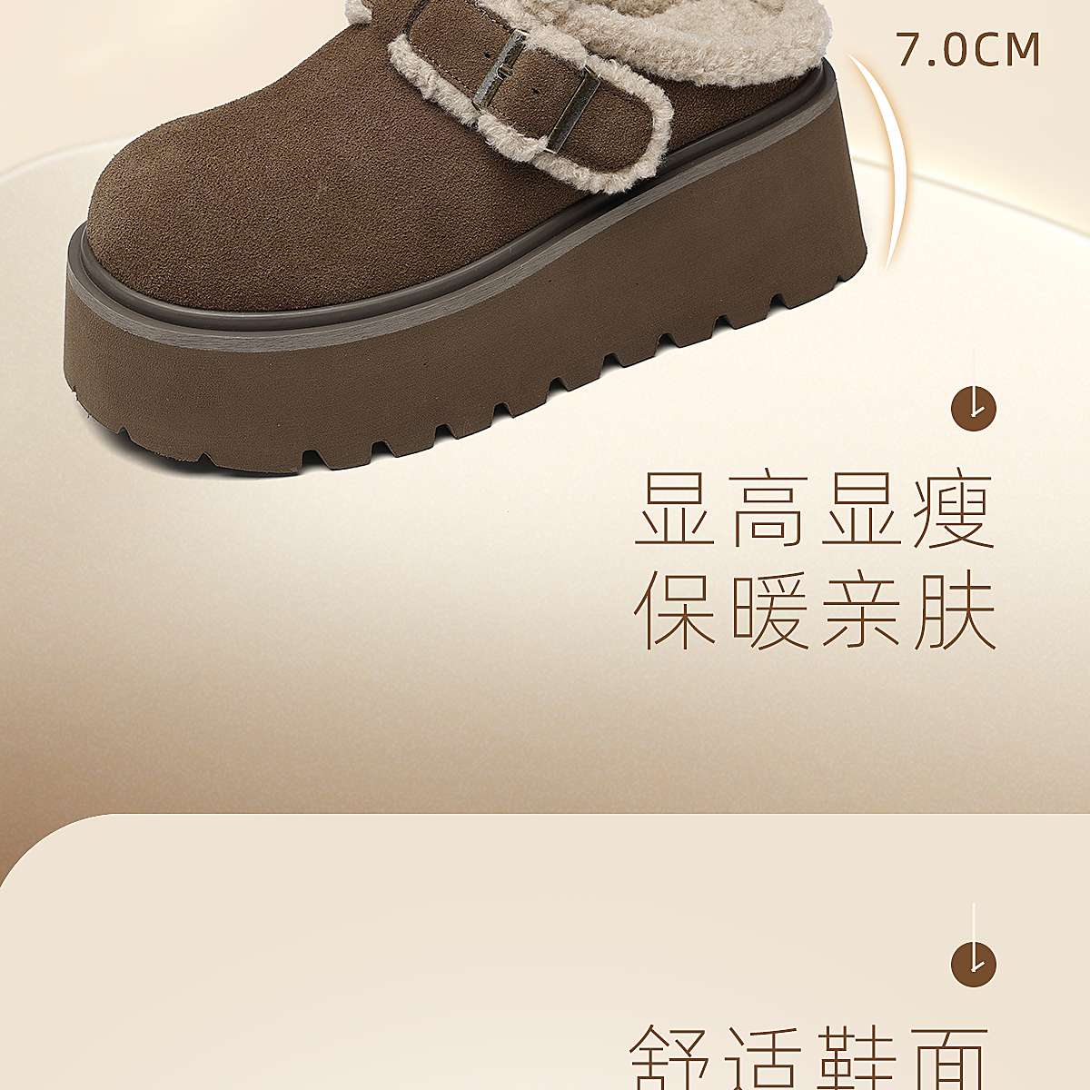 信诺复古勃肯鞋厚底增高包头毛毛外穿半拖鞋加绒女鞋2025冬季新款X5M126-185