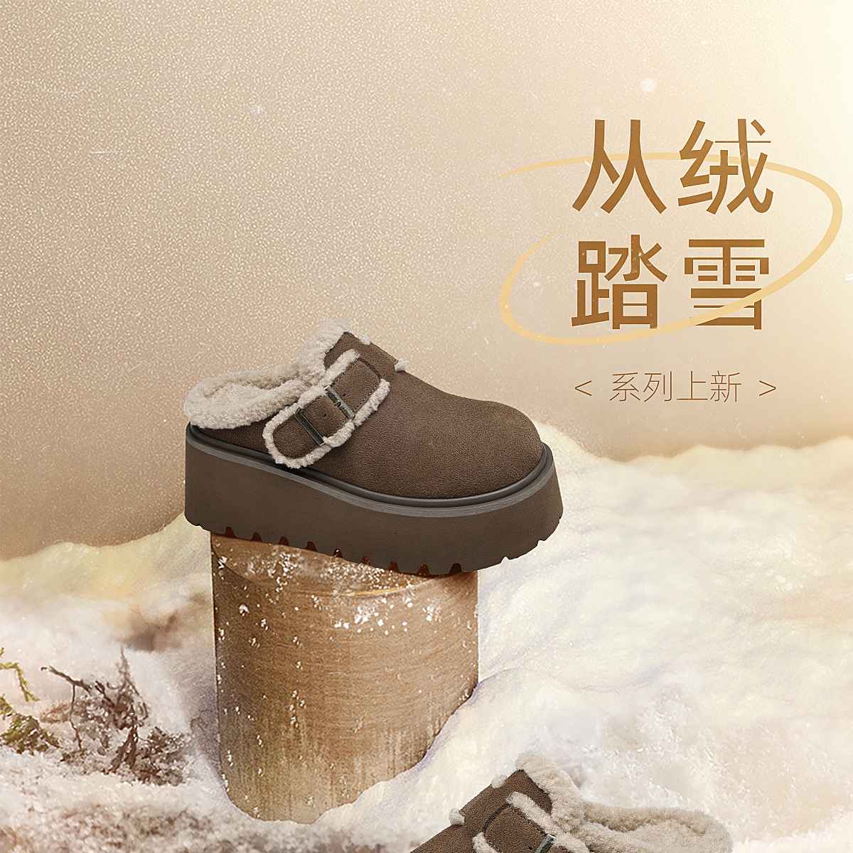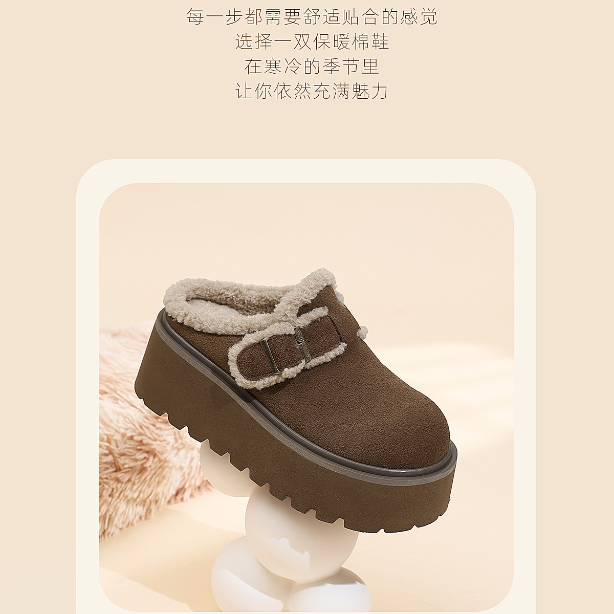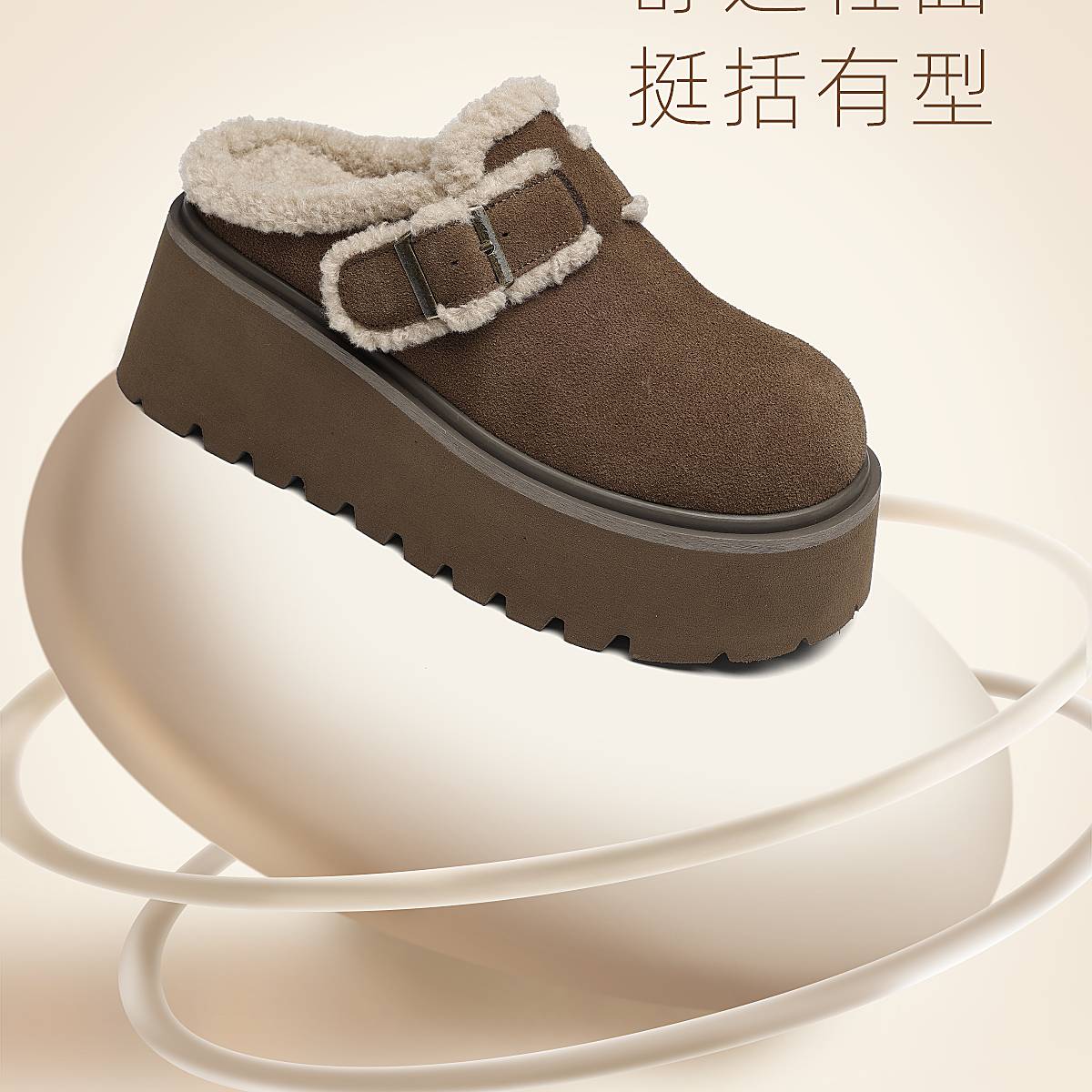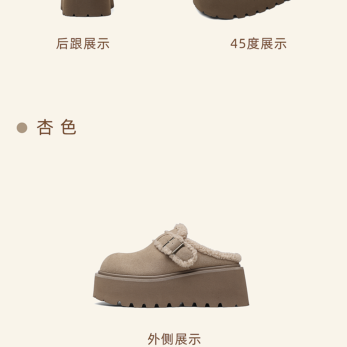 信诺复古勃肯鞋厚底增高包头毛毛外穿半拖鞋加绒女鞋2025冬季新款X5M126-185