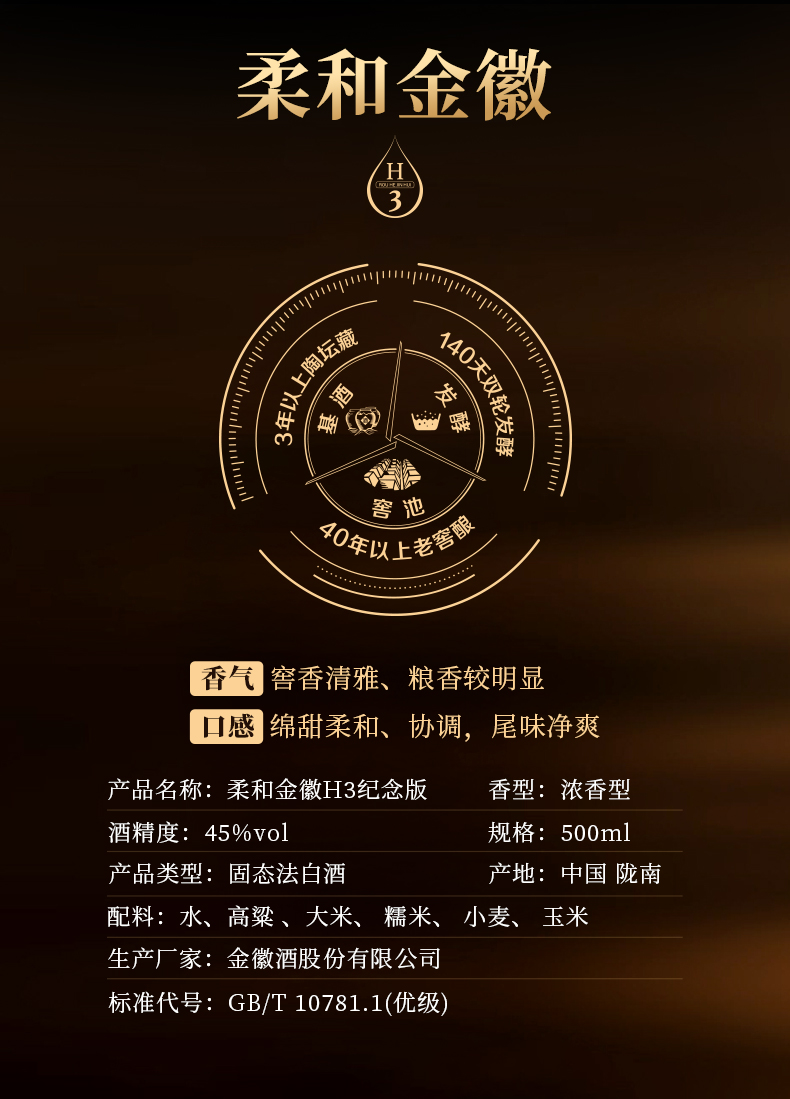 【年度新品】金徽酒 45度柔和H3纪念版 浓香型白酒