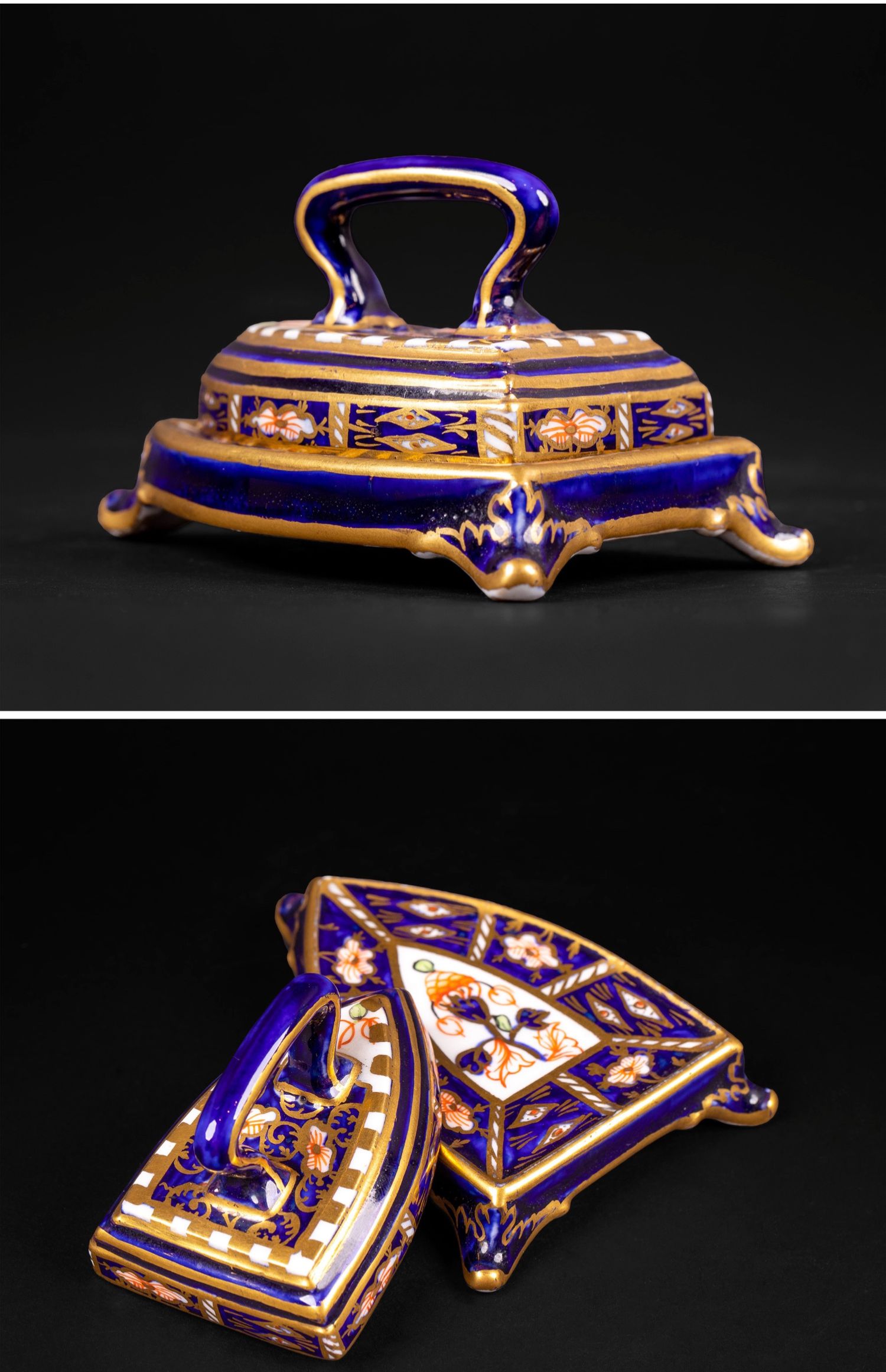独角鹿西洋古董英国瓷窑出品日本伊万里纹样彩绘描金熨斗瓷器摆件
