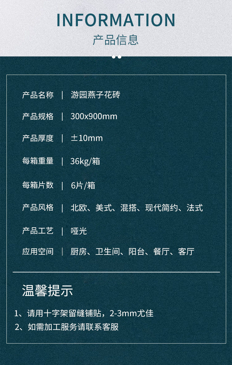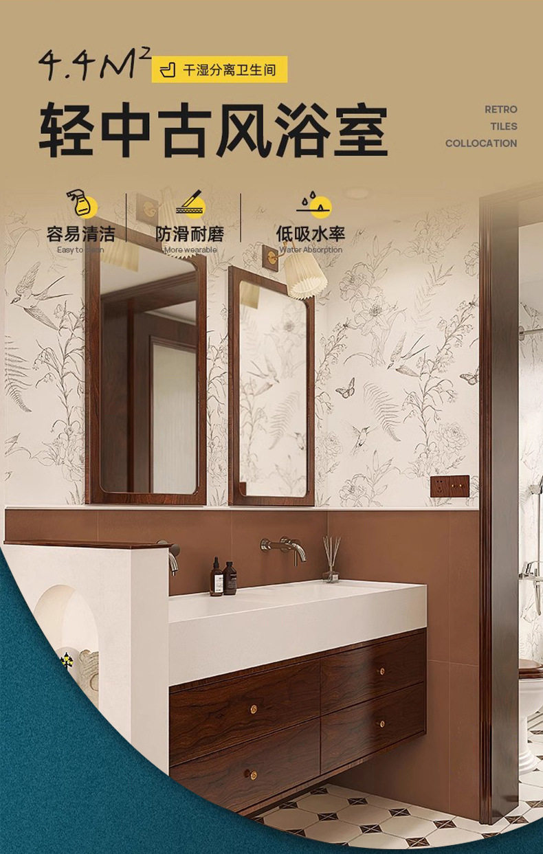 燕子游园焦法式墙砖厕所砖浴室糖色花砖古风卫生间中300x900瓷砖
