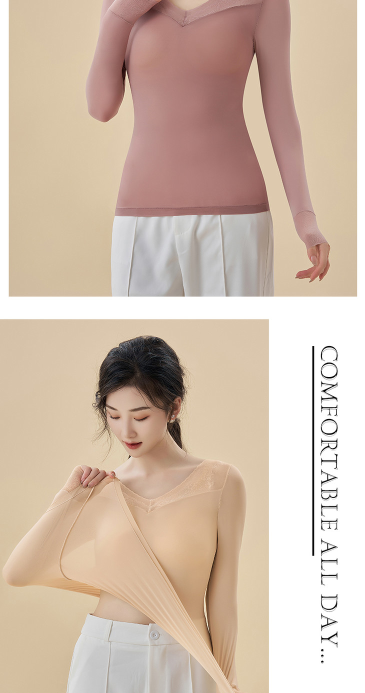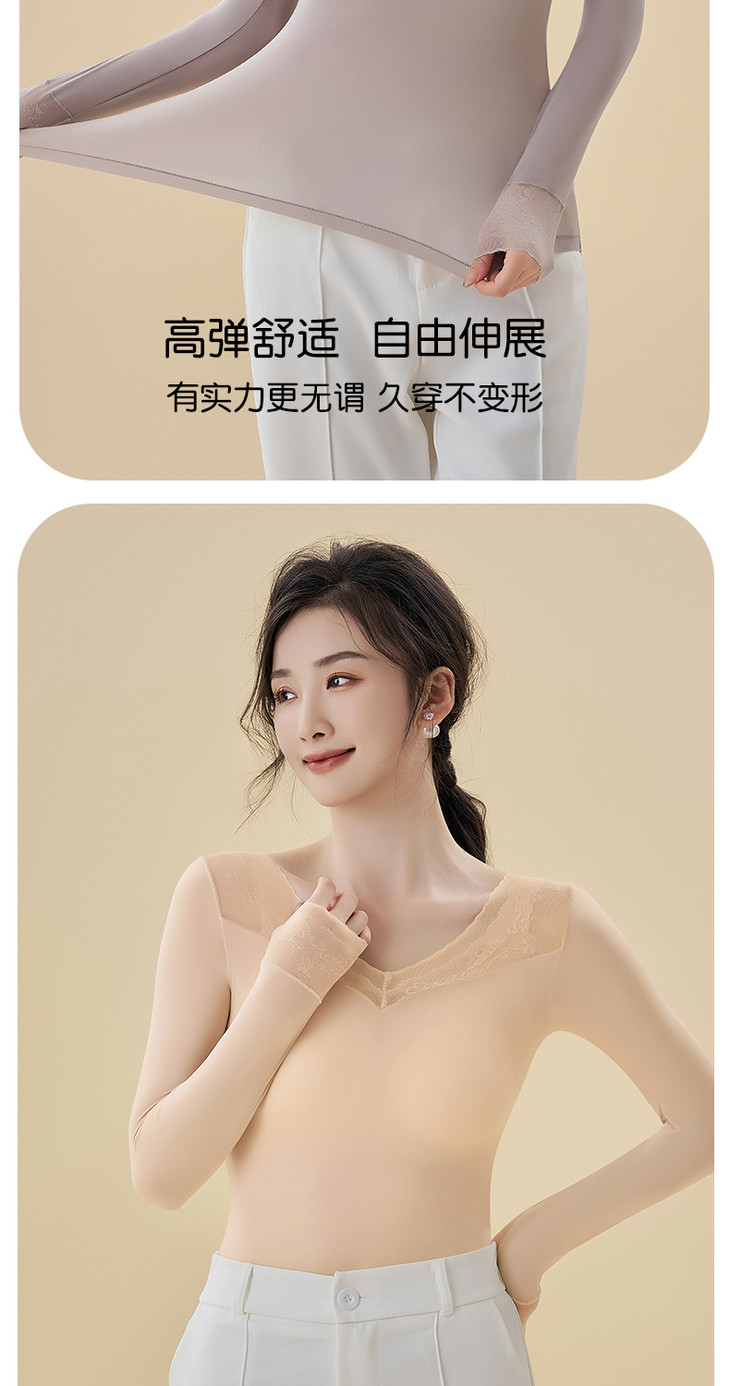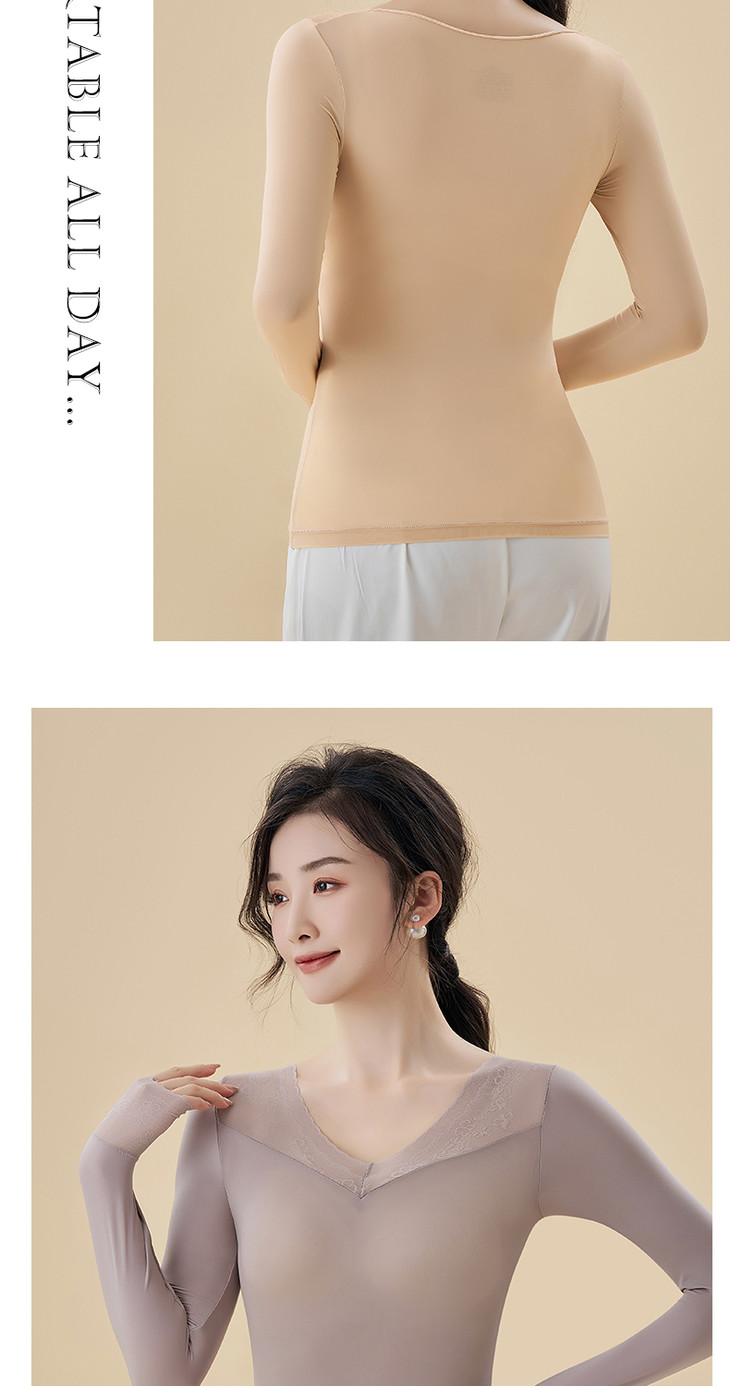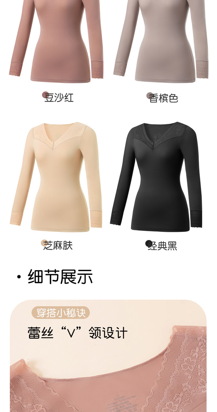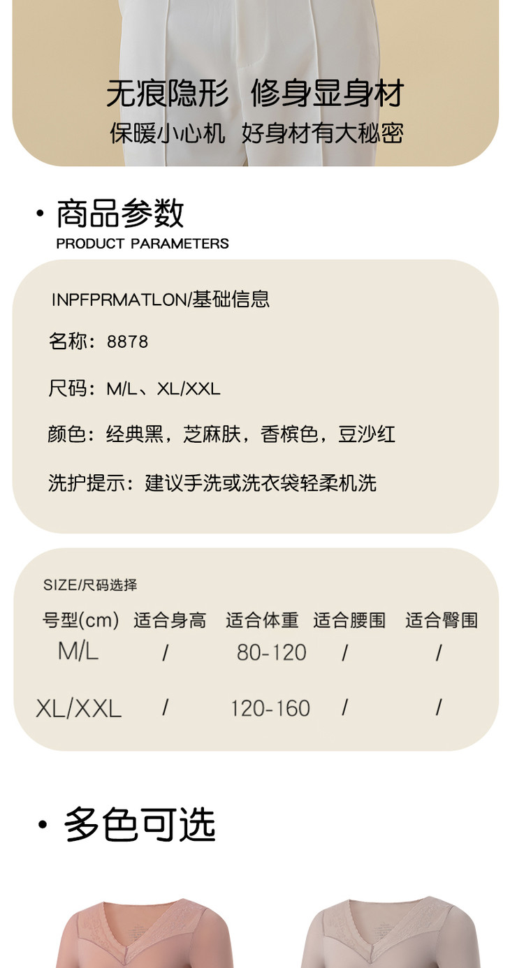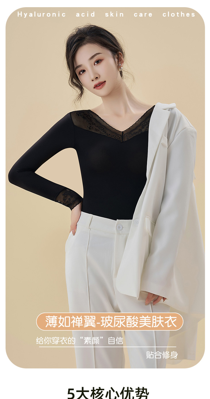 【V领玻尿酸美肤衣8878】 亲肤抗静电 锁温保暖保湿 水润肌活 高弹裸感隐形 百搭修身