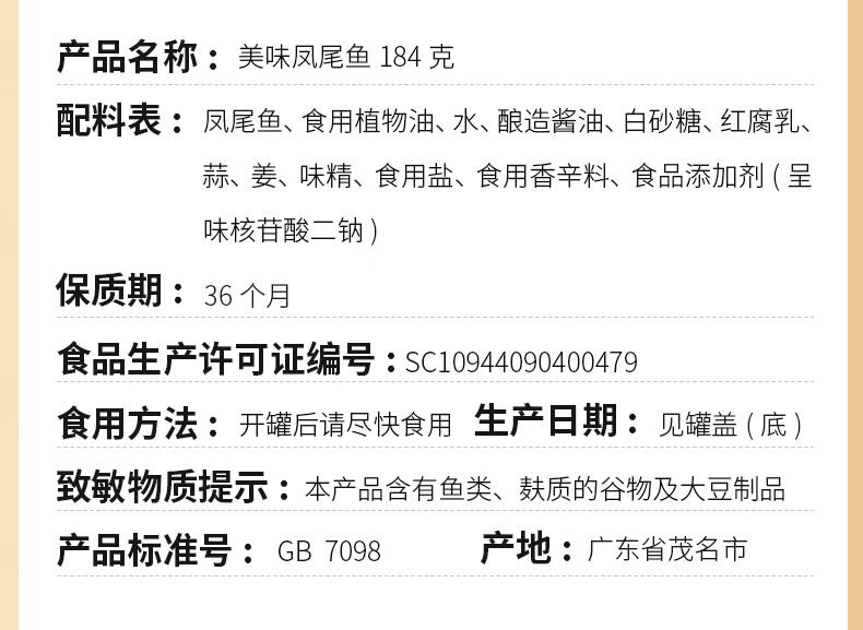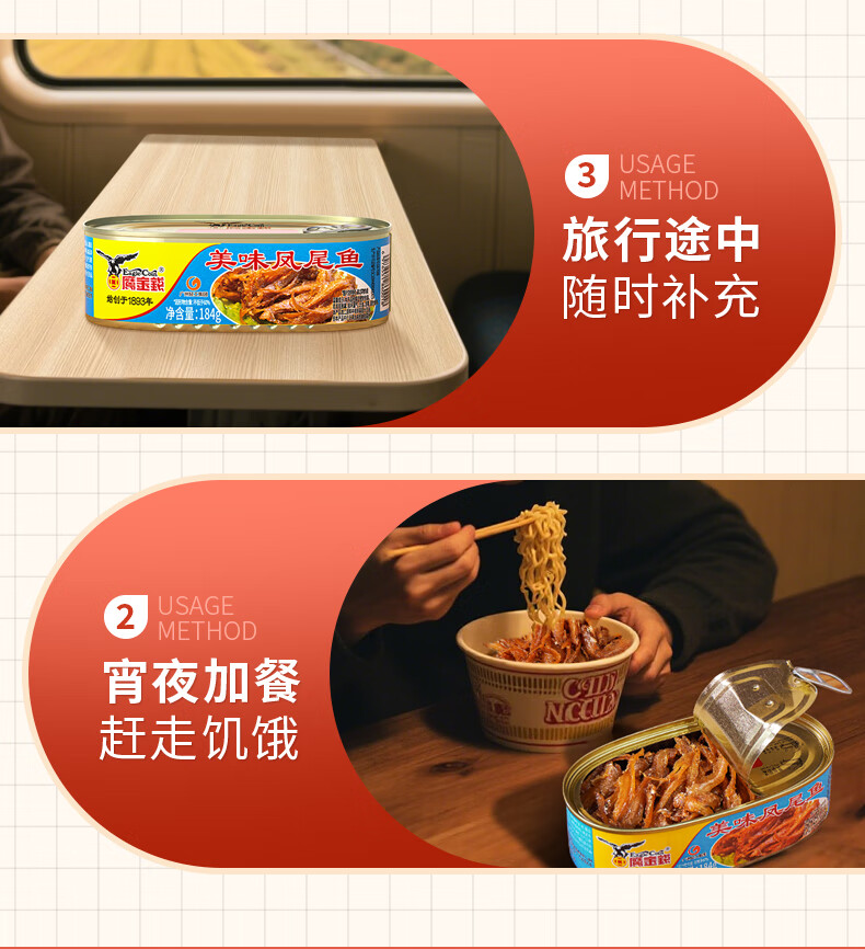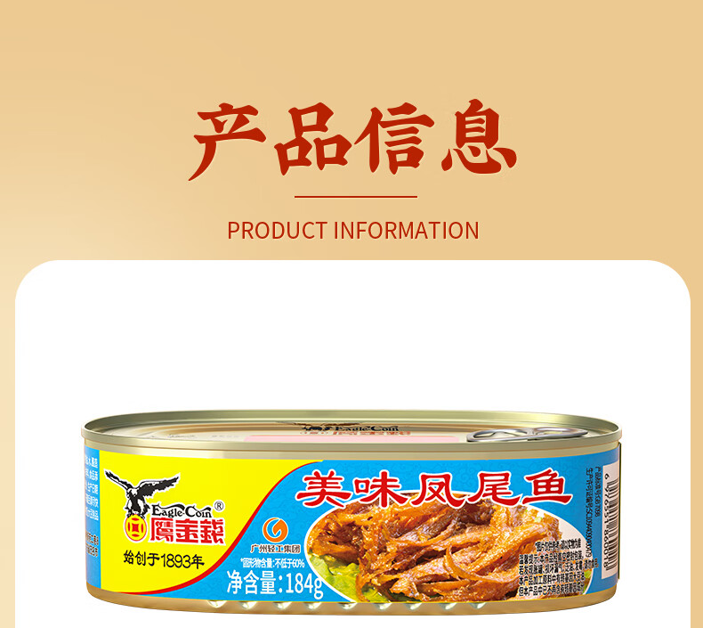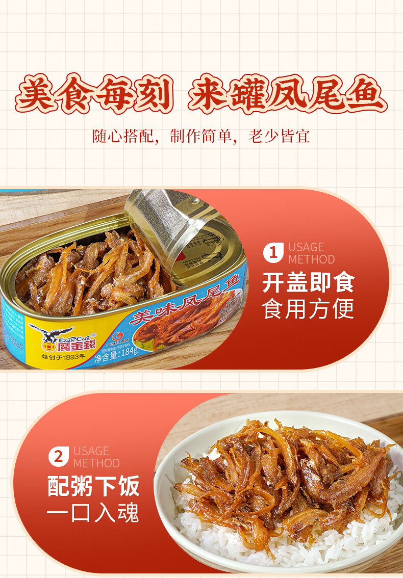 鹰金钱牌拉盖美味凤尾鱼184G(海宝)