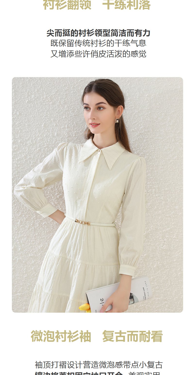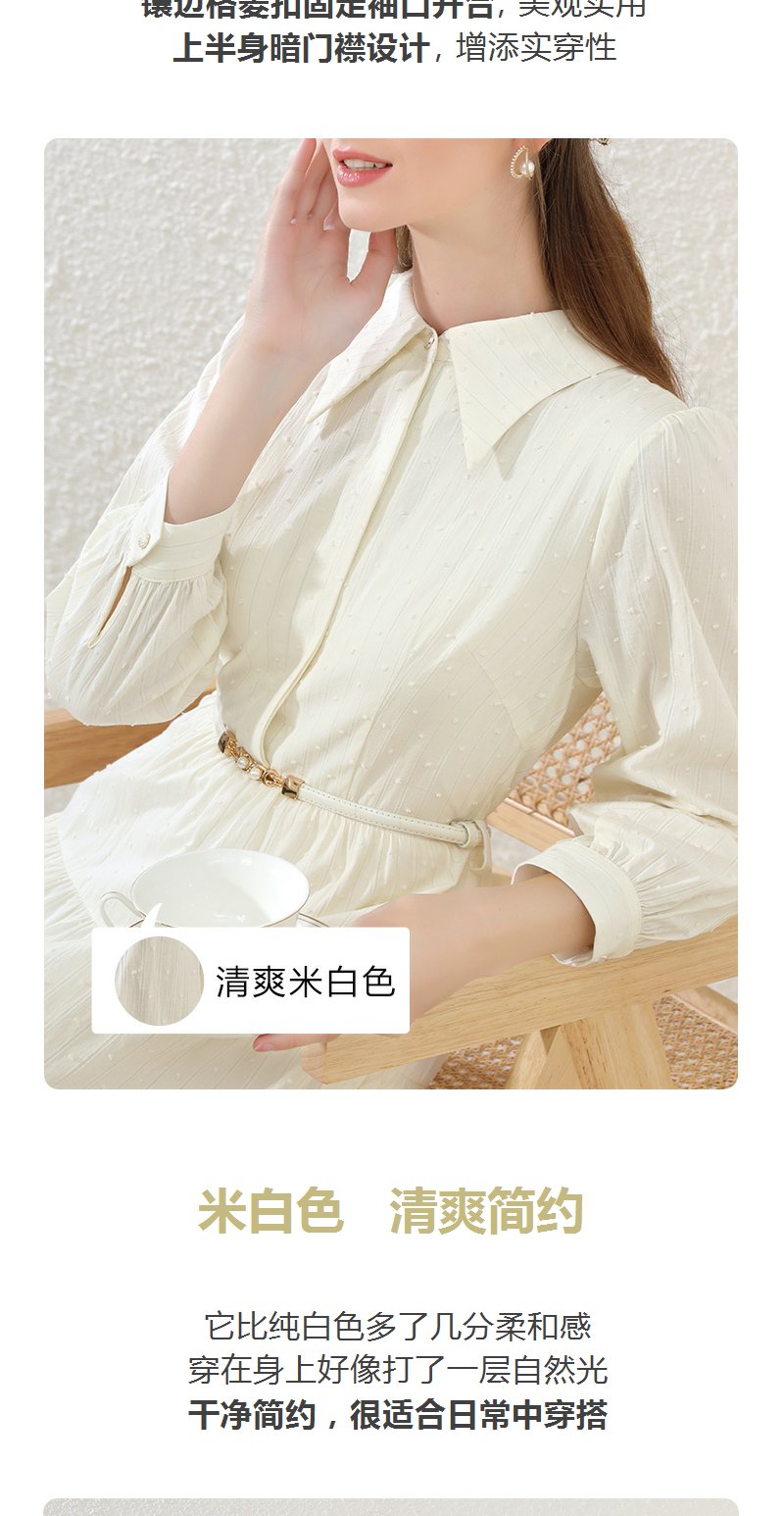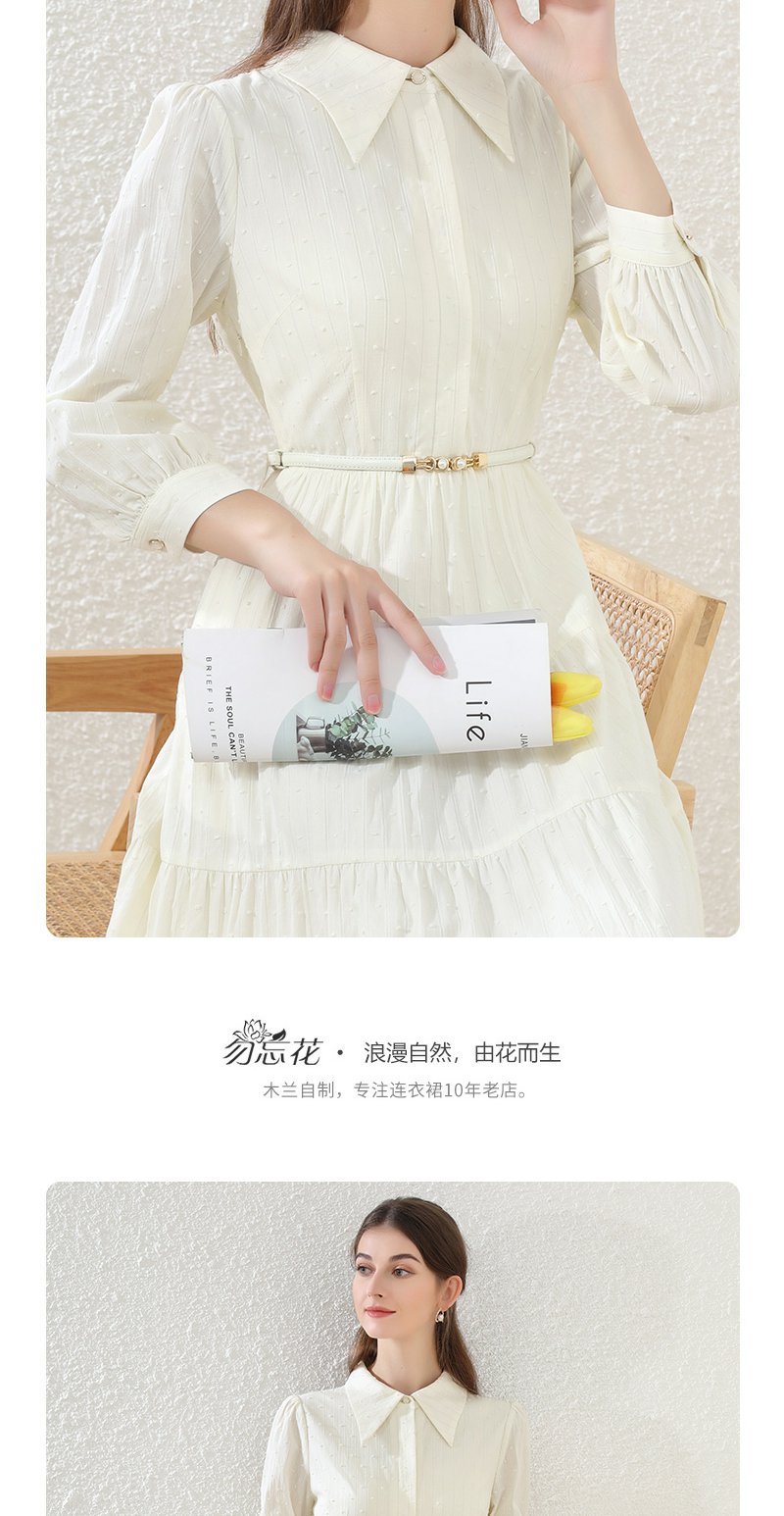 勿忘花米白色纯棉法式衬衫连衣裙女2025春装新款长裙裙子春季穿搭