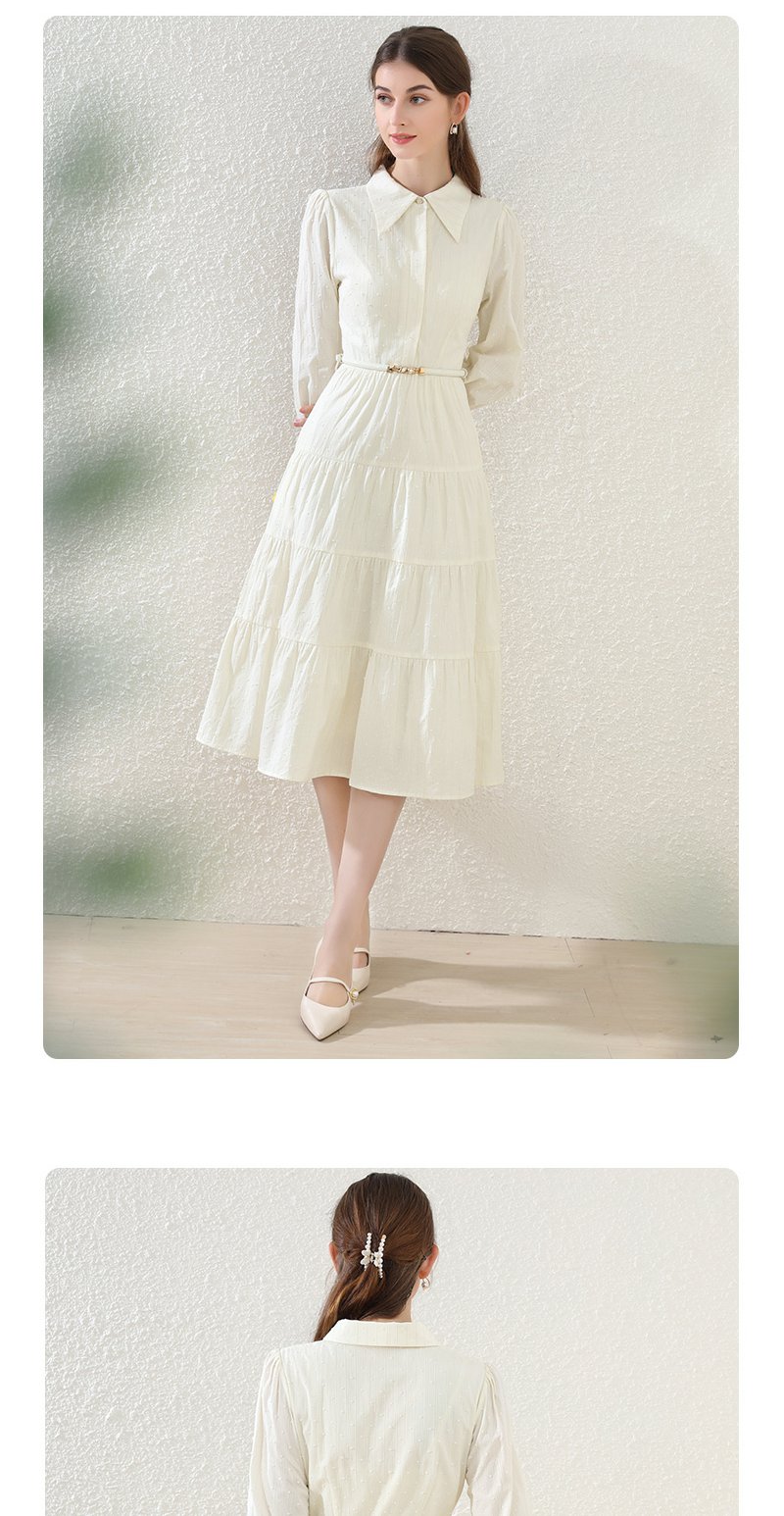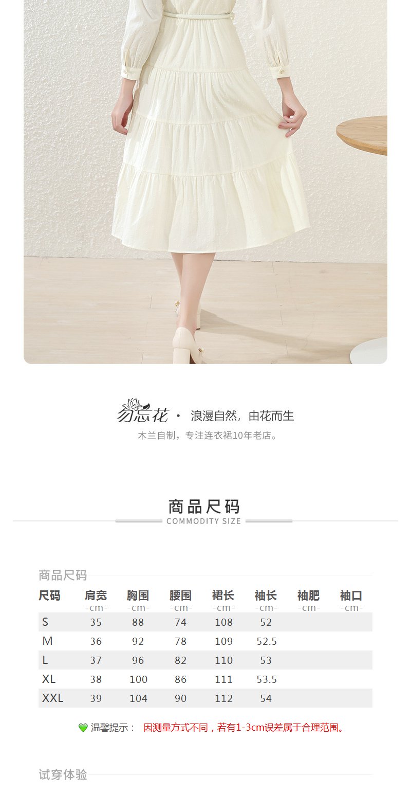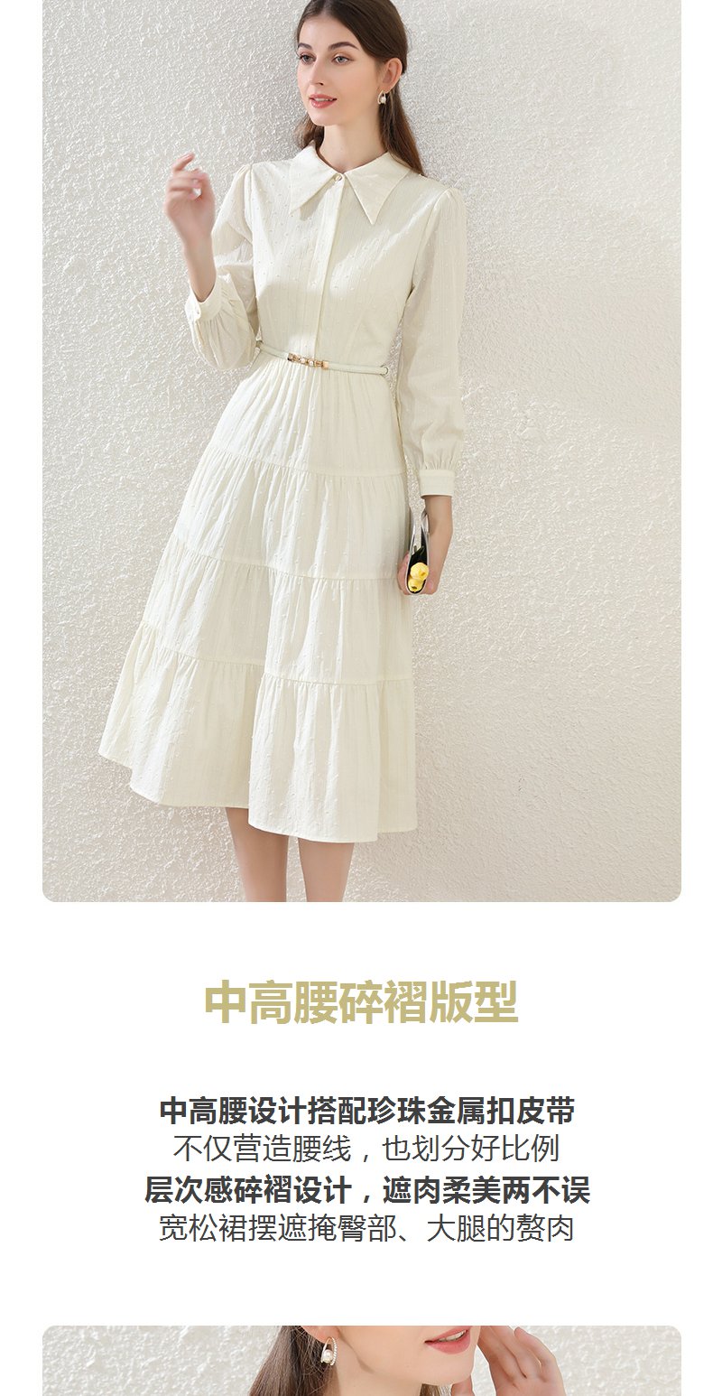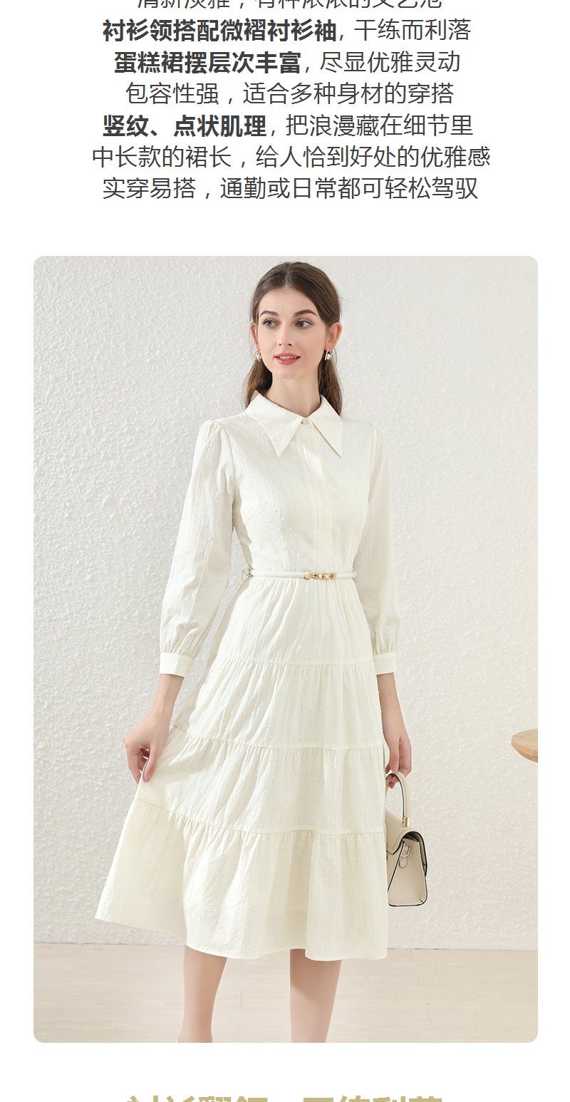 勿忘花米白色纯棉法式衬衫连衣裙女2025春装新款长裙裙子春季穿搭