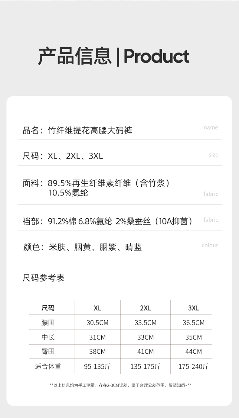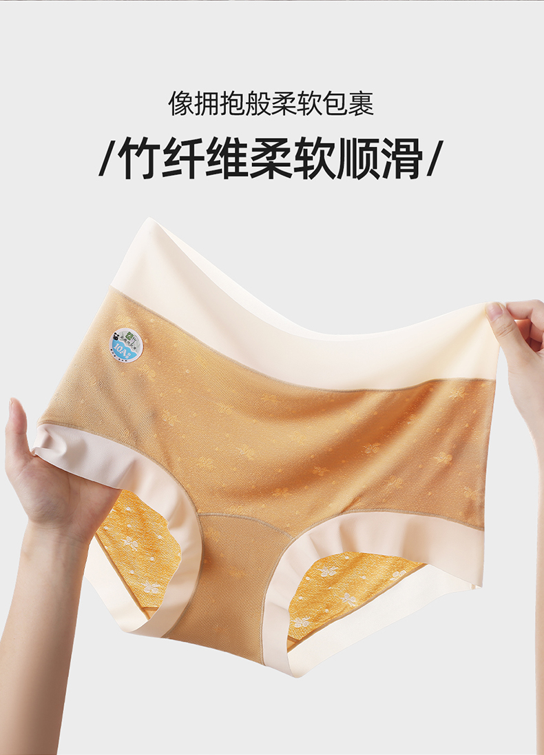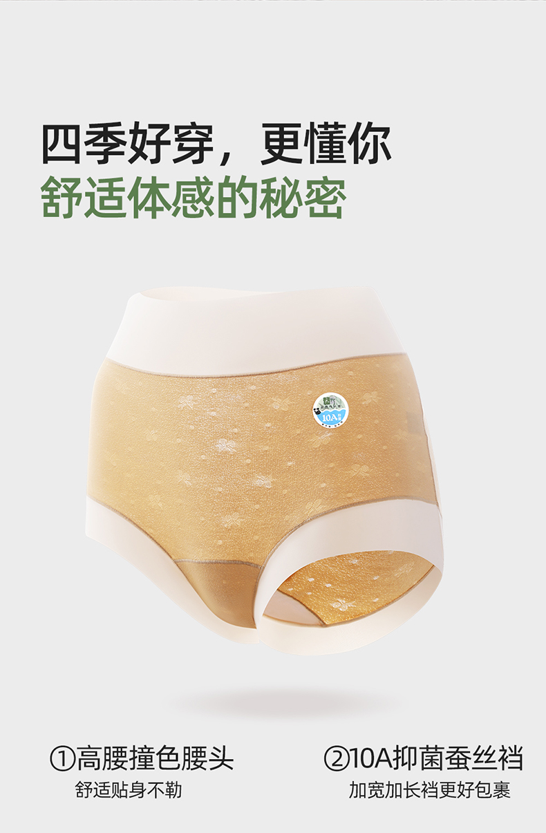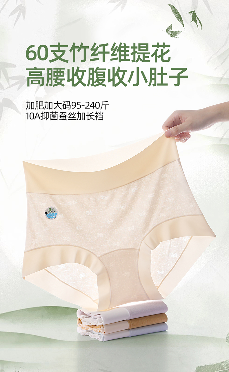 新款60支竹纤维大码内裤高腰收腹桑蚕丝加长裆10A抗菌三角内裤525