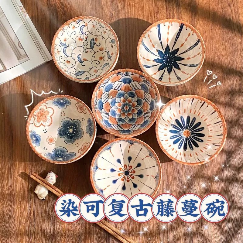 【染可复古藤蔓六件套】??一套碗唤醒生活的仪式感??拿在手上质感很nice,复古编织图案,让人一见心动!