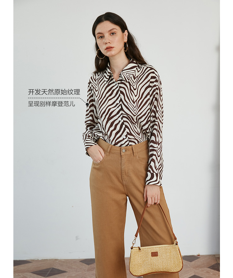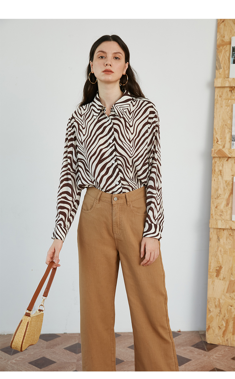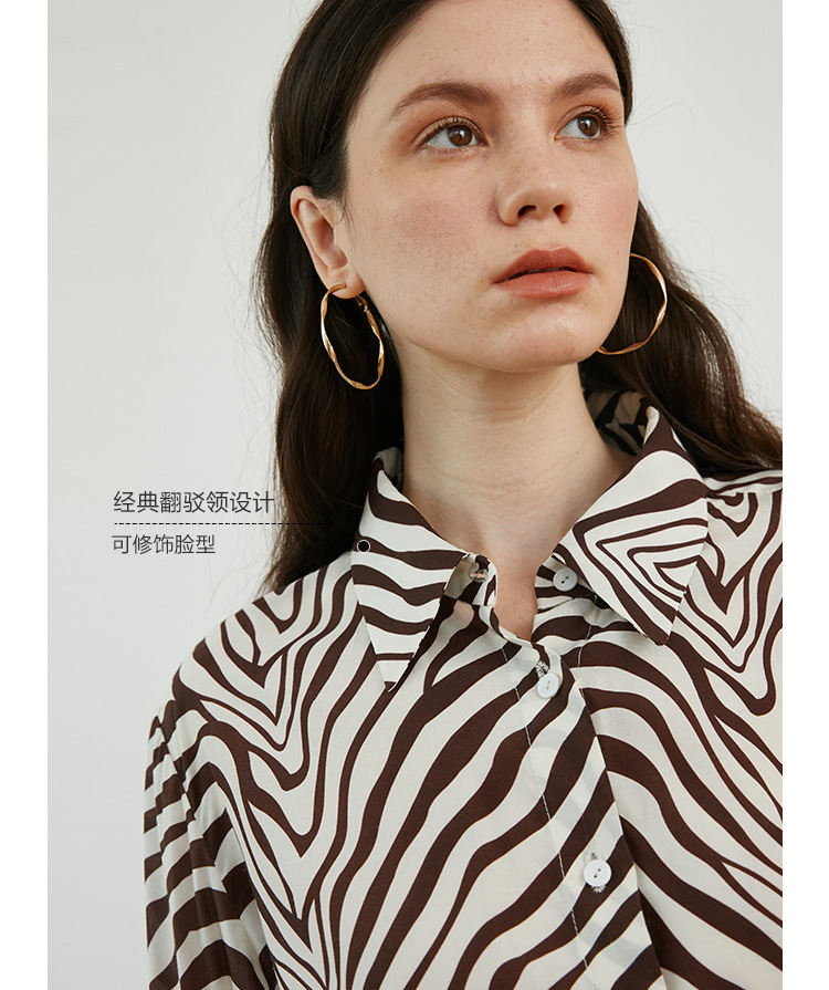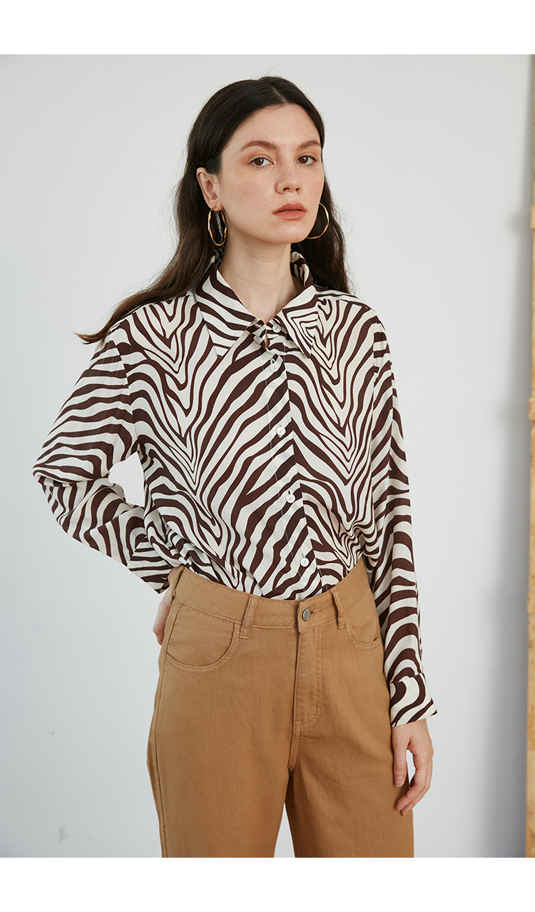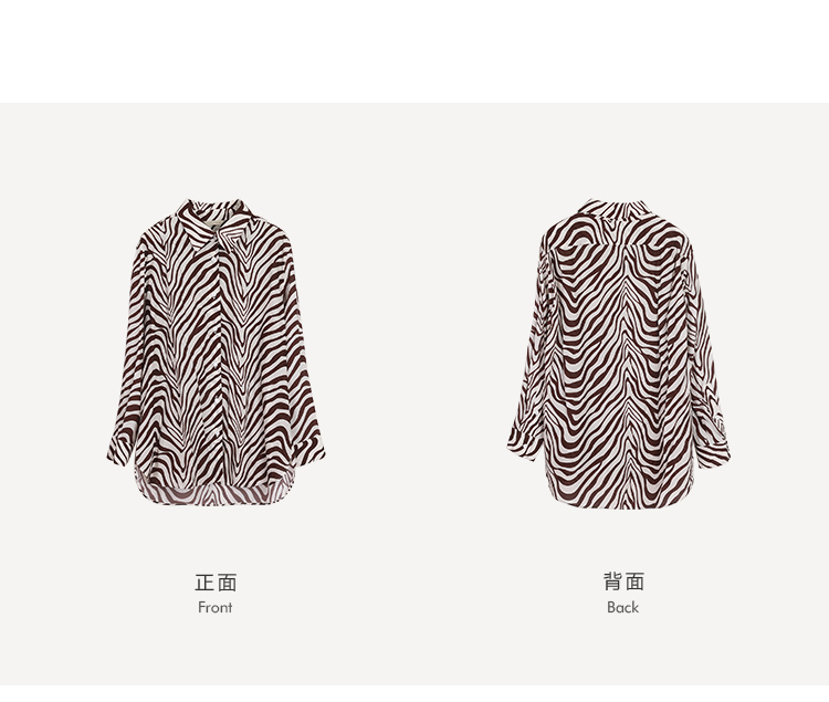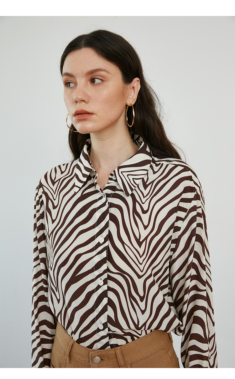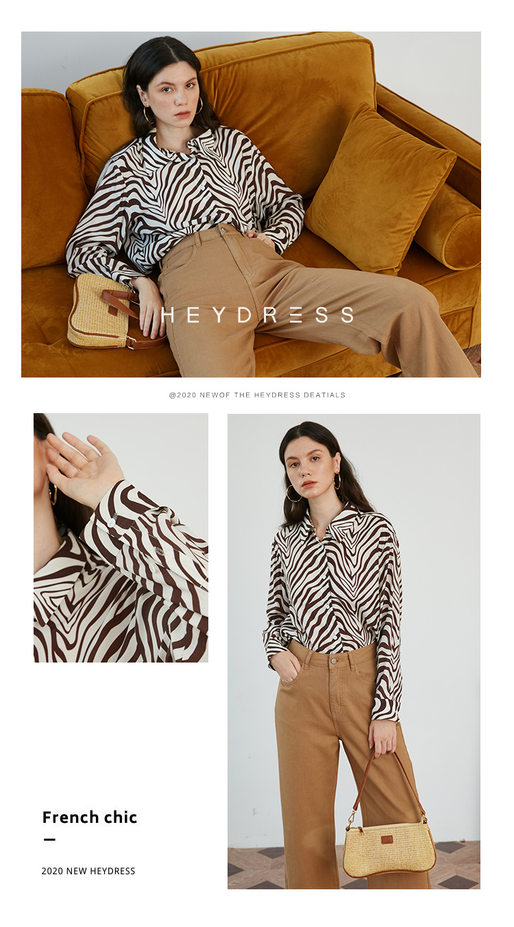HeyDress斑马纹衬衫女春长袖法式小众设计别致上衣复古印花宽松条纹衬衣
