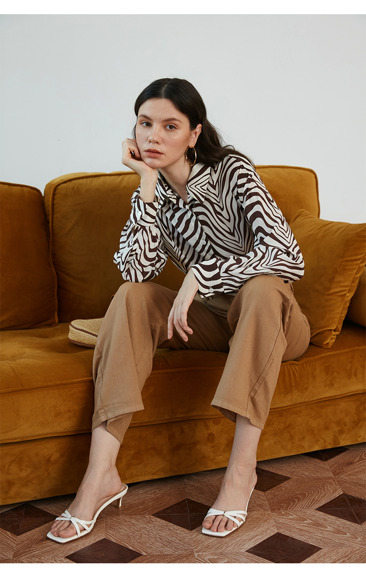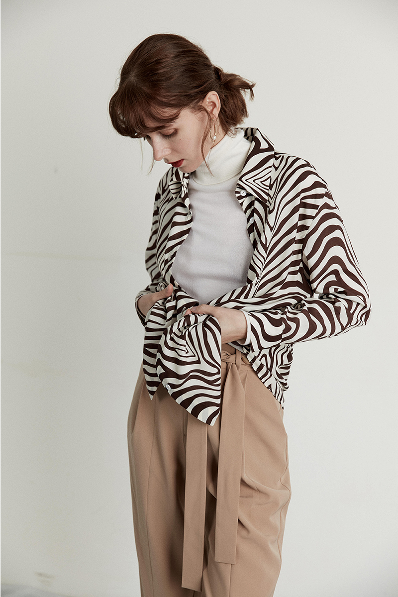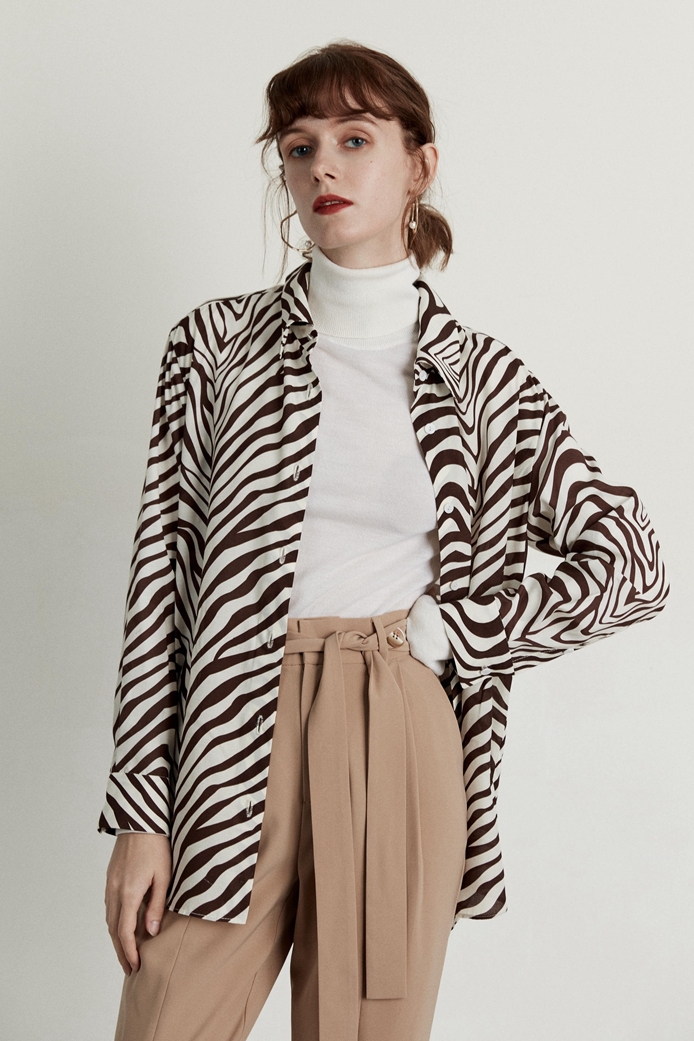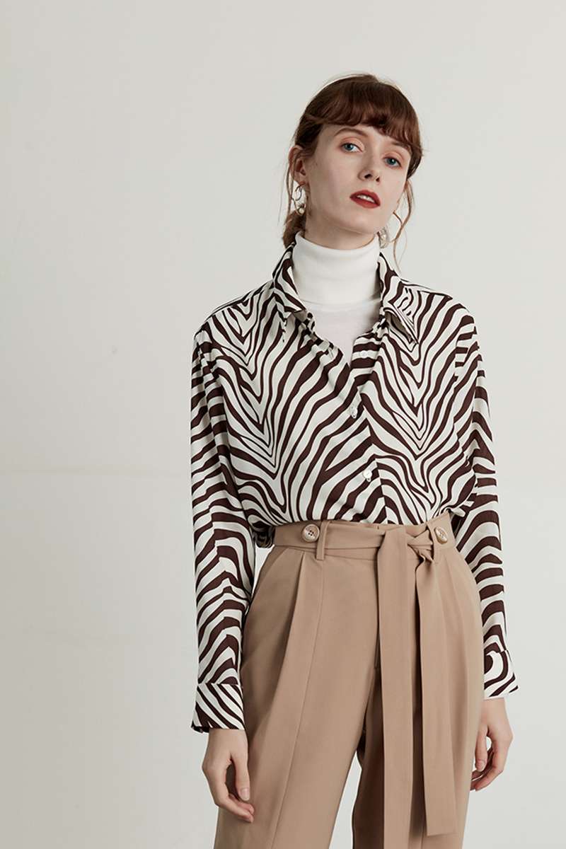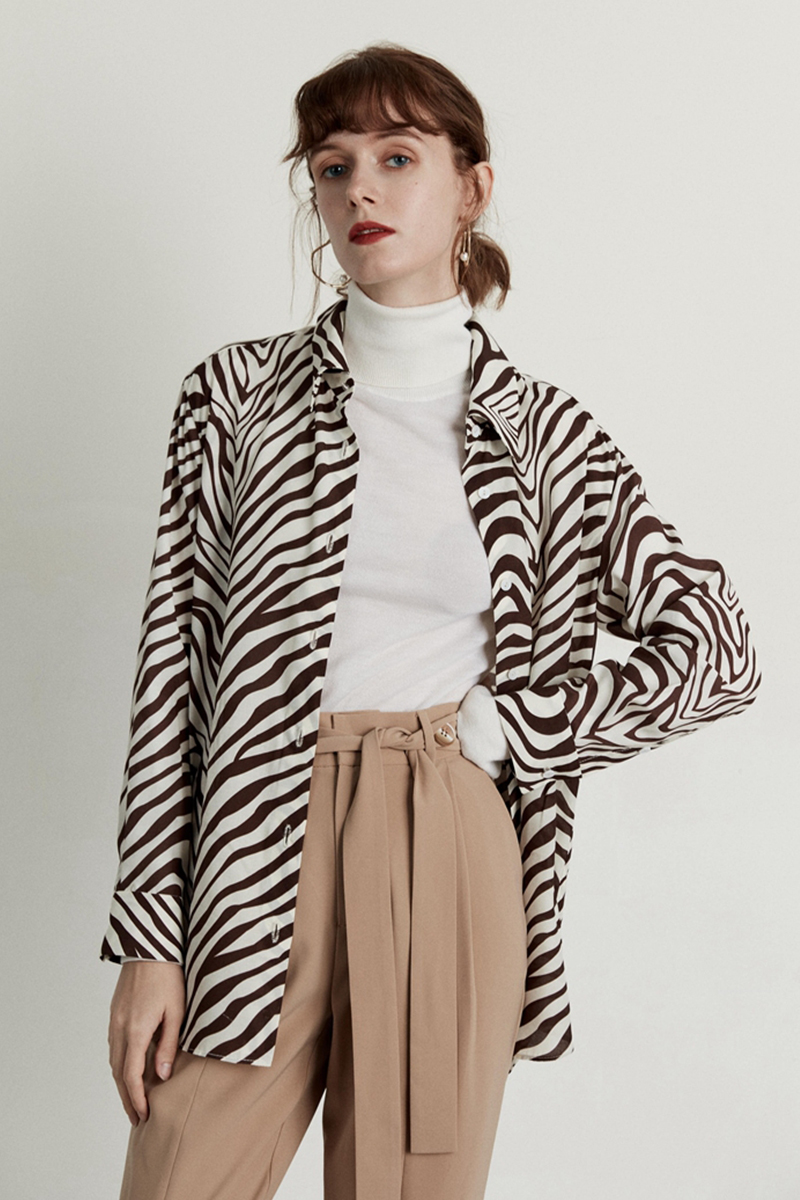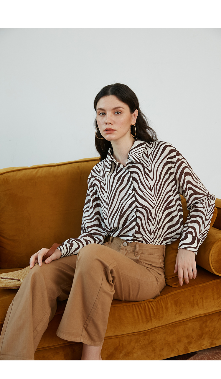 HeyDress斑马纹衬衫女春长袖法式小众设计别致上衣复古印花宽松条纹衬衣