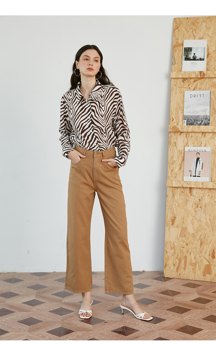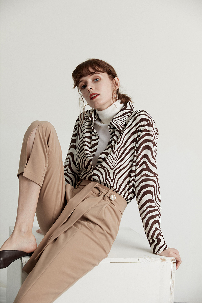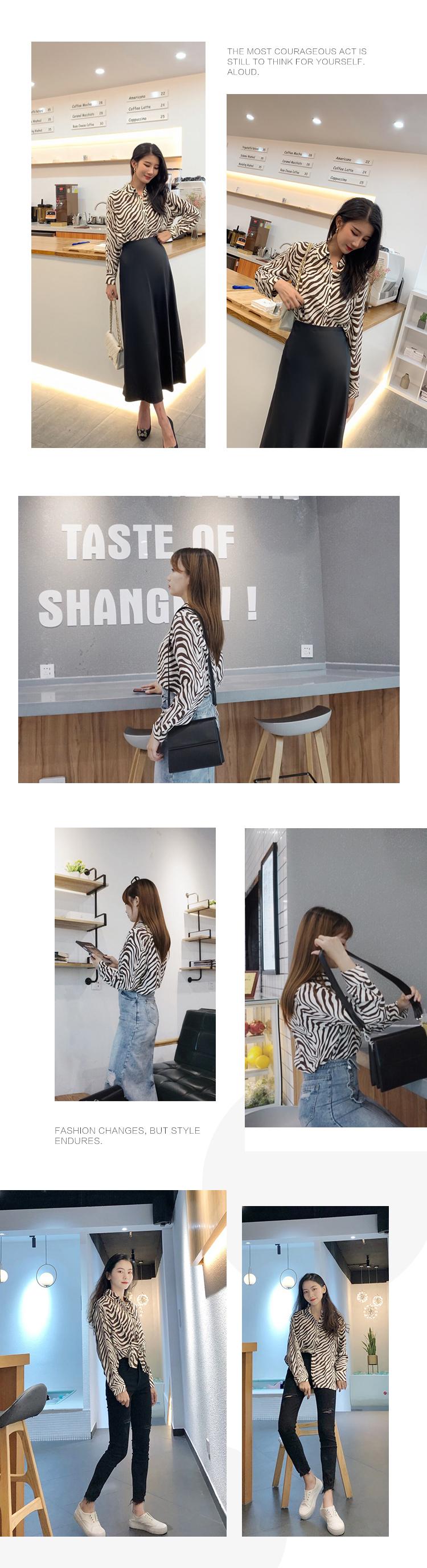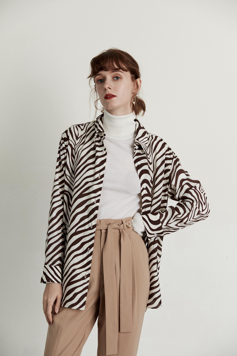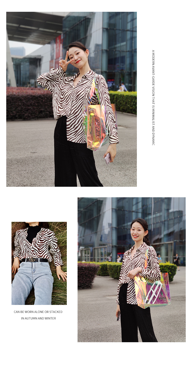 HeyDress斑马纹衬衫女春长袖法式小众设计别致上衣复古印花宽松条纹衬衣