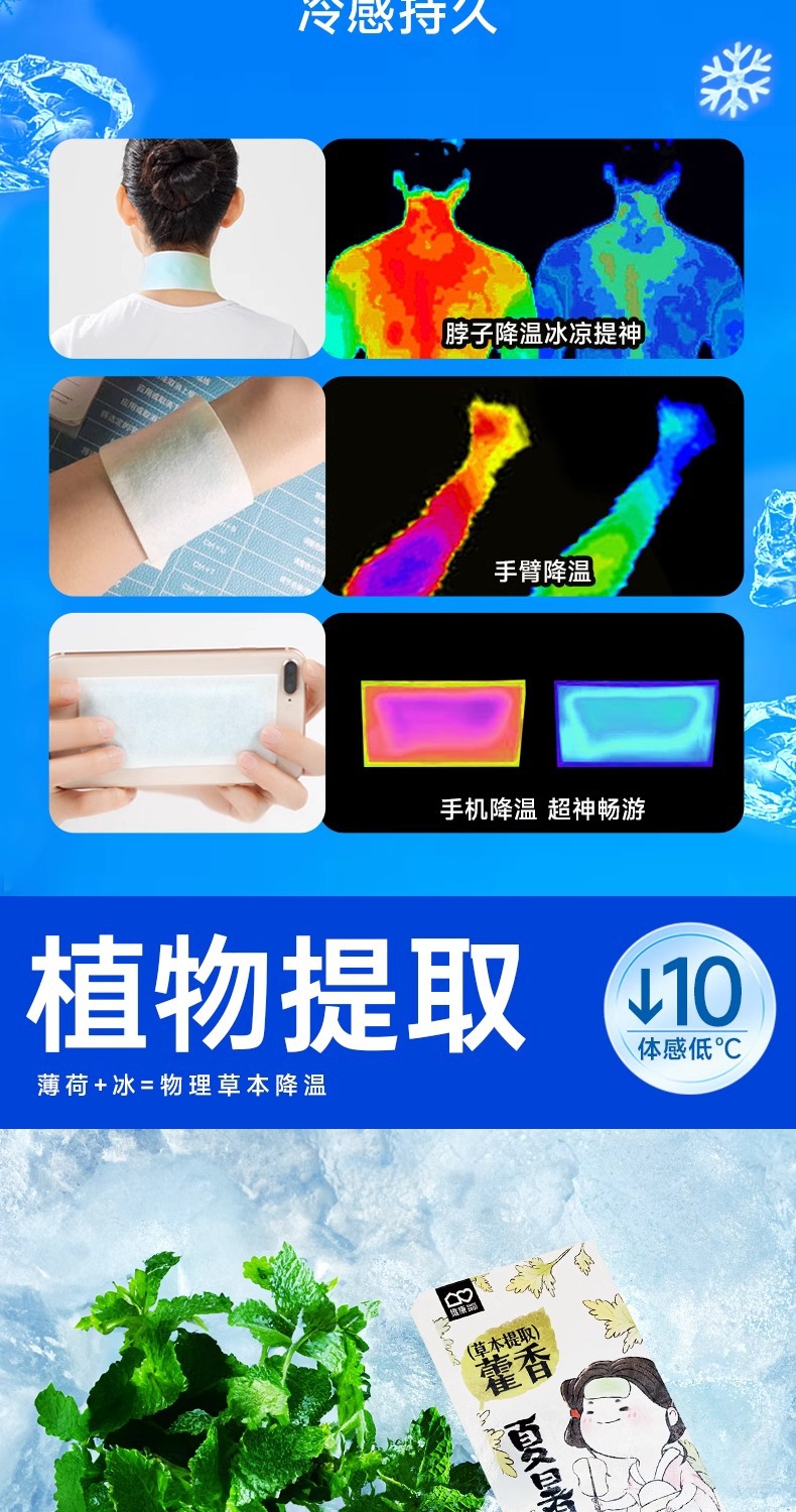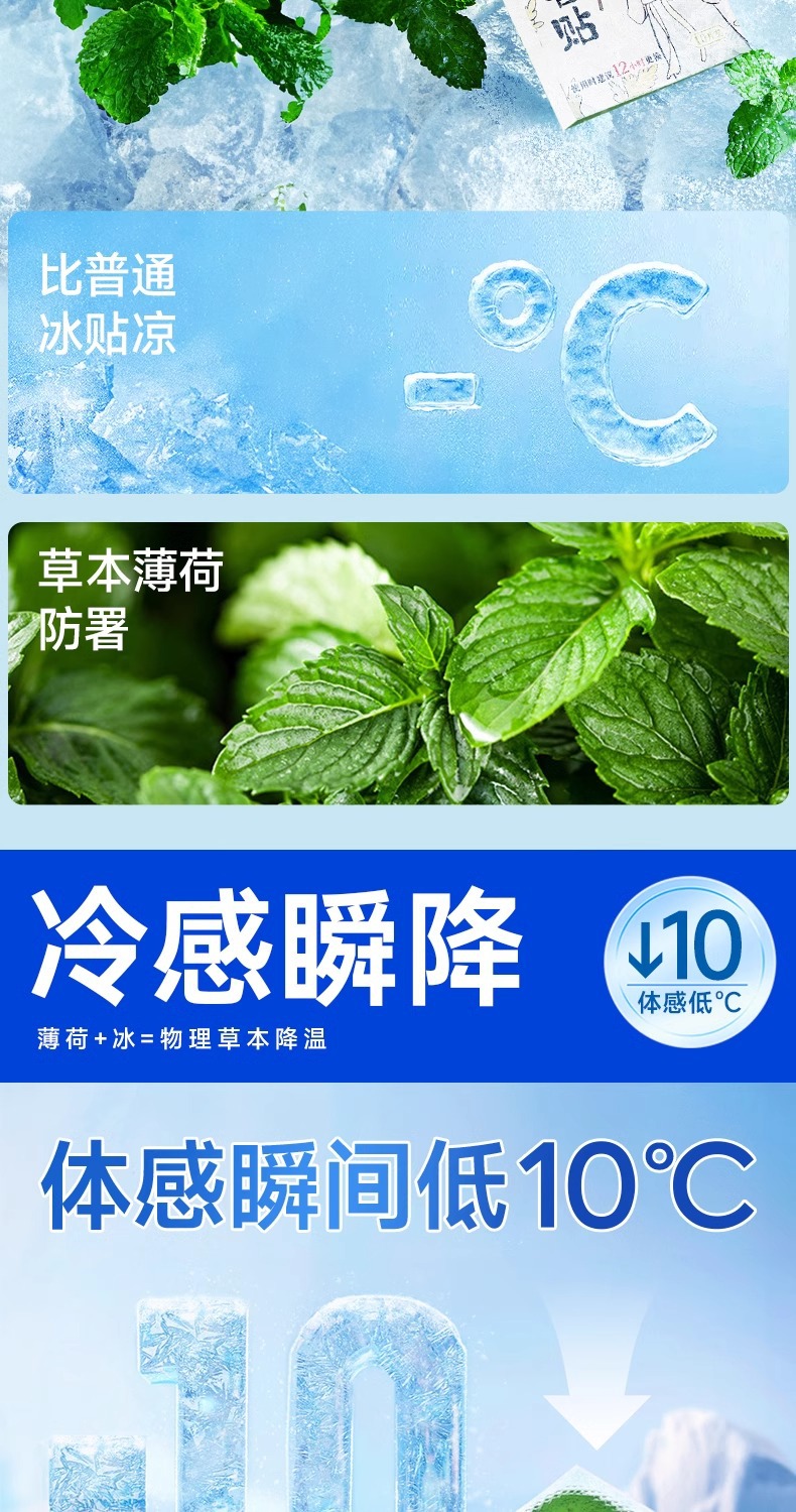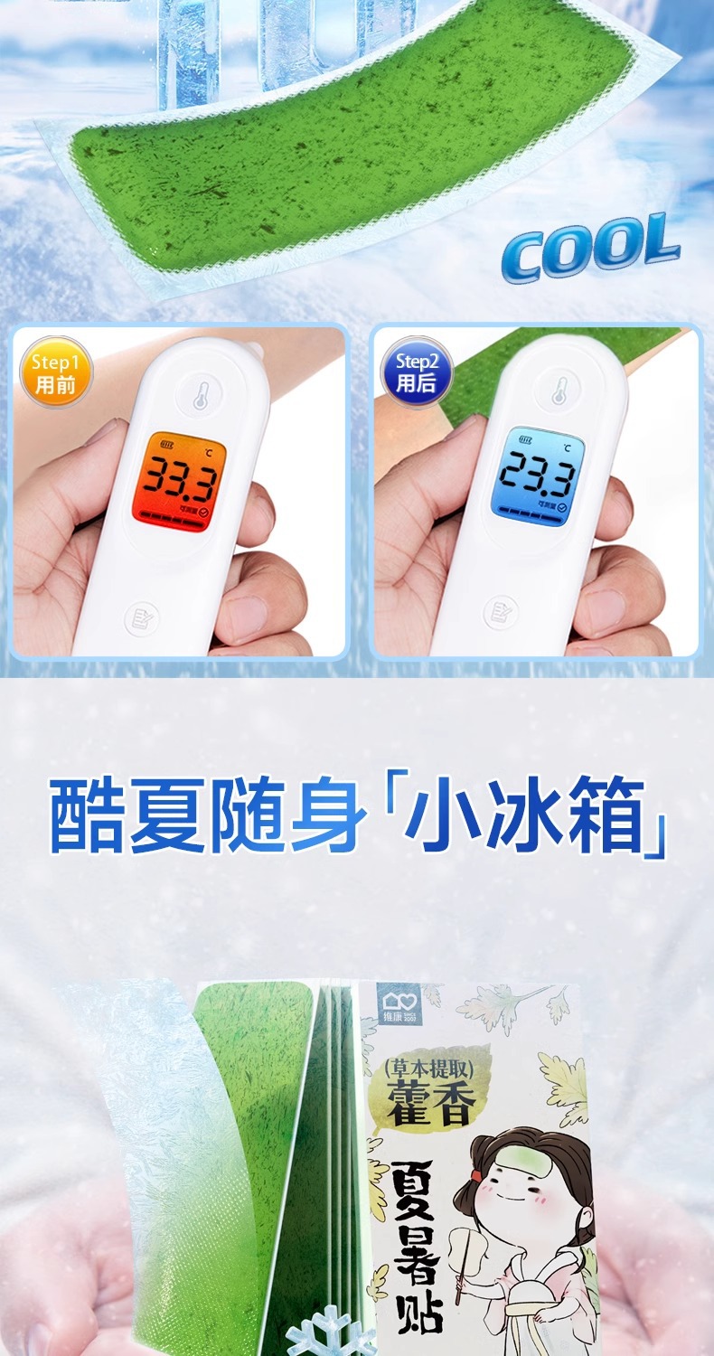 「买1送1!冰薄荷夏暑贴」草本冰凉贴 夏日户外学生军训防暑降温便携冰贴冰爽居家日用制冷清凉贴