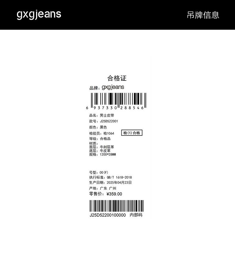 gxg.jeans男装 男士腰带男士皮带腰带牛皮 25年夏热卖