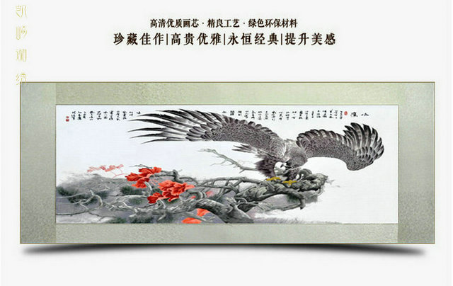 凯崎湘绣 软裱卷轴 老鹰大鹏展翅 湘绣雄鹰大展宏图 纯手工绣客厅挂画