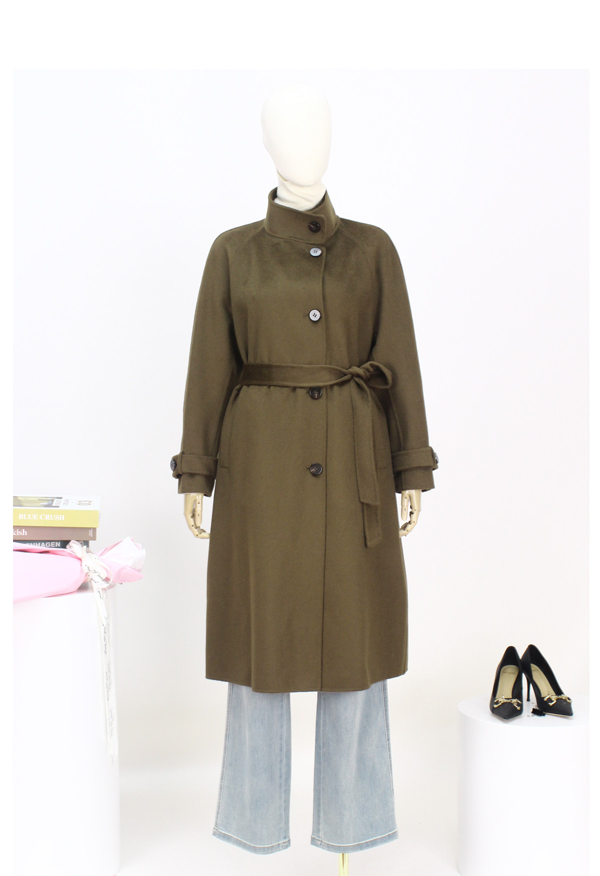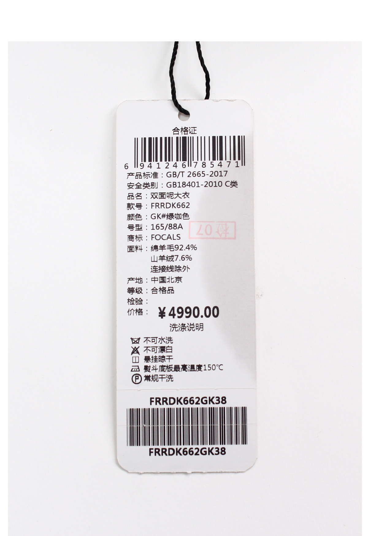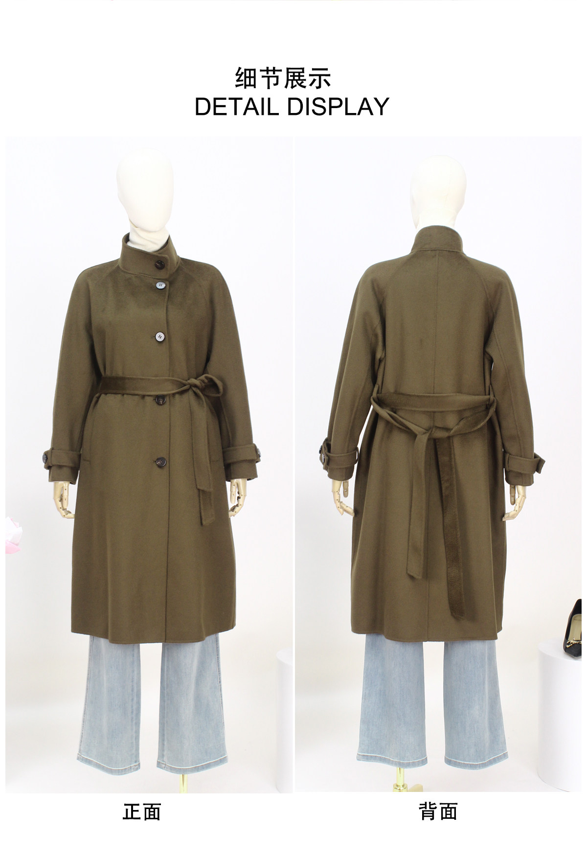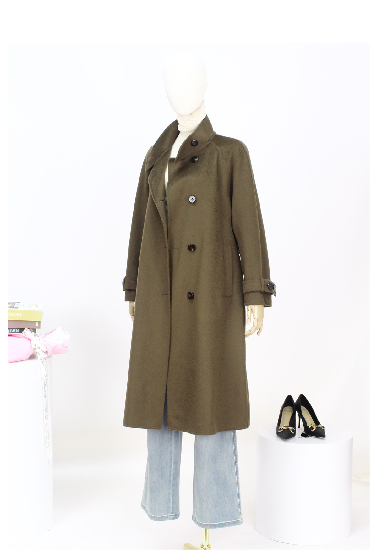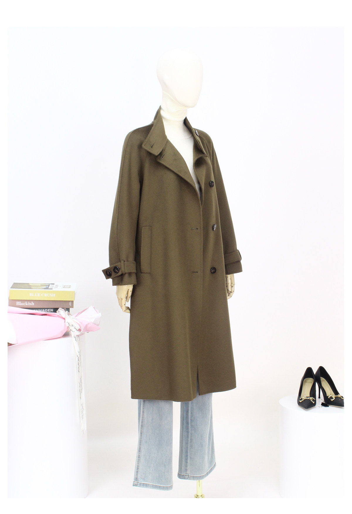 FOCALS新款时尚休闲廓形插肩袖羊毛山羊绒双面大衣外套FRRDK662GK