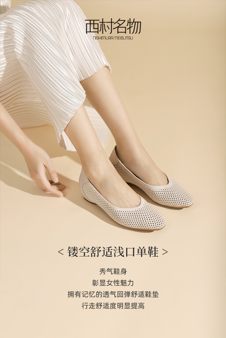 西村名物2023秋季新款简约舒适洞洞鞋通勤透气镂空轻便单鞋X23CE33641