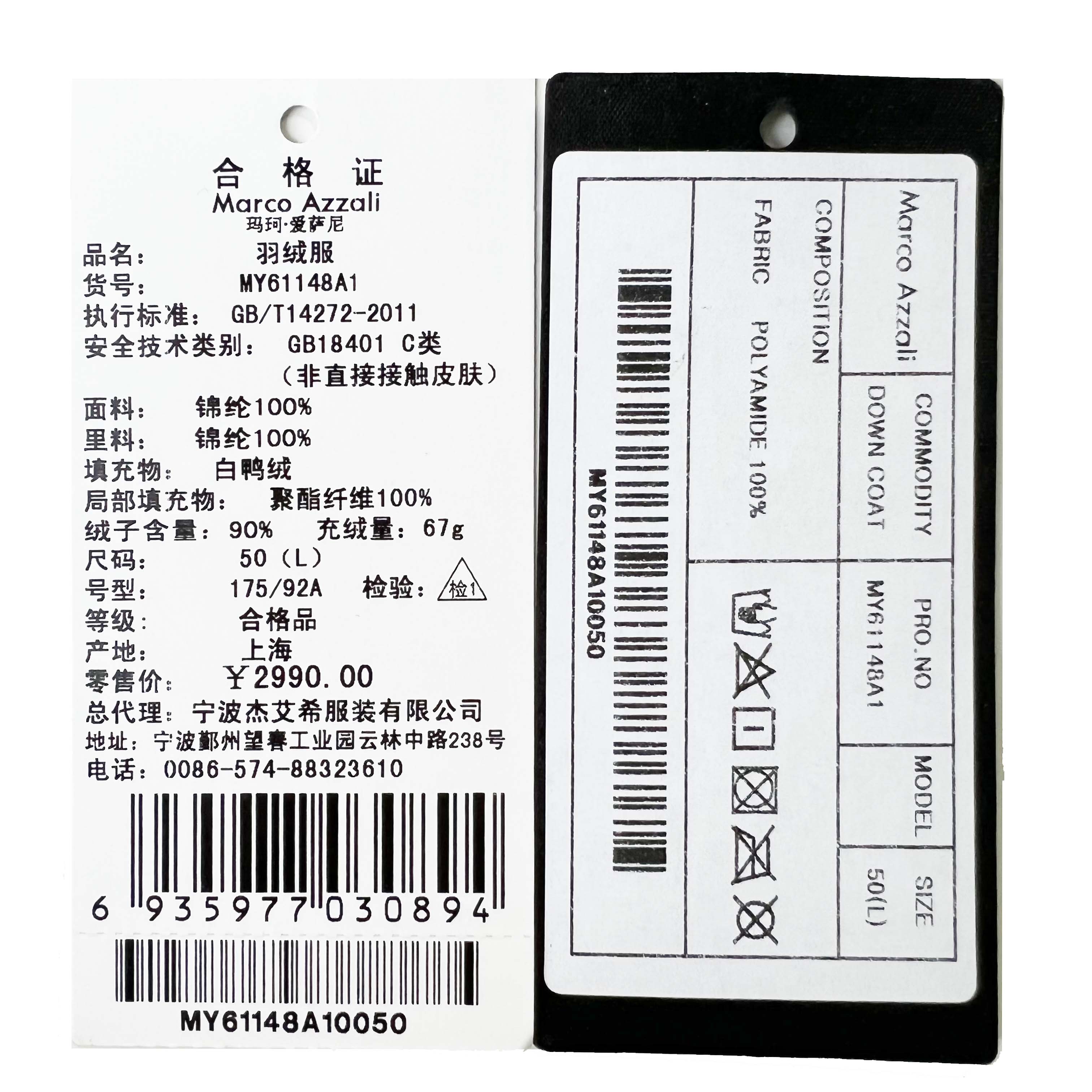 Marco Azzali 羽绒服 MY61148A1