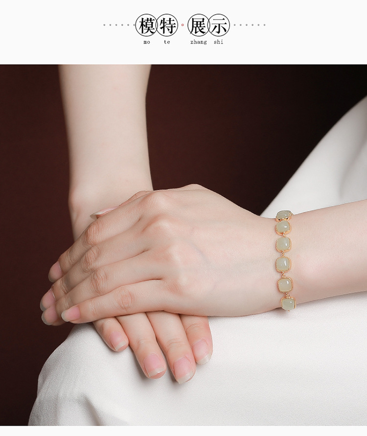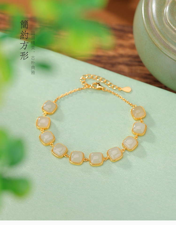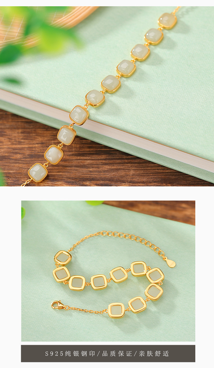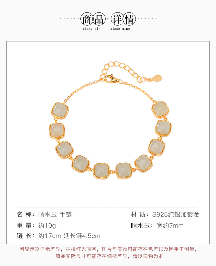 【骄阳踏水】S925银镀金和田玉晴水玉手链【CW-SL11648】