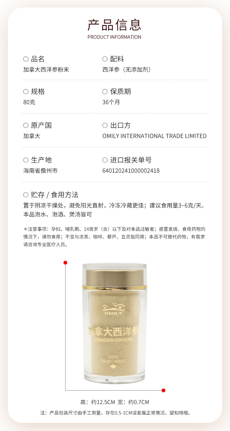 自营(森元)-欧美丽 加拿大进口西洋参粉末80克瓶装