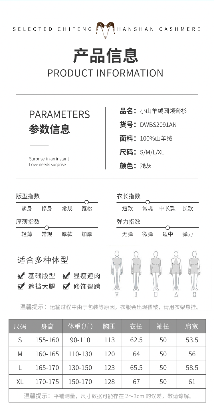 东黎 • 小山羊绒女士秋冬休闲圆领强缩绒工艺套头衫 2091