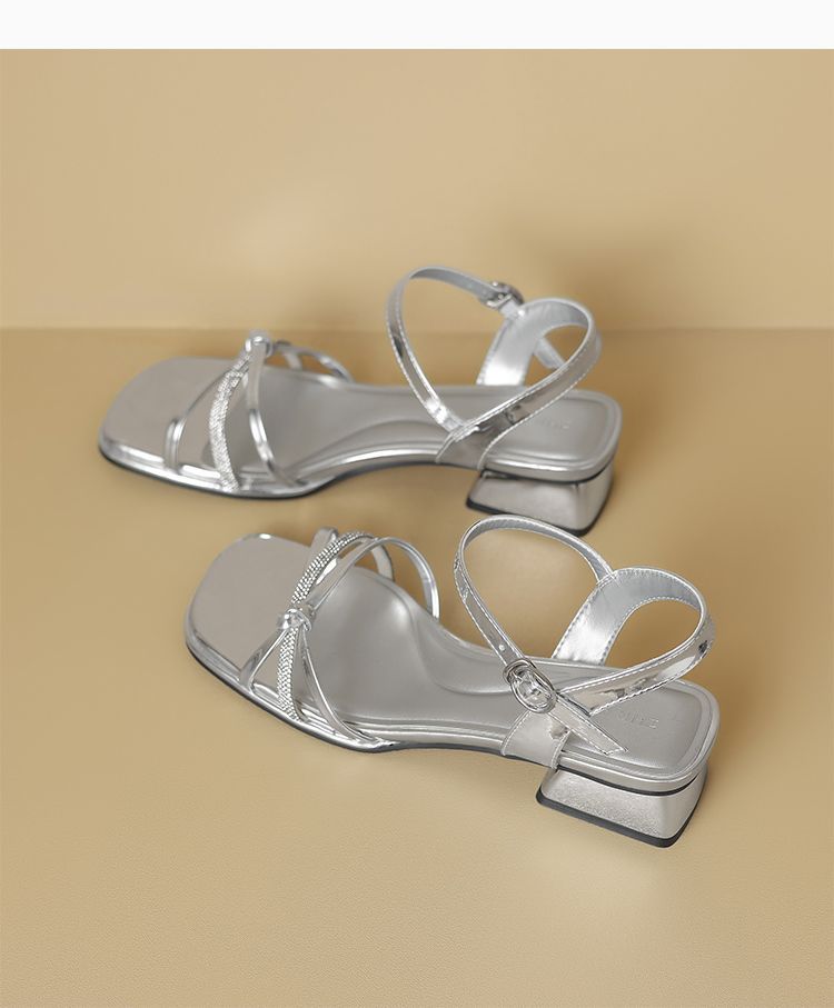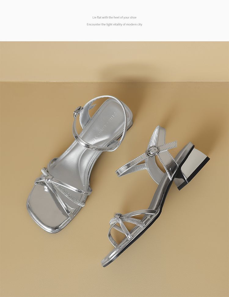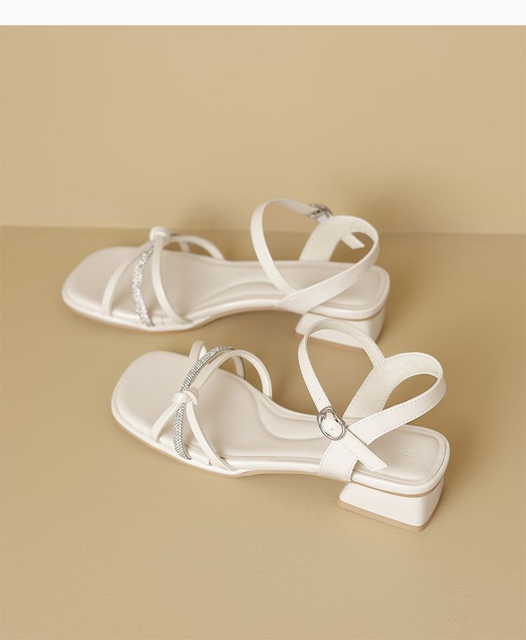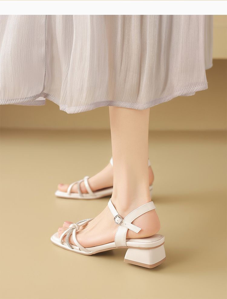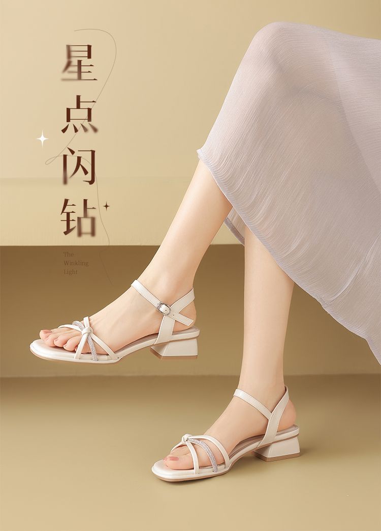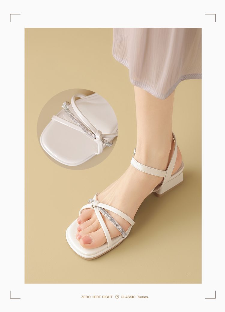 ZHR时尚一字凉鞋2025新款洋气ins水钻凉鞋百搭仙女风粗跟凉鞋轻便