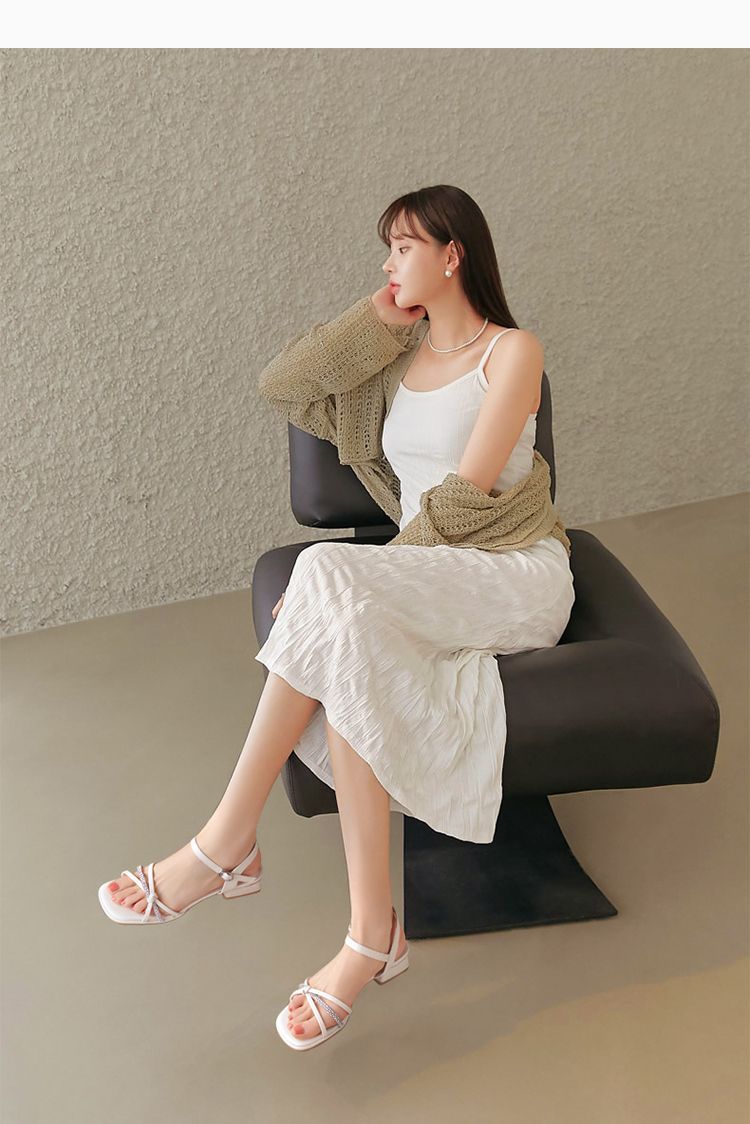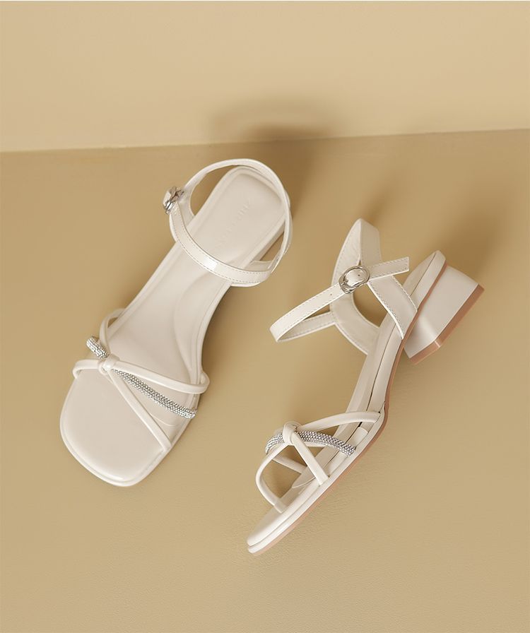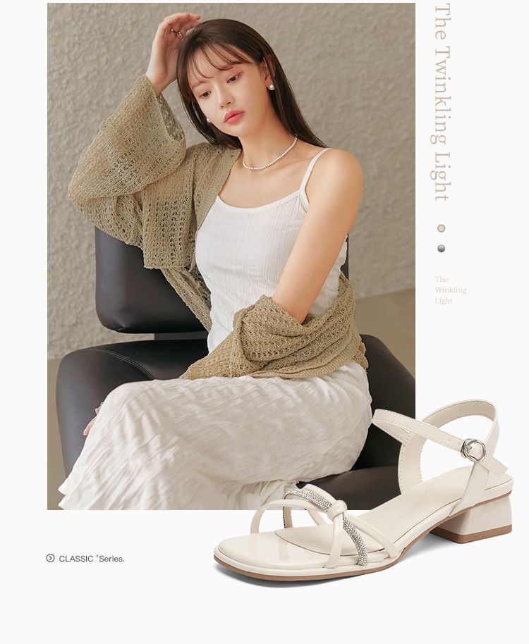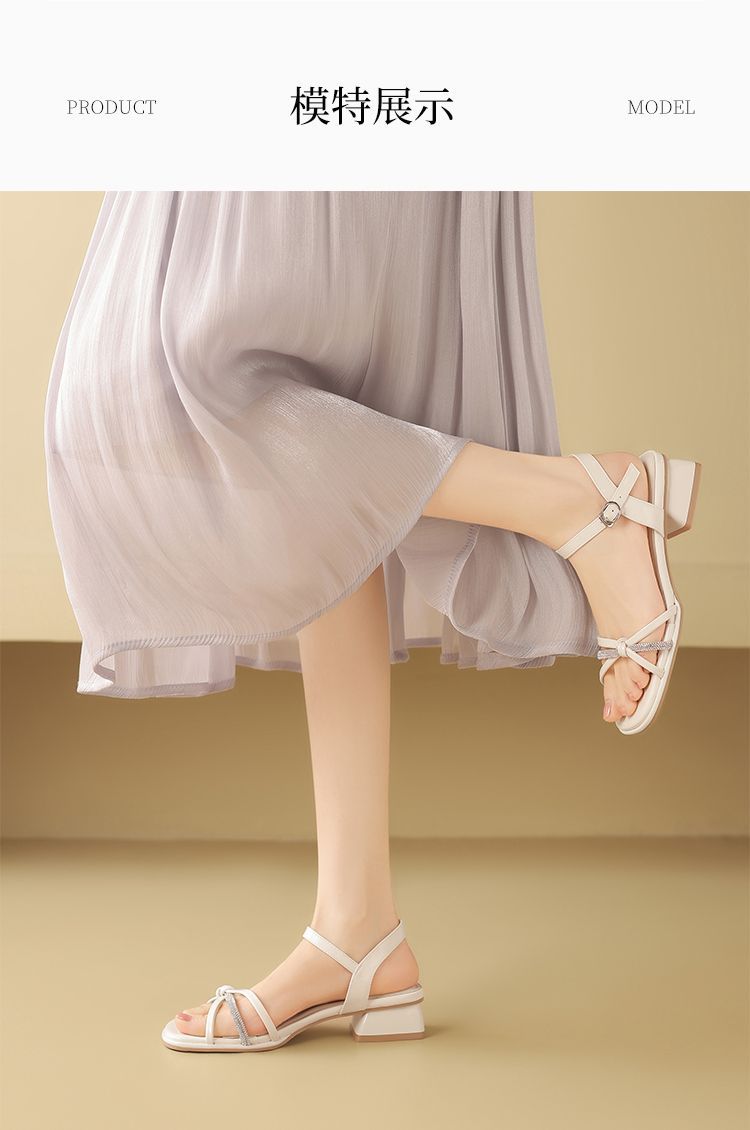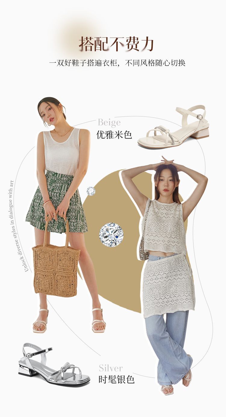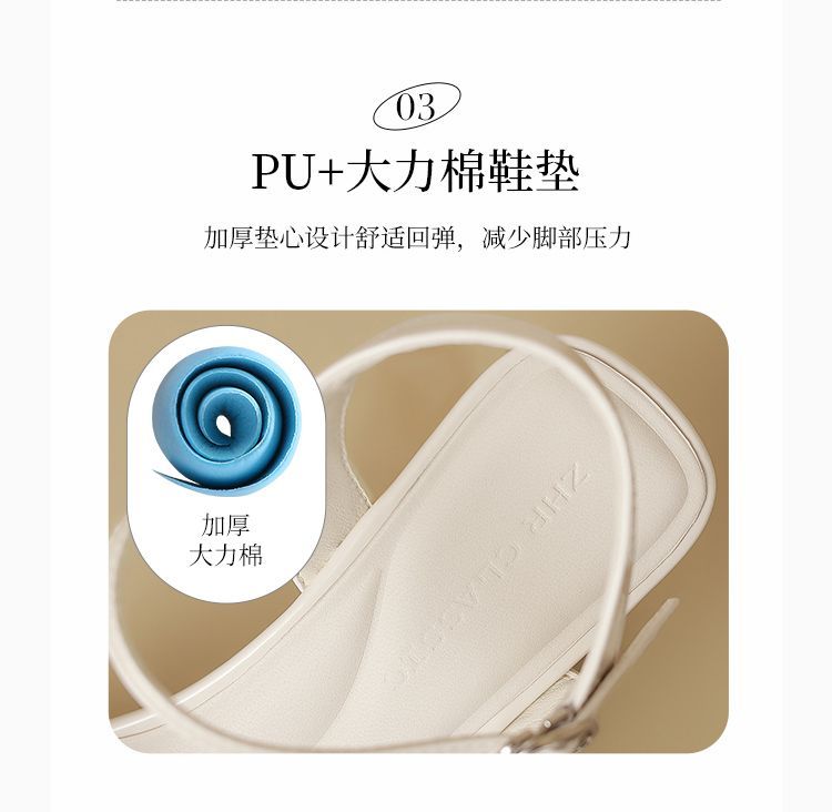 ZHR时尚一字凉鞋2025新款洋气ins水钻凉鞋百搭仙女风粗跟凉鞋轻便