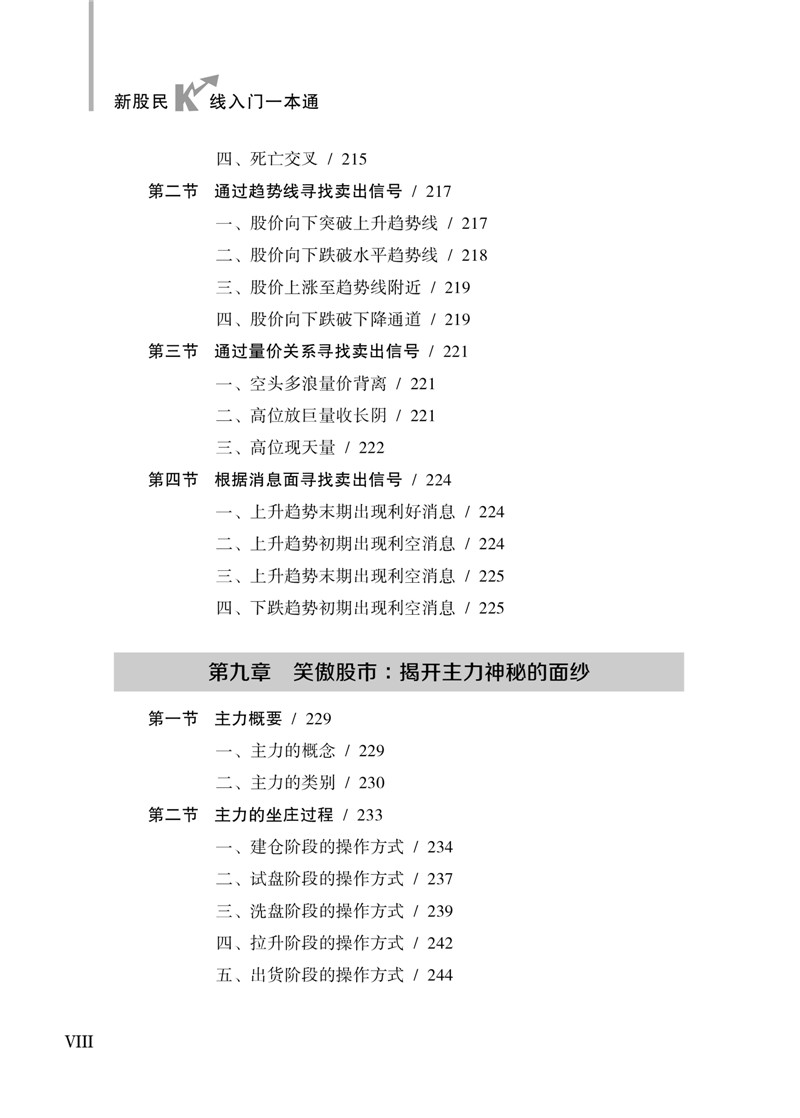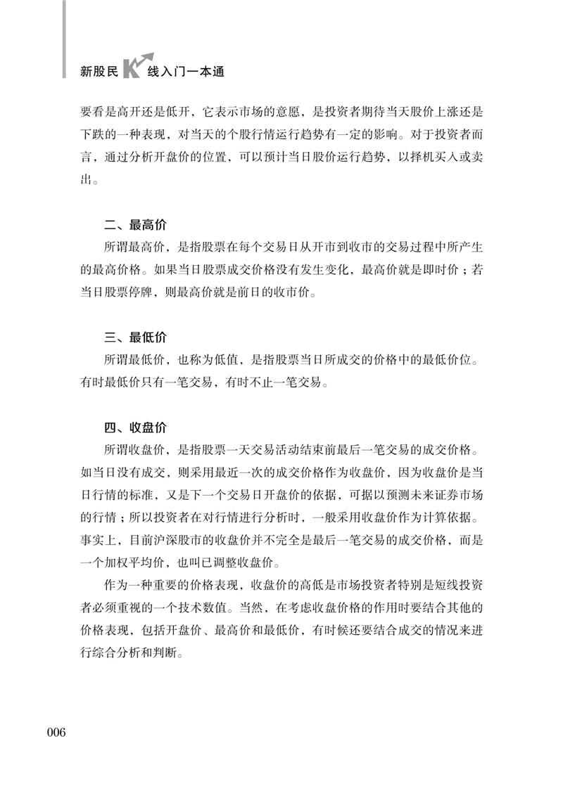 《新股民K线入门一本通》一书是根据中国股市2014年后半年之后的市场行情编写的,有大量**图解。 本书由浅入深,循序渐进地对K线的各部分基础内容进行了全面而系统的阐述,重点讲述了利用K线形态的赚钱方法与技巧。本书采用**行情案例,利用海量图例,深入浅出,通俗易懂。通过对本书的学习,投资者可以轻松学会用K线对股市的实时发展进行综合研判。本书既可以成为广大新入市投资者的知识引导,也可以成为投资实践者的有益参考。