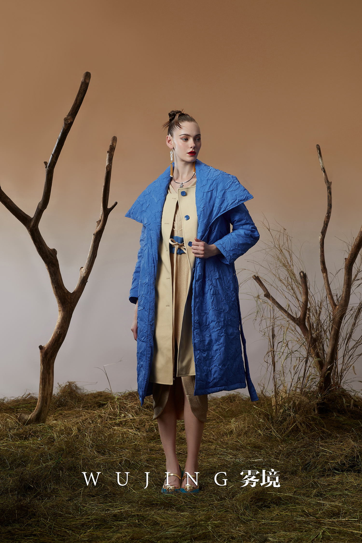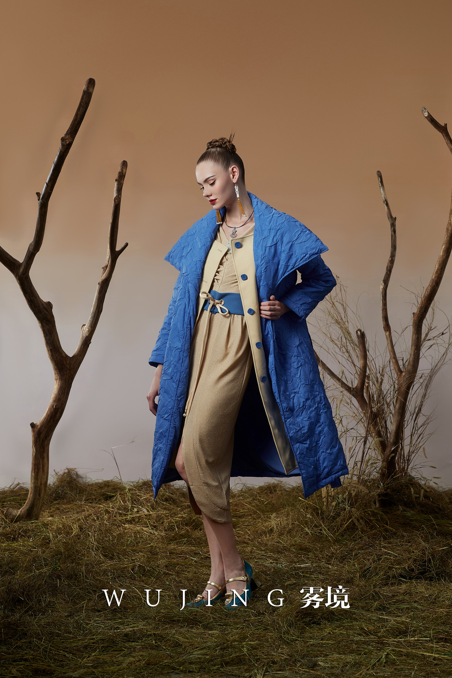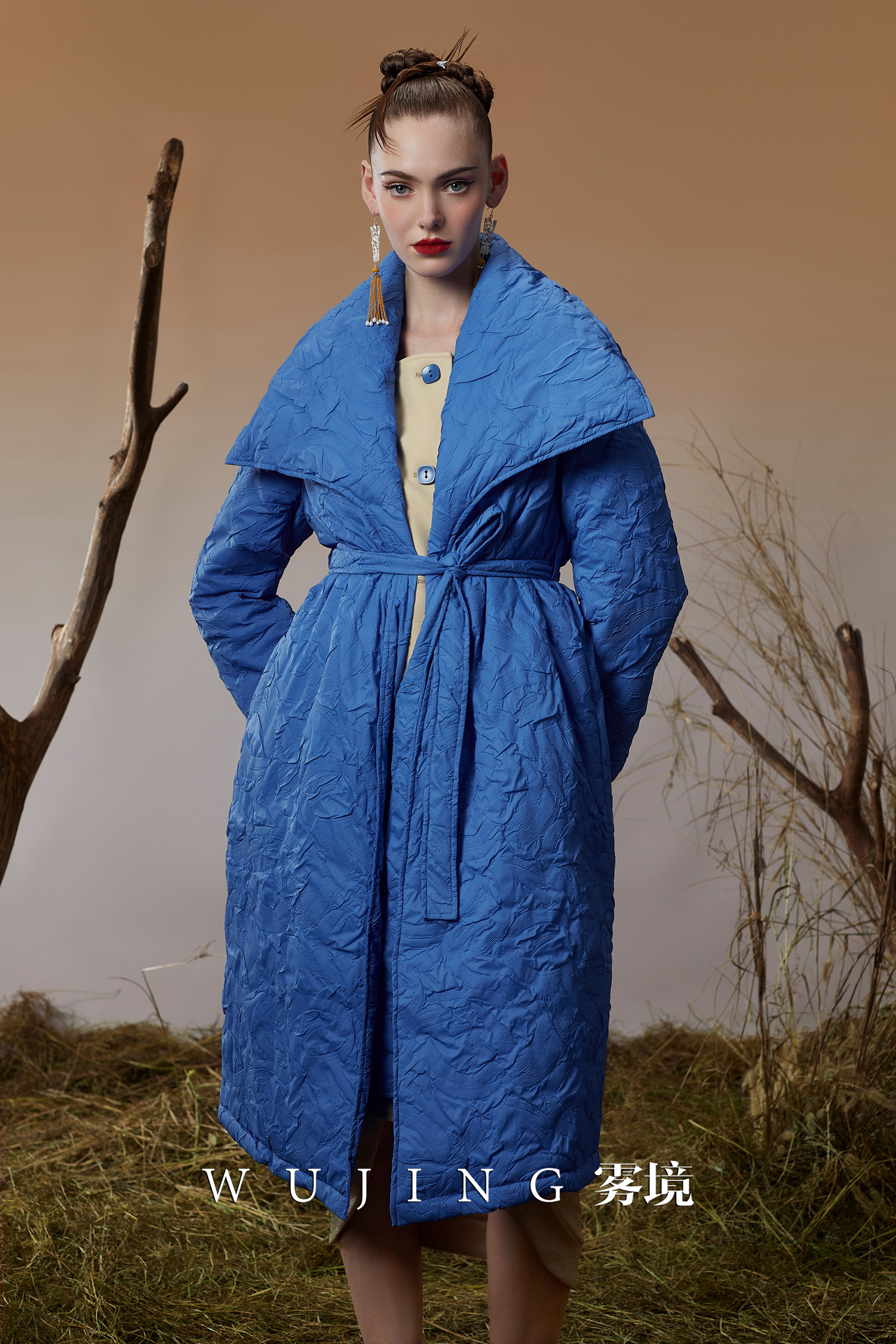 3203032 青蓝冰水 进口立体泡泡捏花面料(填充90白鸭绒)羽绒服 雾境