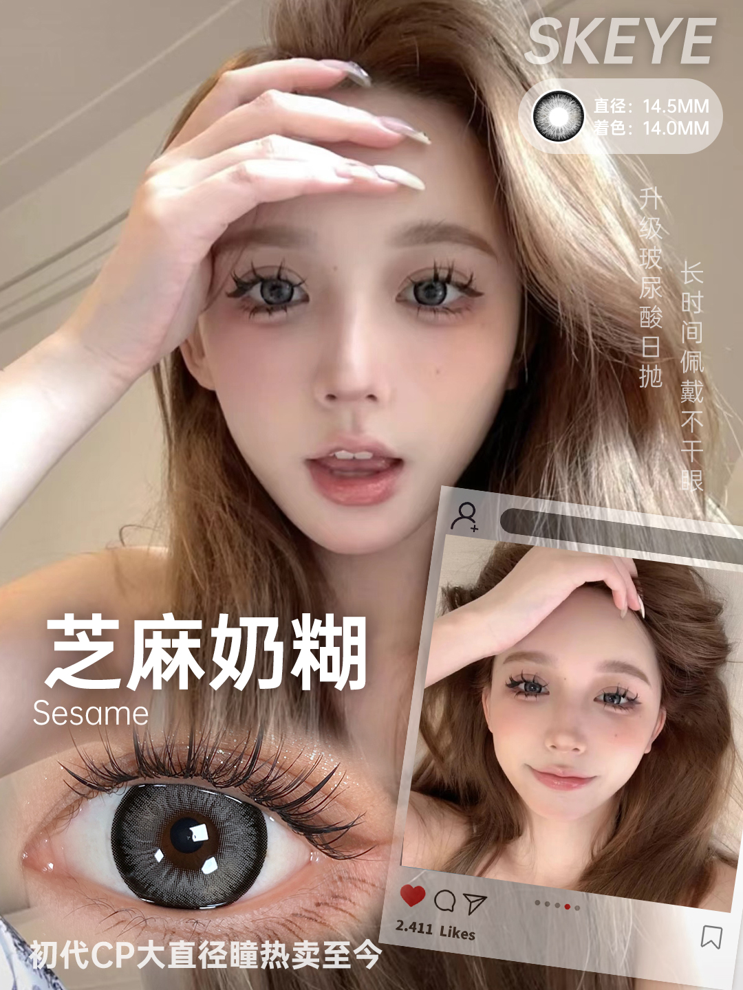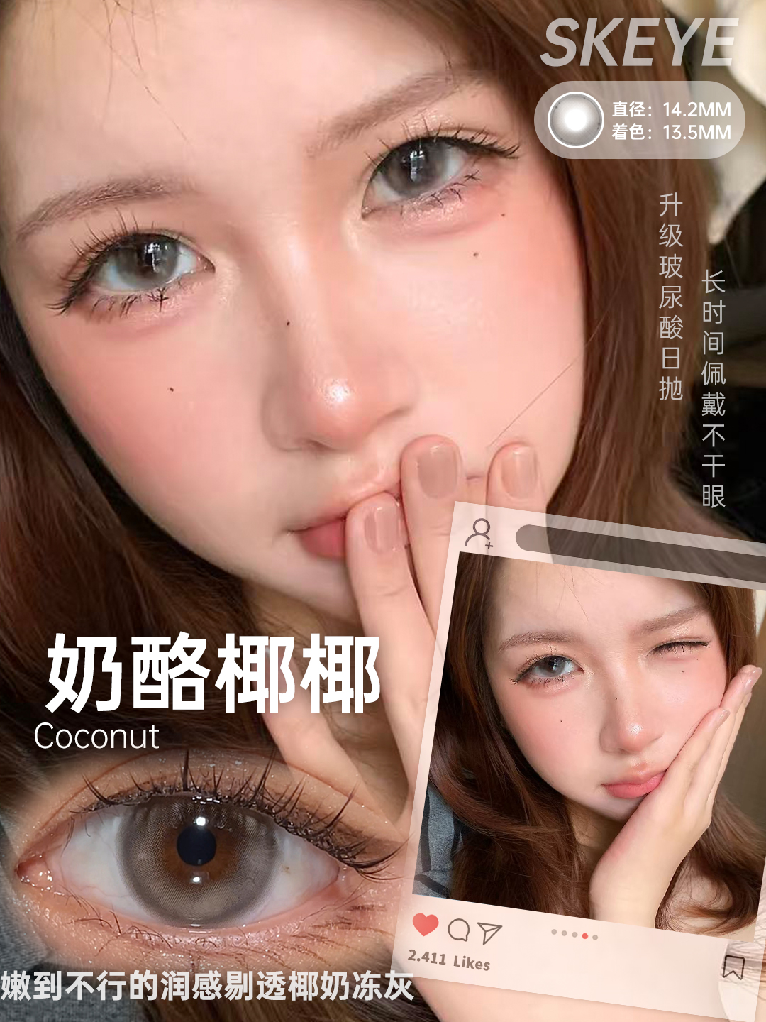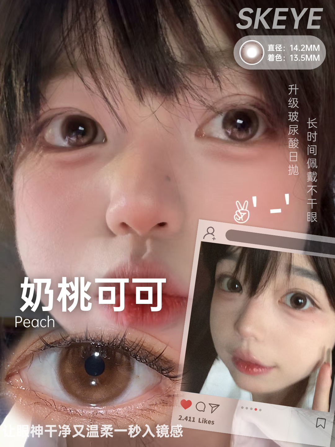 【日抛】SKEYE玻尿酸日抛* 88一盒/128两盒/238四盒*奶桃可可 奶酪椰椰 糖霜乌梅 树莓松饼 黄油松饼 天空镜棕 小透明黑 芝麻奶糊