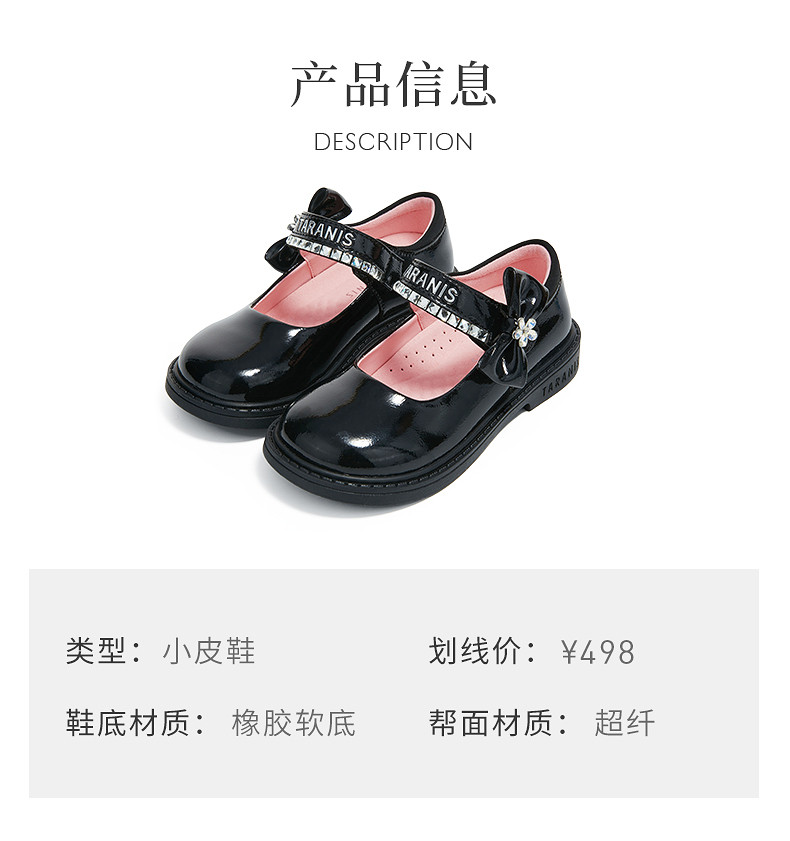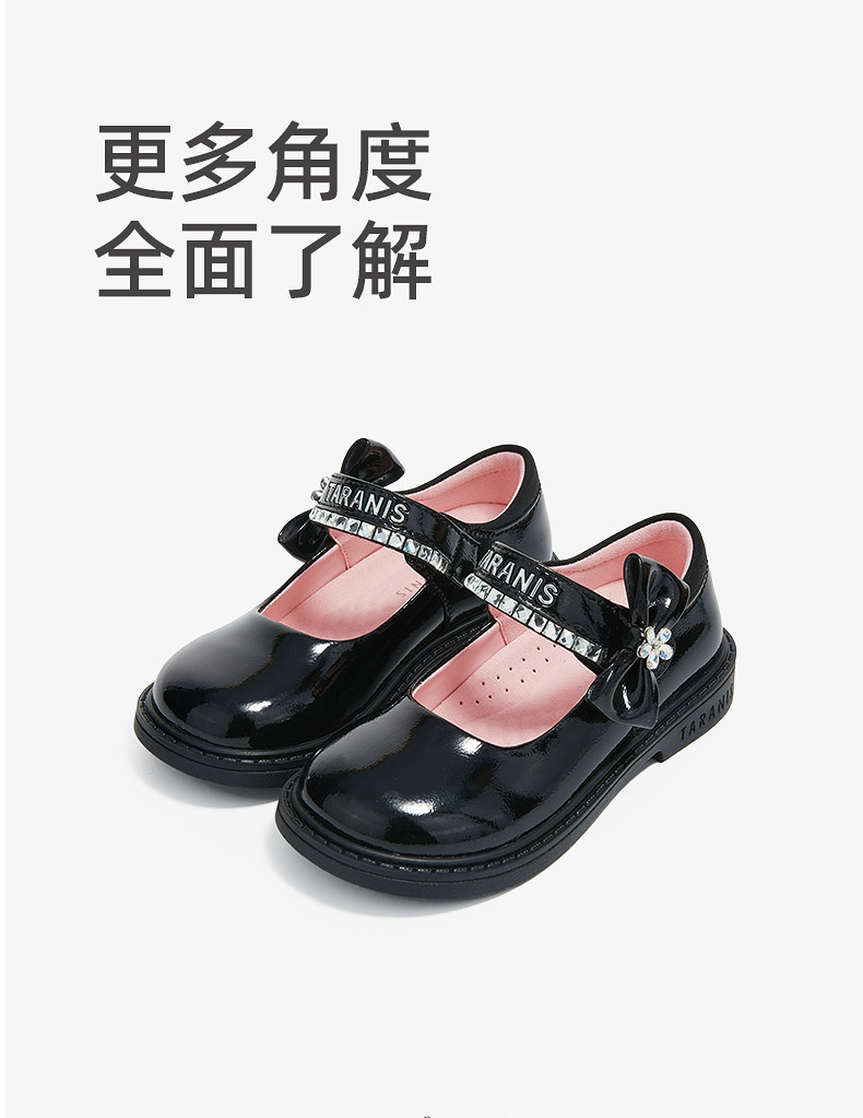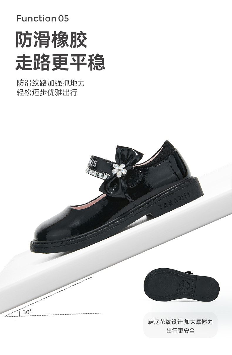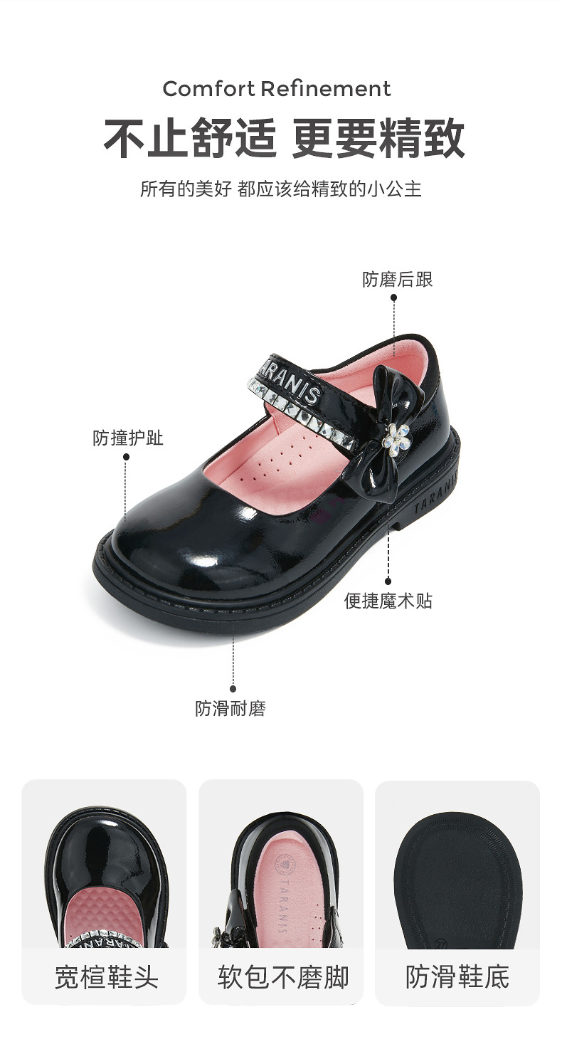 泰兰尼斯春季新款公主皮鞋精致时尚女童皮鞋黑色软底演出鞋单鞋M03X6A9058