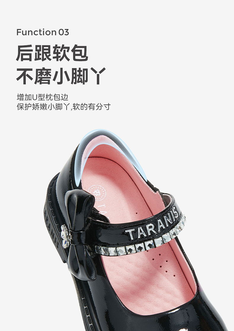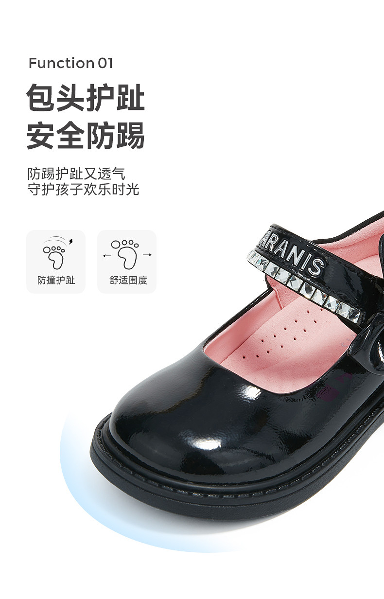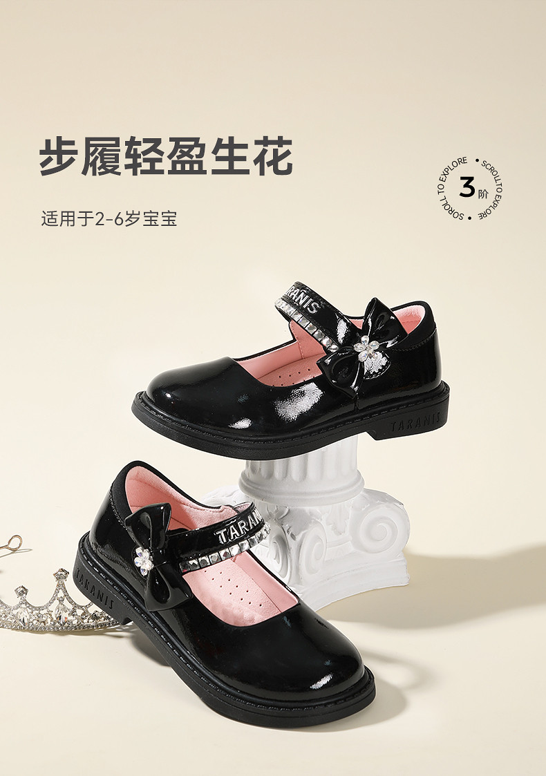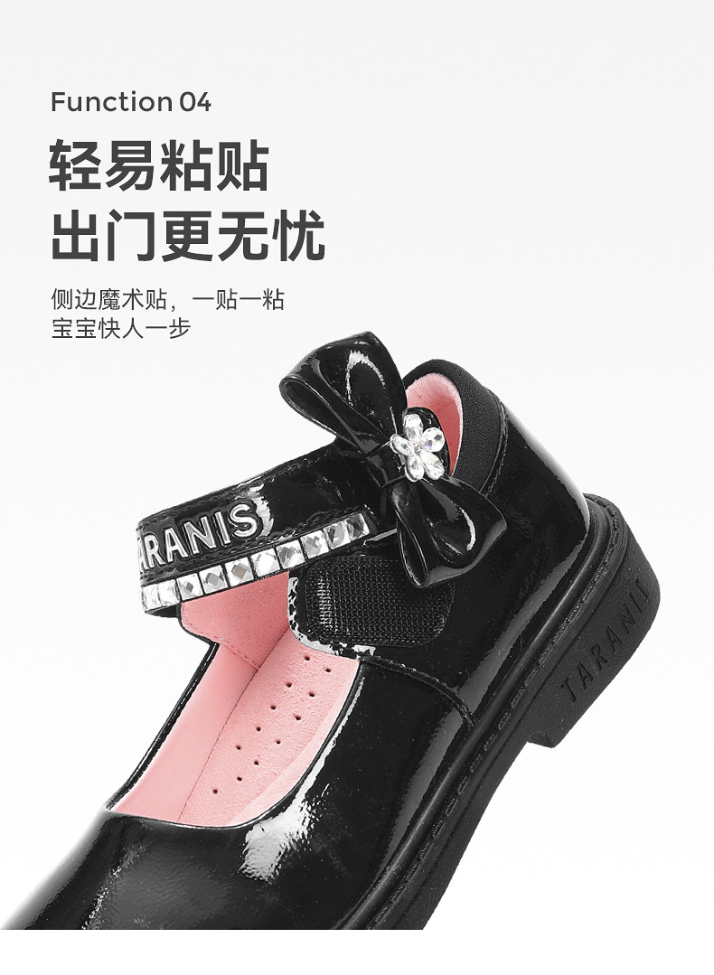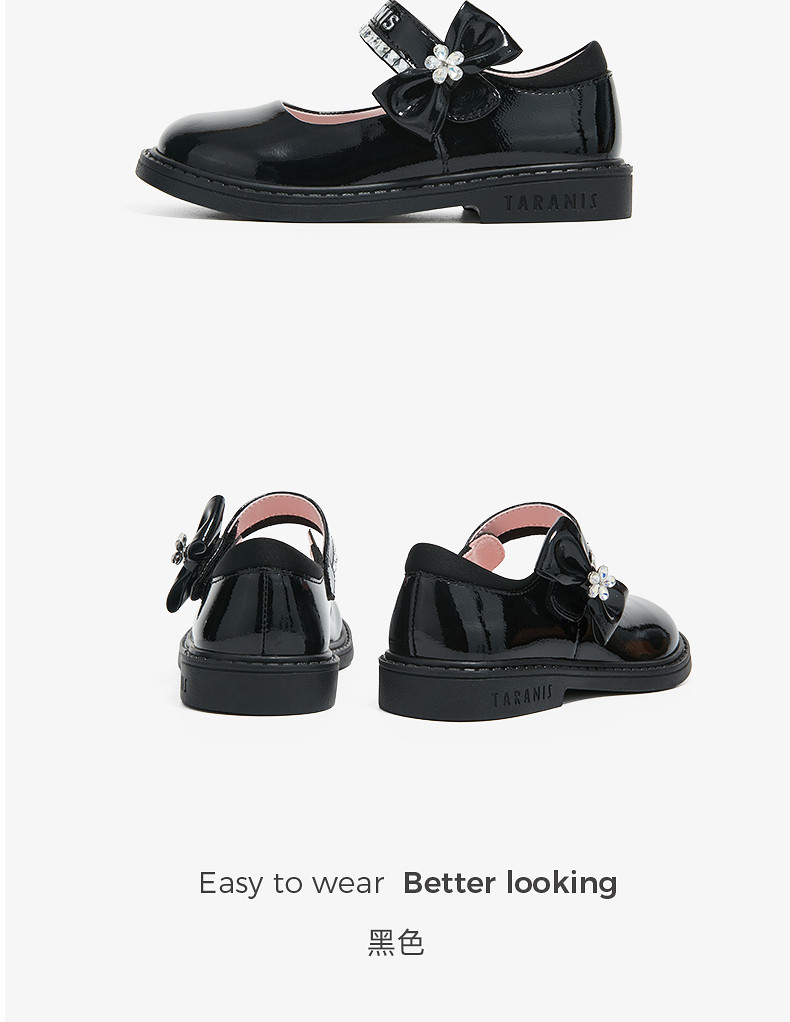 泰兰尼斯春季新款公主皮鞋精致时尚女童皮鞋黑色软底演出鞋单鞋M03X6A9058