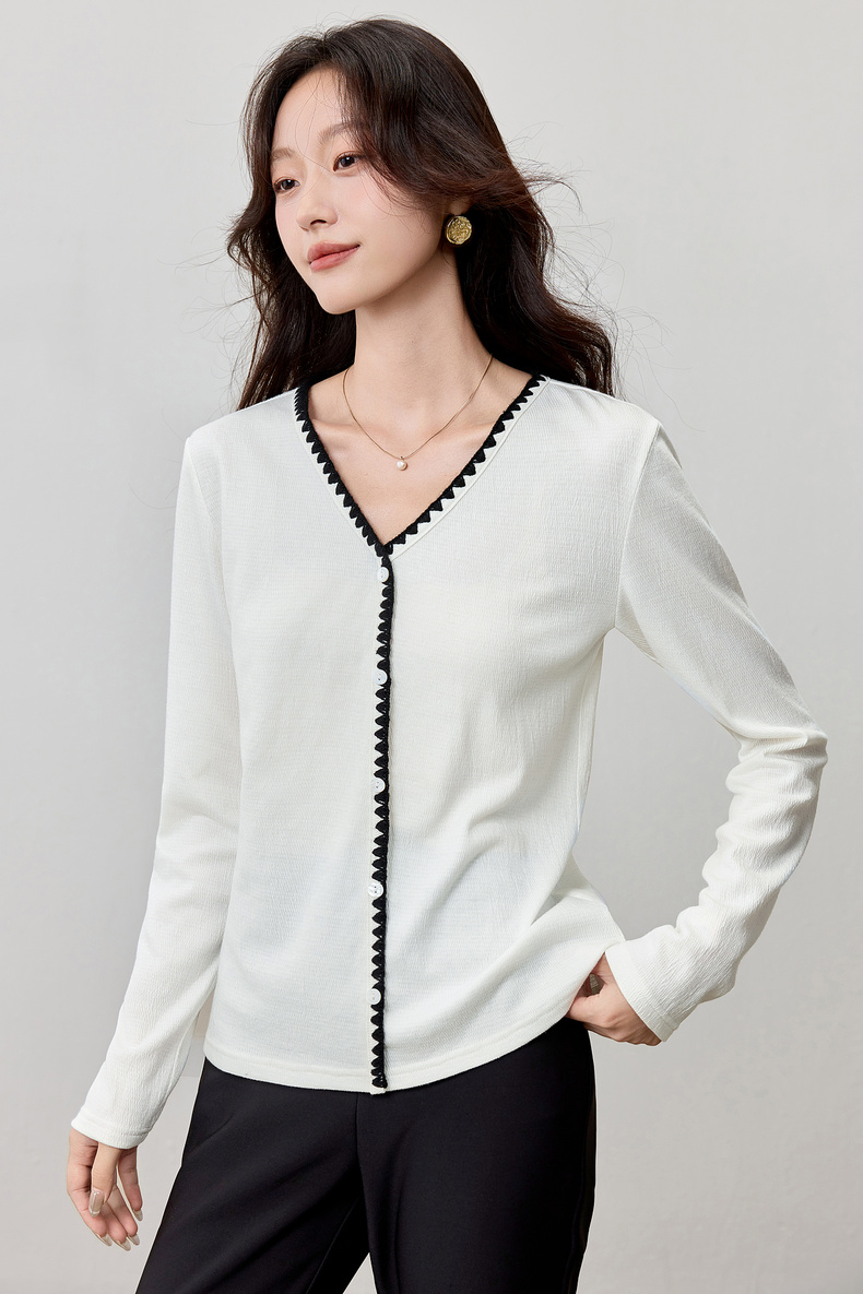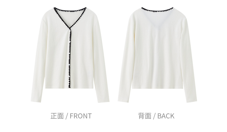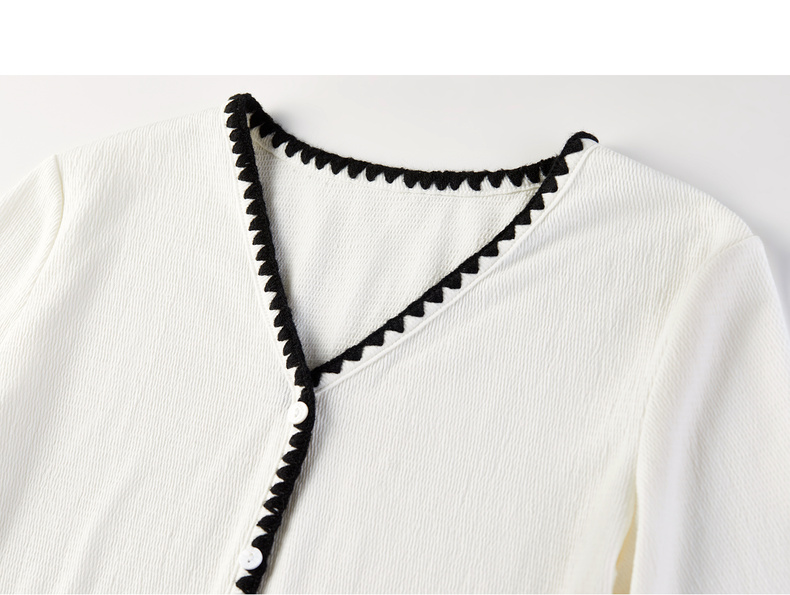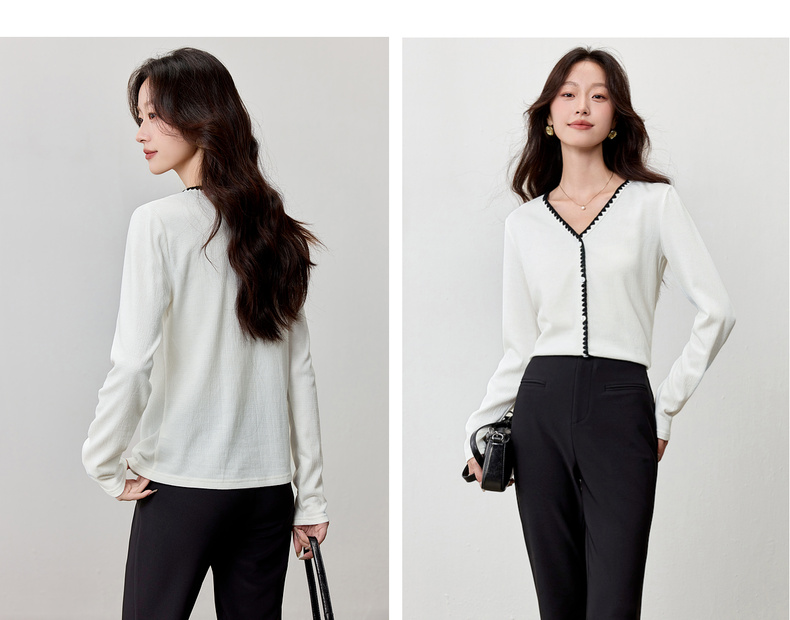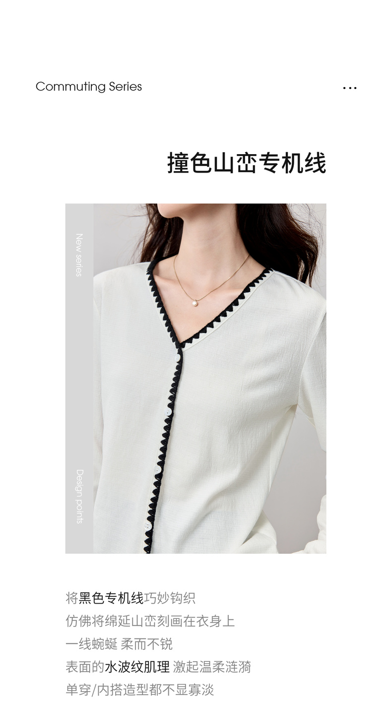 【内购】【撞色设计】撞色山峦贝壳扣假门襟柔软弹力水波纹肌理针织打底衫-153SF2955